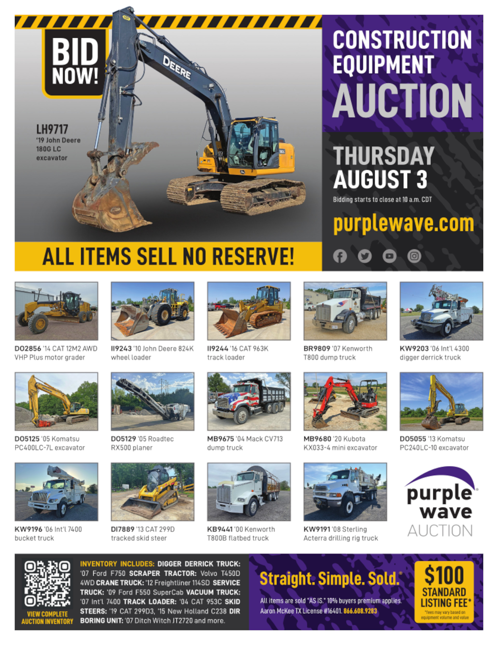 This auction is conducted by Purple Wave, Inc., whose home office is 825 Levee Drive, Manhattan, Kansas. Aaron McKee, Texas auctioneer license # 16401, operates Purple Wave, Inc. Complaints against us may be directed to the Texas Department of Licensing and Regulation, P.O. Box 12157, Austin, Texas 78711, (512) 463-6599. For additional required information, see the attached document.