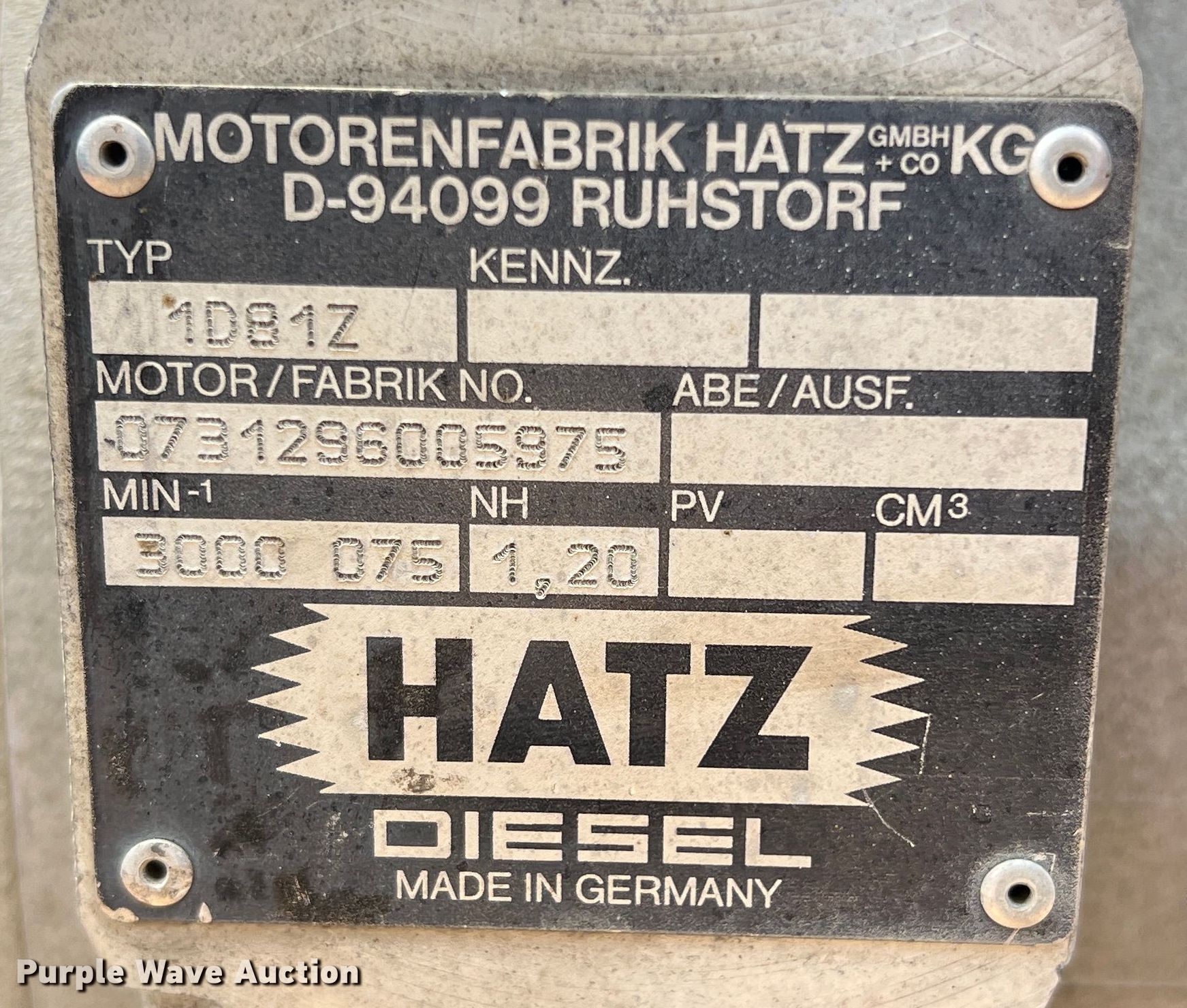 Purple Wave is selling a used Boring or Trenching Tool or Attach. in Texas. This item is a Hatz 1D81Z mud mixer with the following: VIN: H431, Serial: P97010005