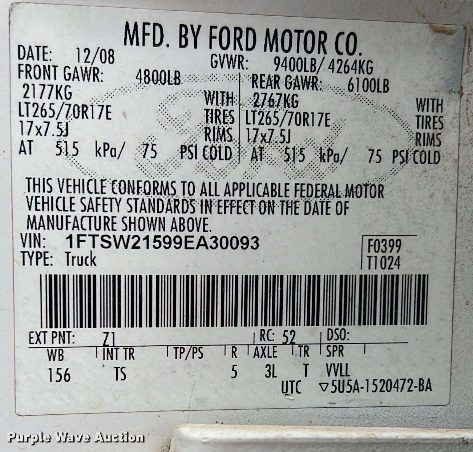 Purple Wave is selling a used 3/4 or 1 Ton Pickup or Van in Texas. This item is a 2009 Ford F250 Super Duty Crew Cab pickup truck with the following: Miles: 290,188 on odometer, VIN: 1FTSW21599EA30093
