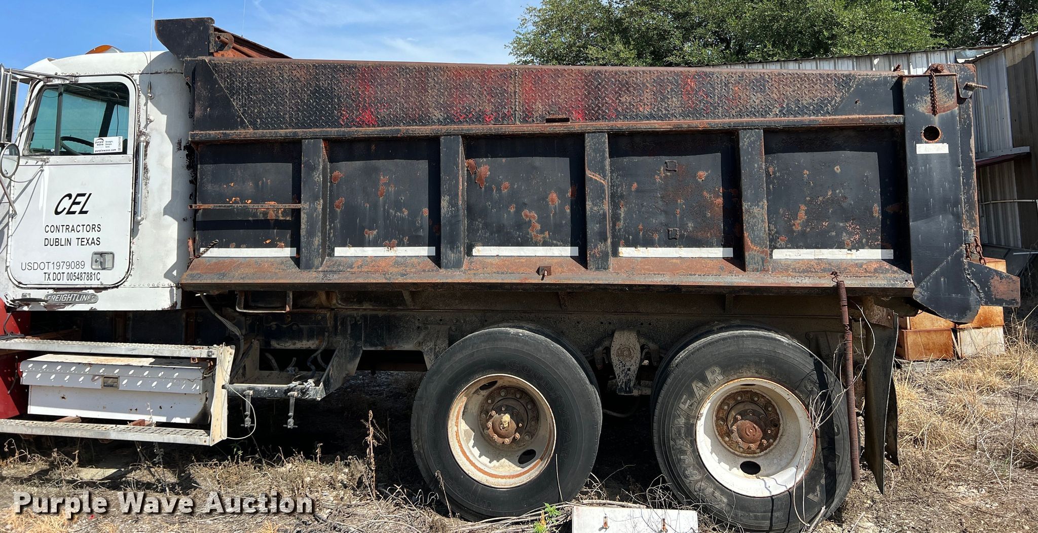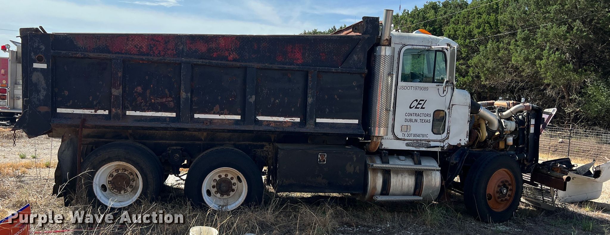 1994 Freightliner dump truck. Miles: 906,735 on odometer, VIN: 1FUYDSYBXRP454519. Engine Caterpillar 3406, Cylinders: 6, Fuel type: Diesel. Transmission Eaton Fuller, Manual, Speed: 10. Chassis Axles: Tandem, Differential lock: Inter-axle, Suspension: Spring, Brakes: Air, PTO, GVWR: 48,000 lbs FAWR: 12,000 lbs, IAWR: 18,000 lbs, RAWR: 18,000 lbs. Interior AC, Heat, Heated mirrors, Cruise control. Features Dump bed 14' L x 8' W, Side height: 35", Bed type: Steel, Ram: Single , End gate: Air operated. Tires Front: 11R24.5, Rear: 11R22.5. Notes Windshield chipped or cracked, Unknown operating condition. Texas title. Title distribution may be delayed up to 14 days from verification of funds. CEL Contractors Inc.. 414 County Road 336. Dublin, TX 76446