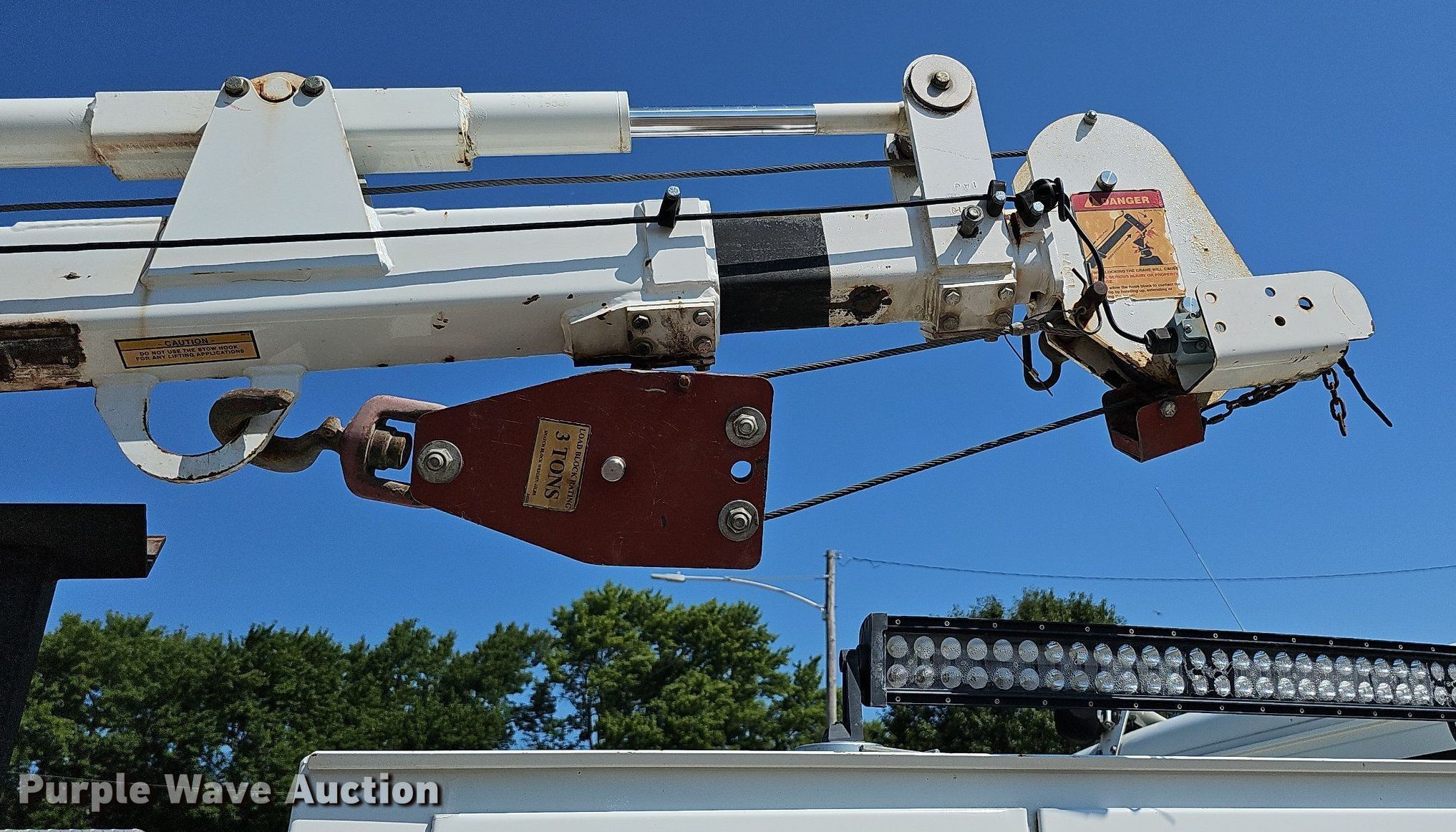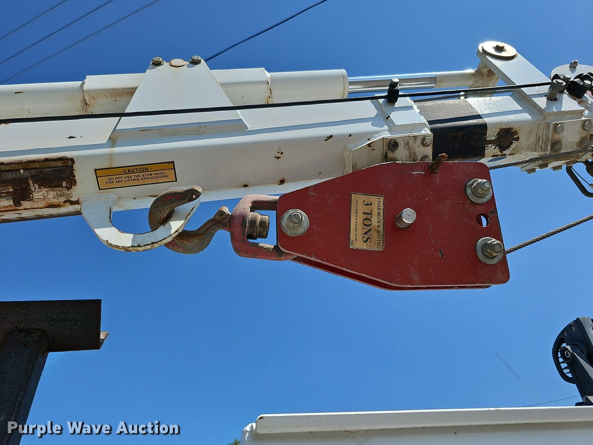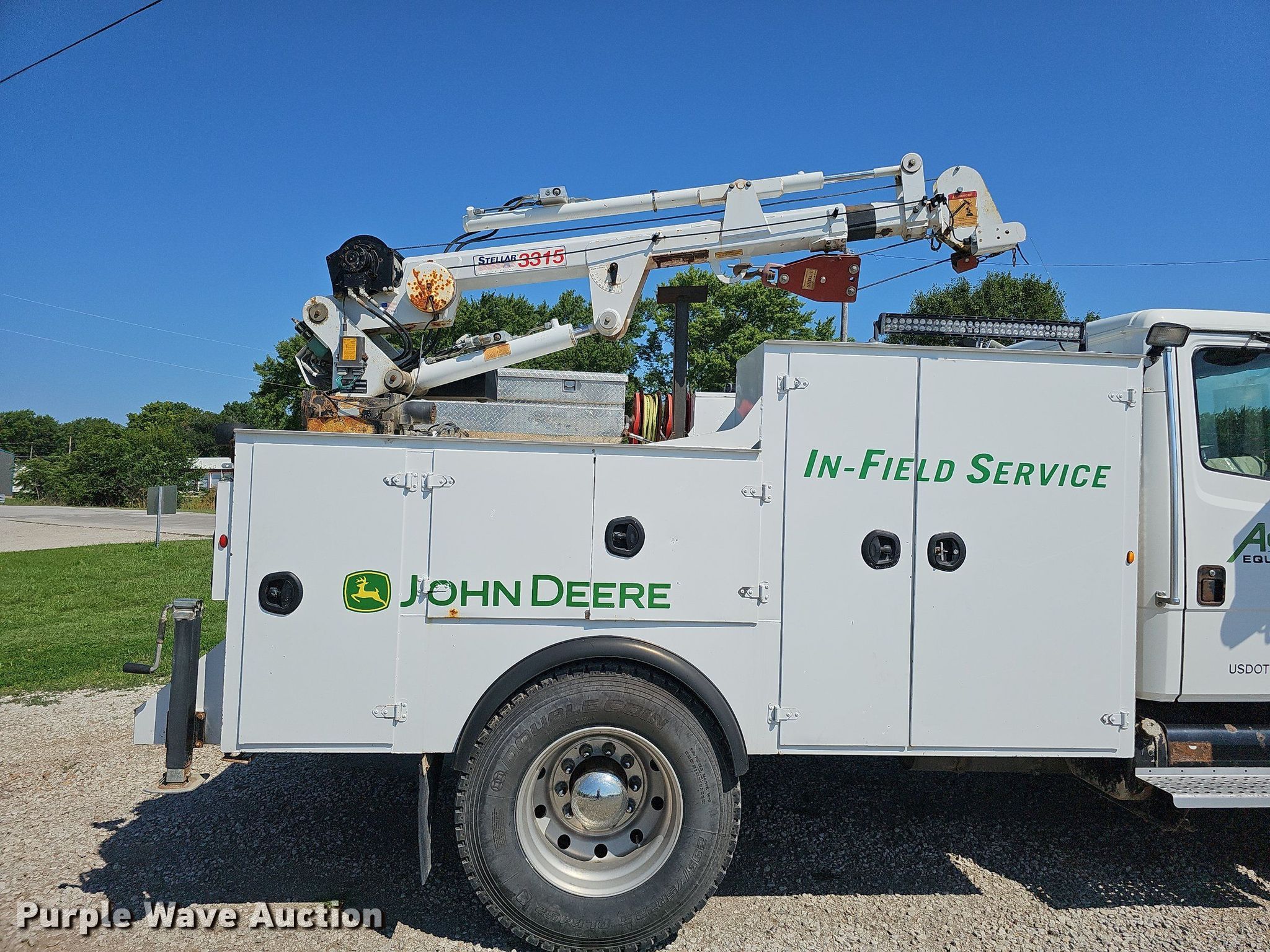 1998 Freightliner FL70 utility / service truck. Miles: 250,265 on odometer, Hours: 8,617 on meter, VIN: 1FV6HFBC8WH934340. Engine Cummins 6B, Displacement: 5.9L, Cylinders: 6, Fuel type: Diesel. Transmission Manual, Speed: 6. Chassis Axles: Single, Suspension: Spring, Brakes: Air, GVWR: 26,000 lbs, Wheelbase: 152". Interior AC, Heat, Heated mirrors. Features Bed Iowa Mold Tooling Company DSC20S2, 12' L x 94" W, Crane Stellar 3315, Maximum boom length: 15', Maximum lift capacity: 3,200 lbs, Air compressor hose reel. Tires Size: 295/75R22.5. Notes Dead battery, Driver side door issues, latch issues, Possible crane pump issue. Iowa title. AVE-PLP, LLC. 601 South 8th Street. Clarinda, IA 51632