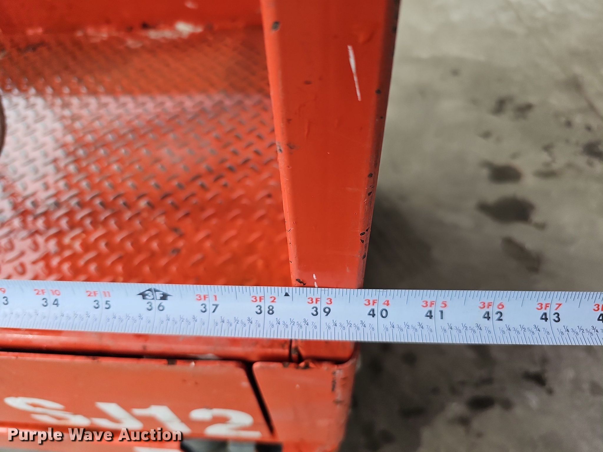 2017 Skyjack SJ12 vertical lift. Hours: 167 on meter, Serial: 14010085. Electric Motor Volts: 24. Features Maximum lift capacity: 500 lbs, Maximum lift height: 12', Platform: 40" L x 30" W, AC power outlet, Controls: Platform, Ground, Safety alarm. Tires Tire size: 12x4, Solid, Non-marking. Jordan Machinery / S & N Auto Sales. 25050 U.S. 275. Waterloo, NE 68069