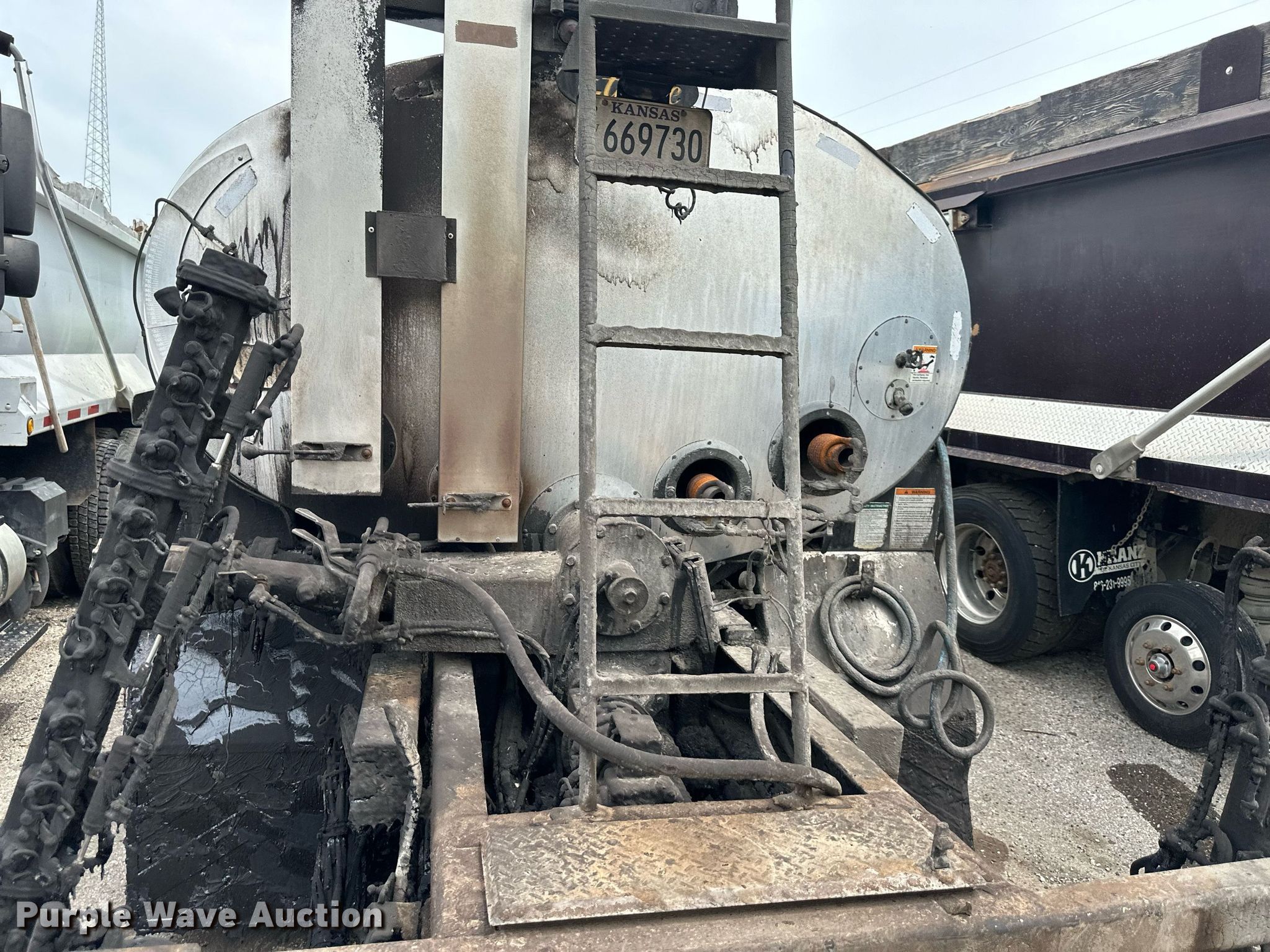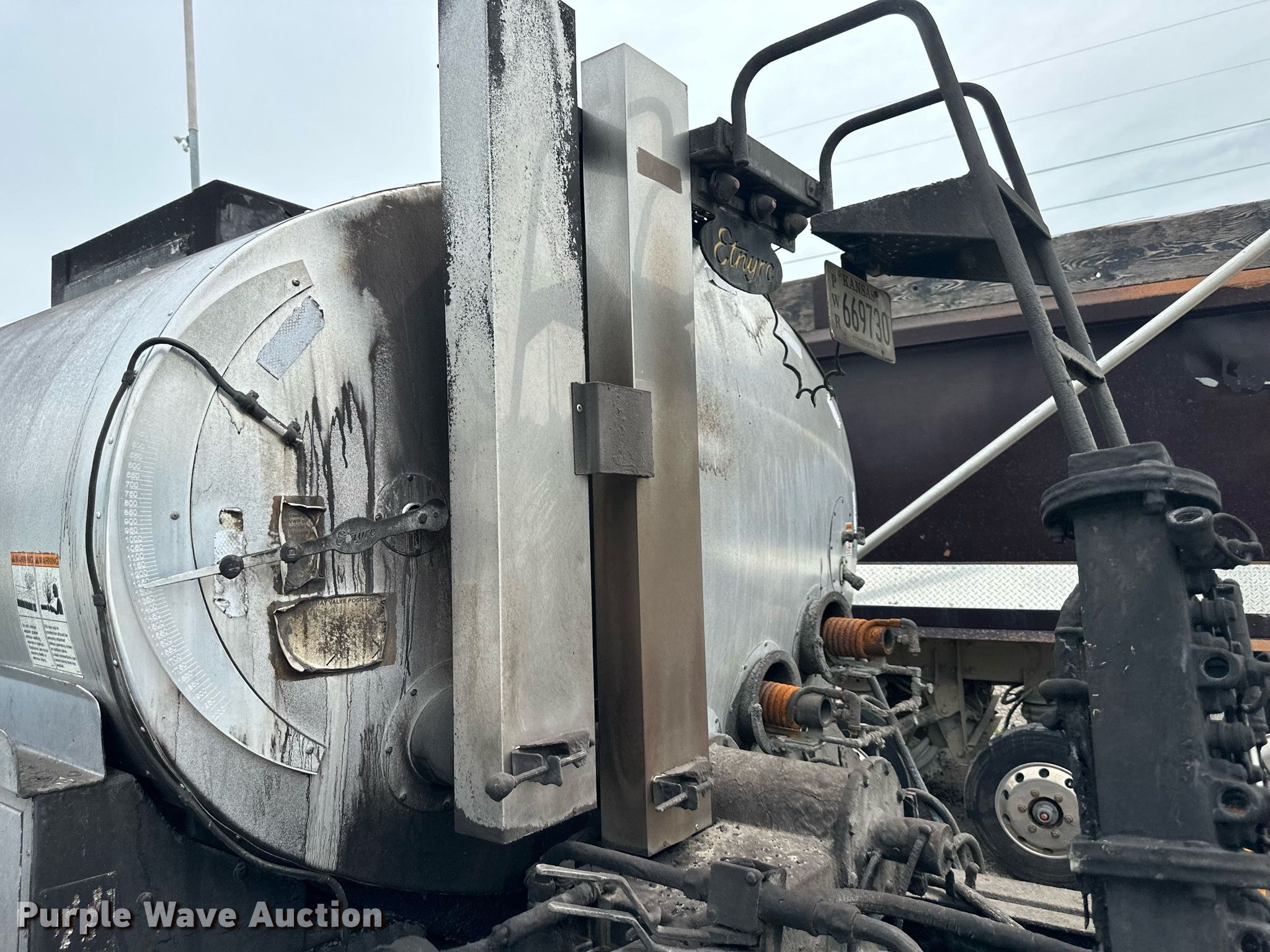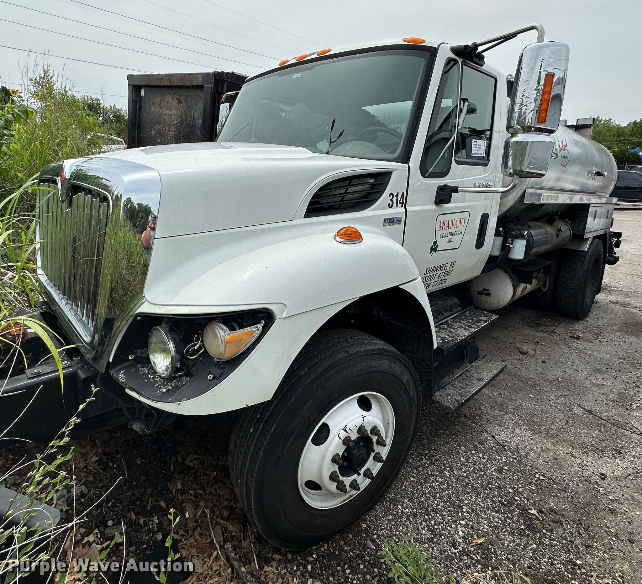 2013 International WorkStar 7300 oil distributor truck. Miles: 72,042 on odometer, Hours: 10,032 on meter, VIN: 1HTZZAAN5DJ120389. Engine International MaxxForce DT, Displacement: 7.6L, Cylinders: 6, Fuel type: Diesel. Transmission Eaton Fuller, Manual. Chassis Axles: Single, Suspension: Spring, Brakes: Air, PTO. Interior AC, Heat. Features Bed / tank Entyre Black topper centennial, Capacity: 2,000 gallons, 11' 6" L x 96" W, Burner: LPG, In-cab controls, Spray wand, Spray boom Width: 16', Folding, Side shift, Nozzles: 48.. Tires Size: 11R22.5. Notes Non-operational engine, Non-operational unit. Kansas title. Title distribution may be delayed up to 14 days from verification of funds. McAnany Construction Inc.. 15320 Midland Drive. Shawnee, KS 66217