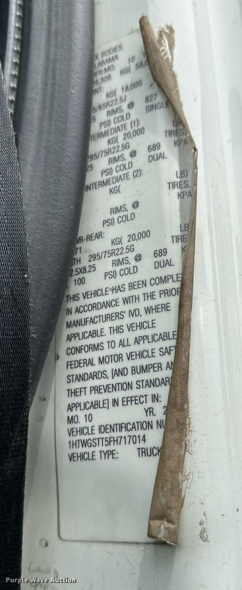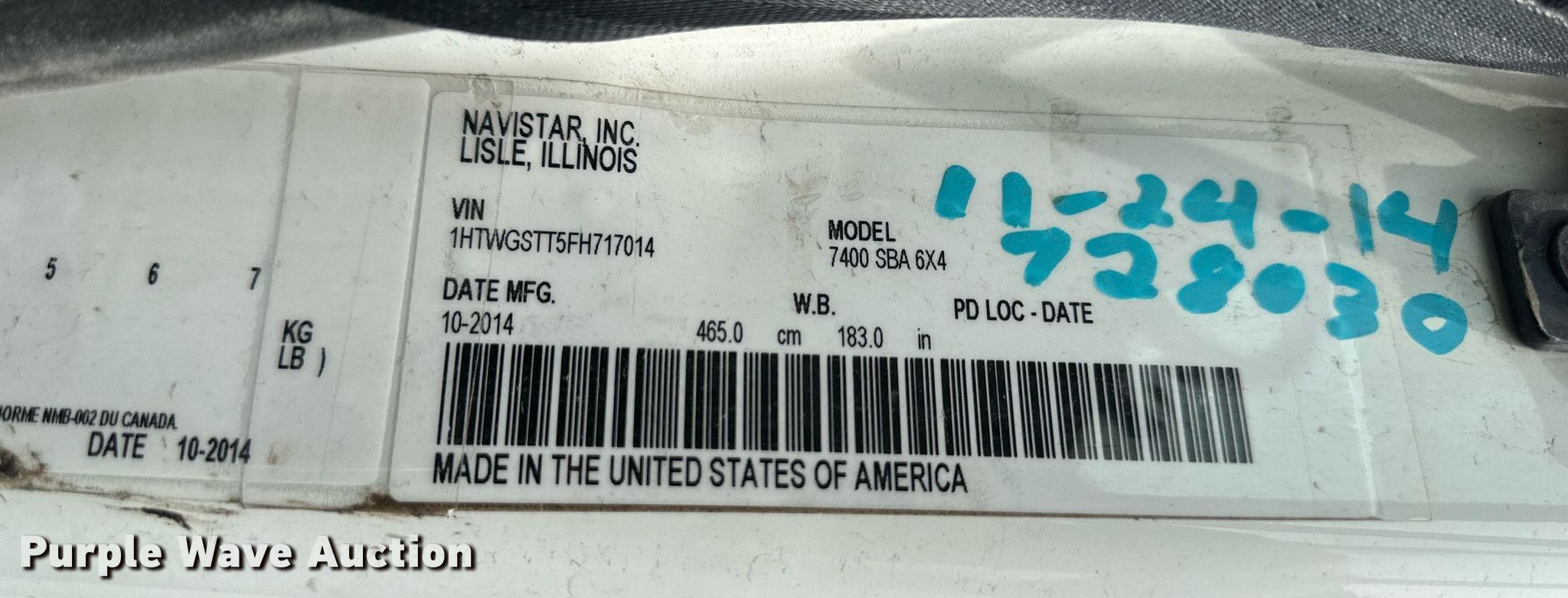 Purple Wave is selling a used Construction Dump Truck in Kansas. This item is a 2015 International WorkStar 7400 dump truck with the following: Miles: 75,585 on odometer, Hours: 5,623 on meter, VIN: 1HTWGSTT5FH717014
