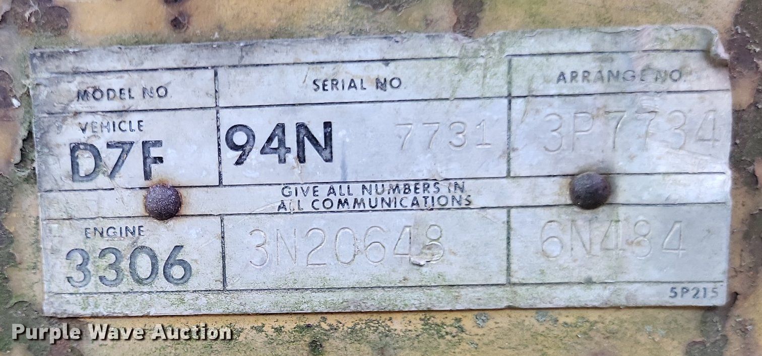 Purple Wave is selling a used Crawler Dozer in Missouri. This item is a 1974 Caterpillar D7F dozer with the following: Serial: 94N7731