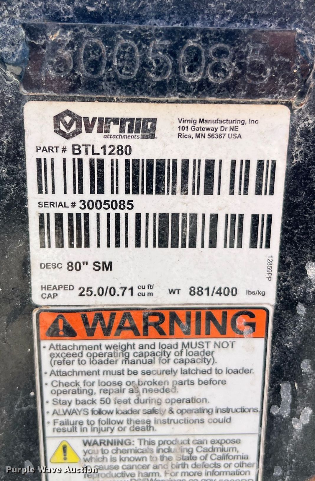 2016 Takeuchi TL10 tracked skid steer loader. Hours: 2,448 on meter, Serial: 201003365. Engine Kubota V3800-T, Serial: 2GJ0270, Displacement: 3.8L, Cylinders: 4, Fuel type: Diesel, kW: 67.6. Transmission Hydrostatic. Operators station OROPS, Bucket control: Hand, Electronic Monitoring System panel. Features Auxiliary hydraulics, Quick coupler: Manual, Bucket Virnig BTL1280, Width: 80", Cutting edge: Bolt-on. Tracks Width: 18". Notes Hour meter illumination issues. Plunkett Enterprises. 1825 County Road 212. Angleton, TX 77515