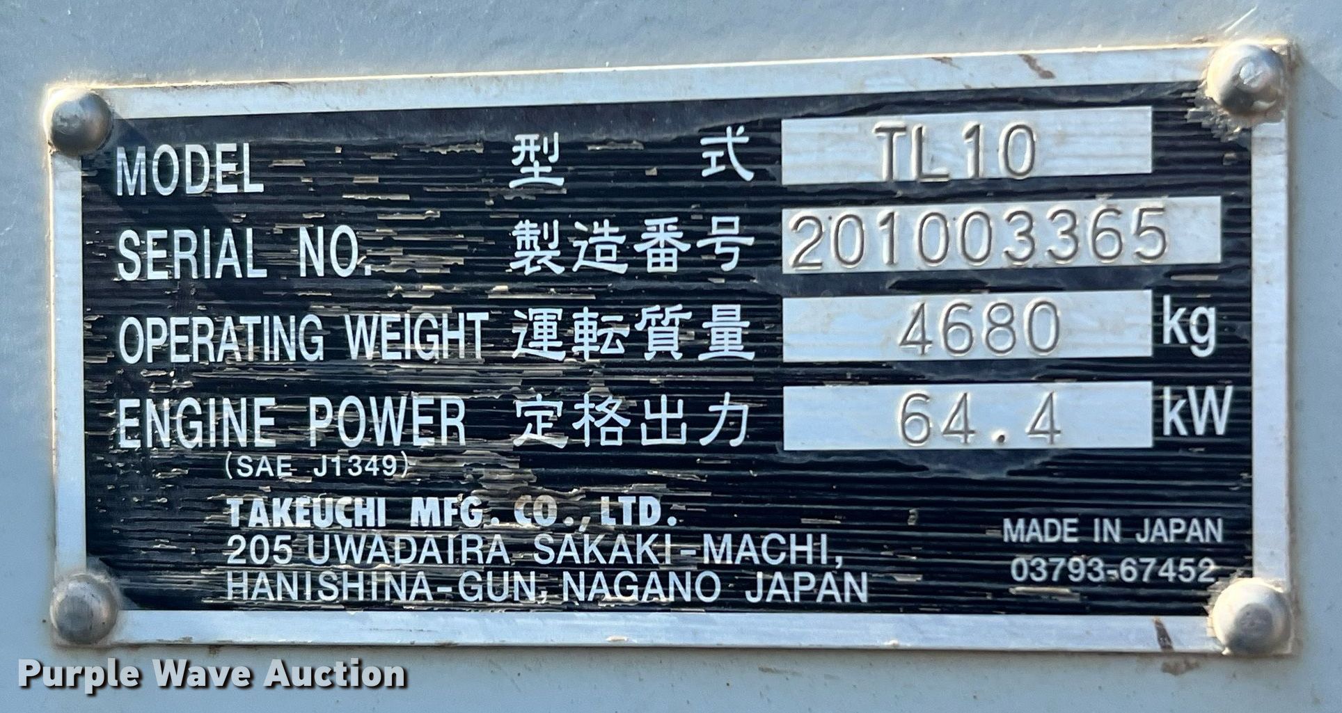 Purple Wave is selling a used Tracked Skid Steer Loader in Texas. This item is a 2016 Takeuchi TL10 tracked skid steer loader with the following: Hours: 2,448 on meter, Serial: 201003365