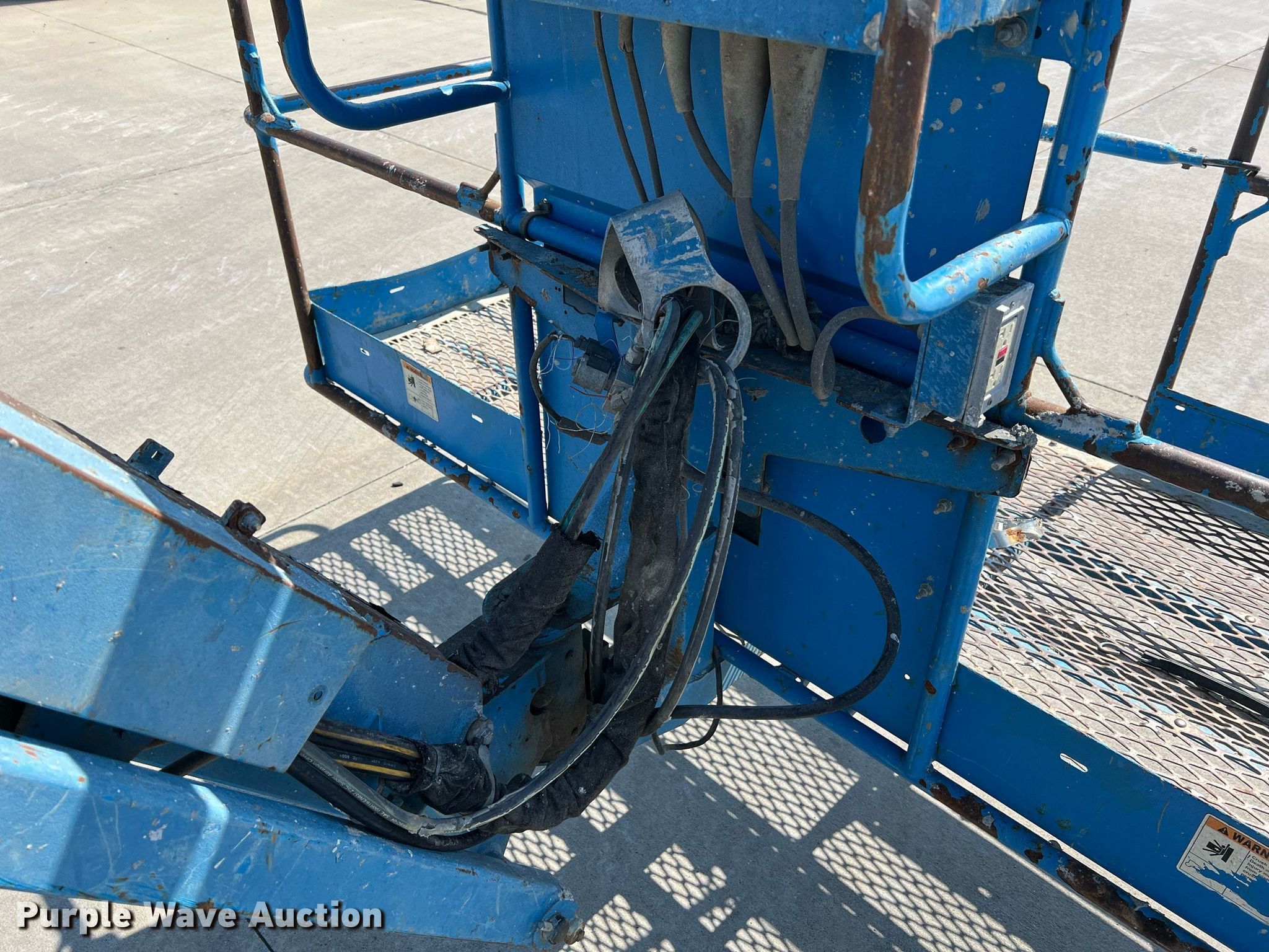 2008 Genie S-65 boom lift. Hours: 6,159 on meter, Serial: S6008-17986, Unit #: 50-605. Engine Fuel type: Diesel, HP: 48. Chassis Four wheel drive. Features Rough terrain, Maximum lift capacity: 500 lbs, Maximum reach length: 56' 2", Maximum lift height: 65', Hydraulic leveling, Platform: 36" L x 95" W, AC power outlet, Controls: Platform, Ground, Platform rotation: Hydraulic, Safety alarm, Certification valid through: 01/2024. Tires Tire size: 355/55D625. Emery Sapp & Sons, Inc... 5670 N Hwy 763. Columbia, MO 65202