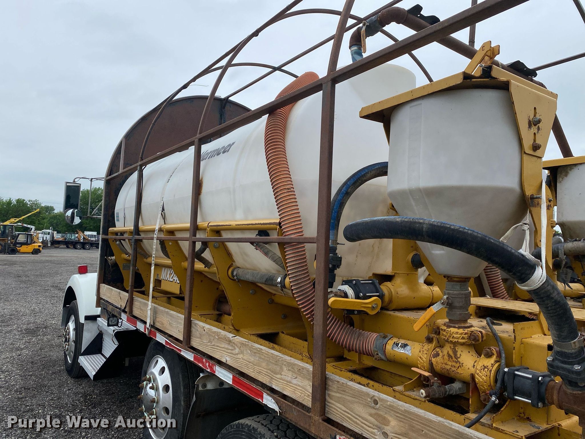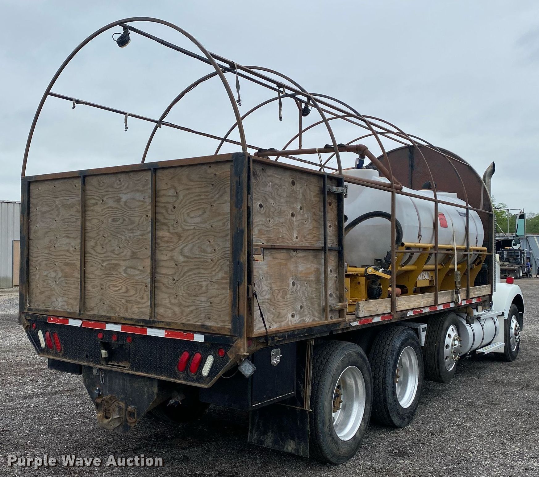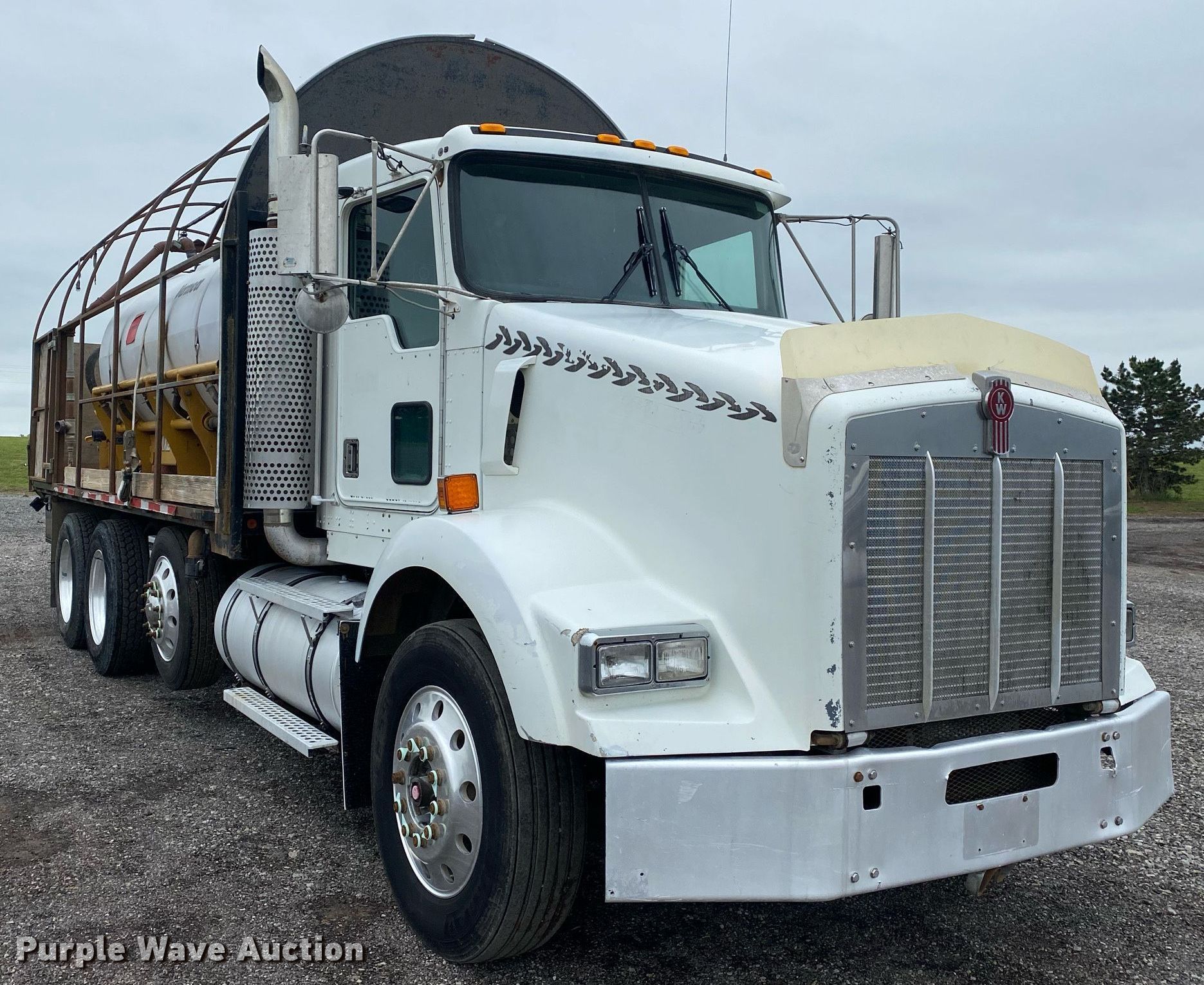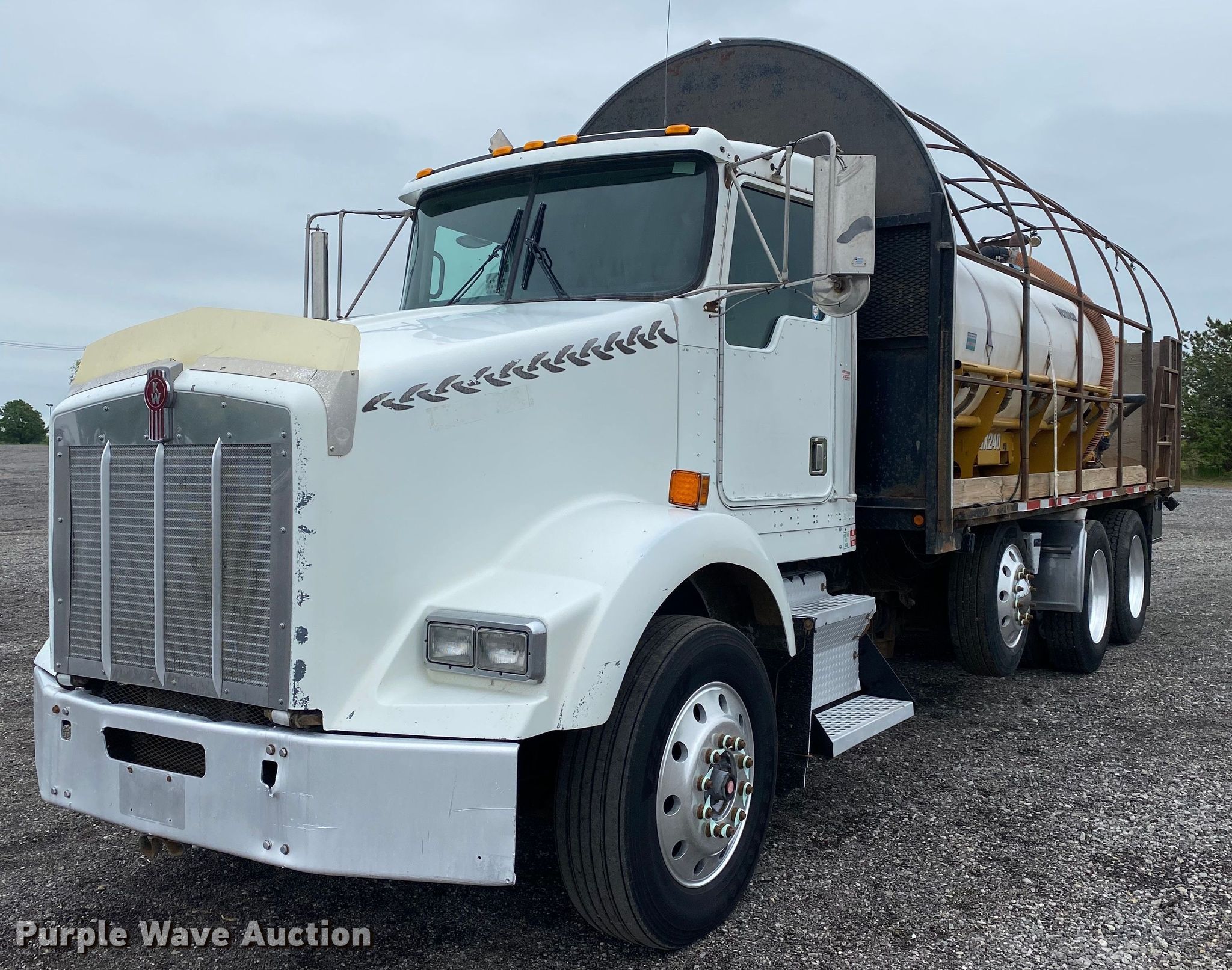 2000 Kenworth T800B flatbed truck. Miles: 804,973 on odometer, VIN: 1XKDPB0X9YR853031. Engine Caterpillar C15, Cylinders: 6, Fuel type: Diesel, HP: 354. Transmission Manual. Chassis Axles: Triple, Pusher axle, Suspension: Air, Brakes: Air. Interior AC, Heat, Heated mirrors, Cruise control, Brake controller. Features Flatbed 20' 2" L x 101" W, (2) Vermeer MX240 fluid mixers Tank capacity: 750 gallons. Tires Size: 285/75R24.5, Lift axle: 255/70R22.5. Oklahoma title. Title distribution may be delayed up to 14 days from verification of funds. 15107 North 137th East Avenue. Collinsville, OK 74021