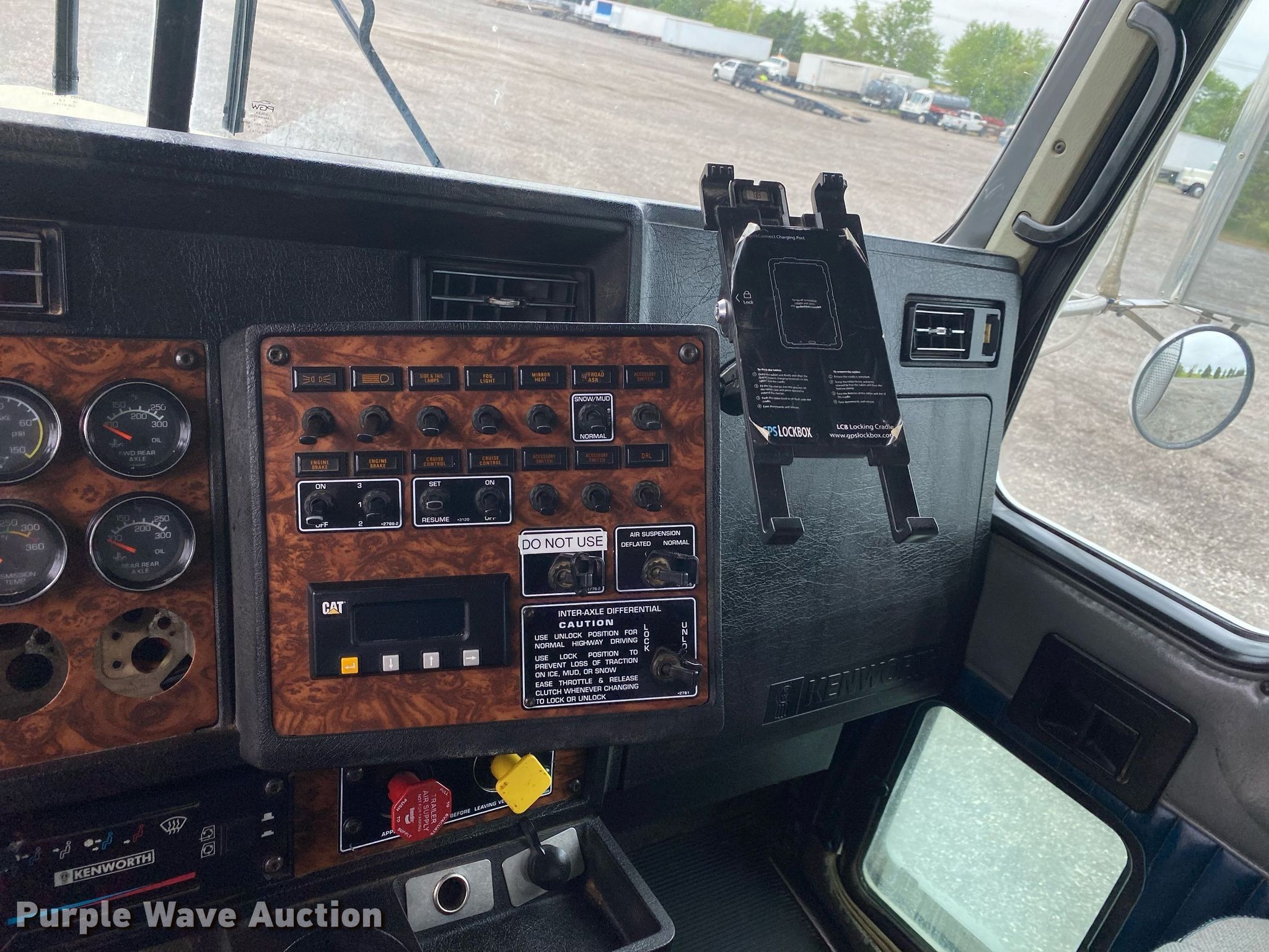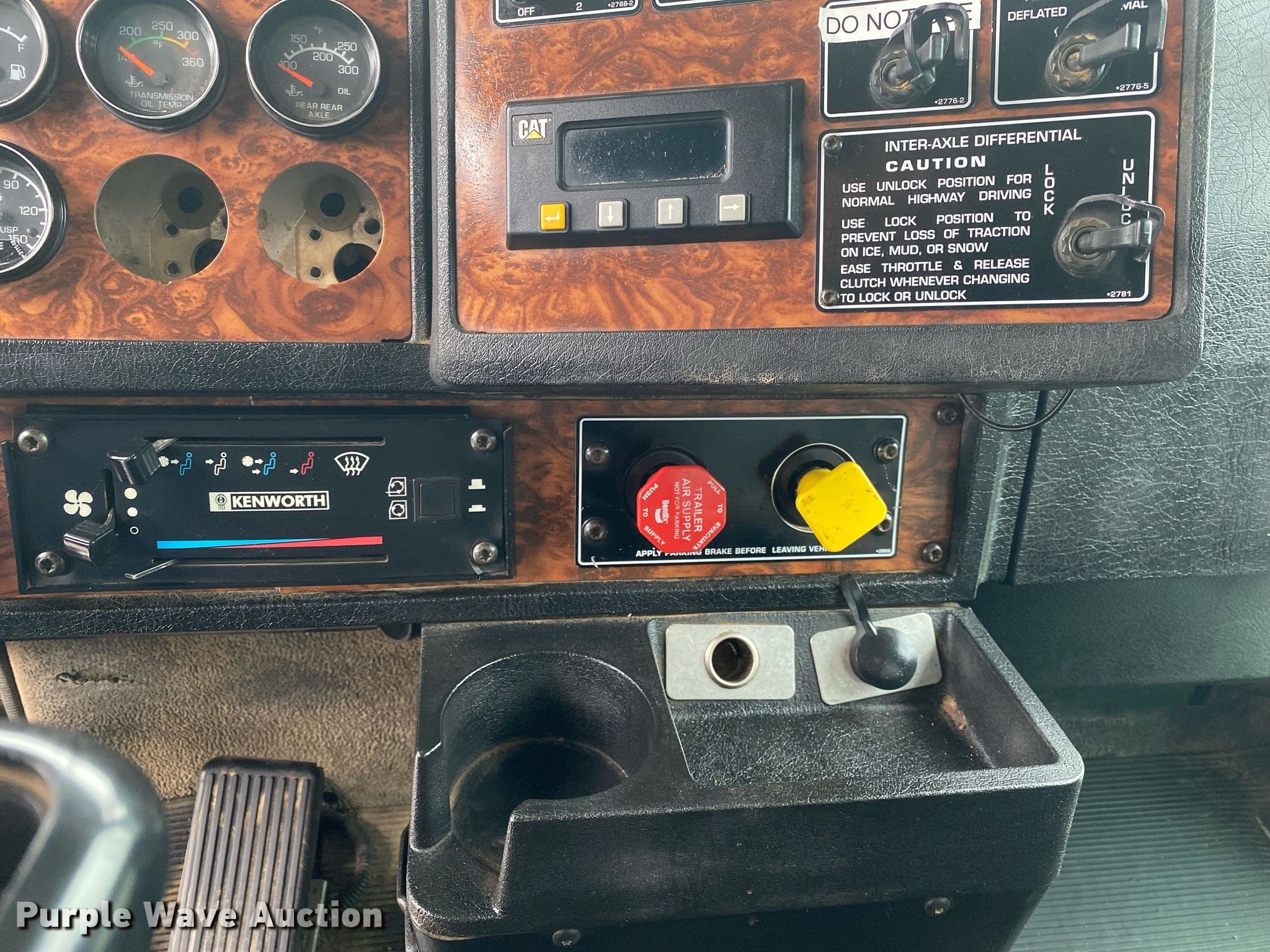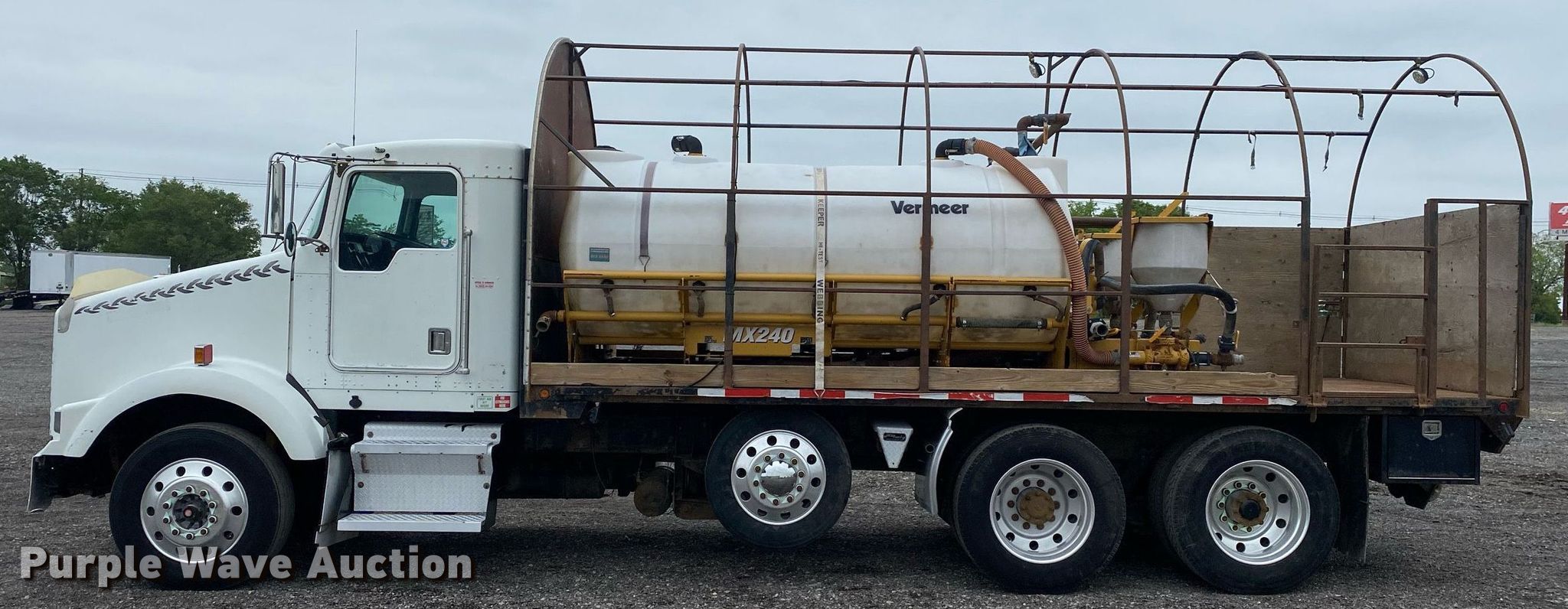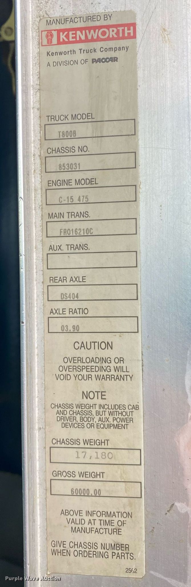 2000 Kenworth T800B flatbed truck. Miles: 804,973 on odometer, VIN: 1XKDPB0X9YR853031. Engine Caterpillar C15, Cylinders: 6, Fuel type: Diesel, HP: 354. Transmission Manual. Chassis Axles: Triple, Pusher axle, Suspension: Air, Brakes: Air. Interior AC, Heat, Heated mirrors, Cruise control, Brake controller. Features Flatbed 20' 2" L x 101" W, (2) Vermeer MX240 fluid mixers Tank capacity: 750 gallons. Tires Size: 285/75R24.5, Lift axle: 255/70R22.5. Oklahoma title. Title distribution may be delayed up to 14 days from verification of funds. 15107 North 137th East Avenue. Collinsville, OK 74021