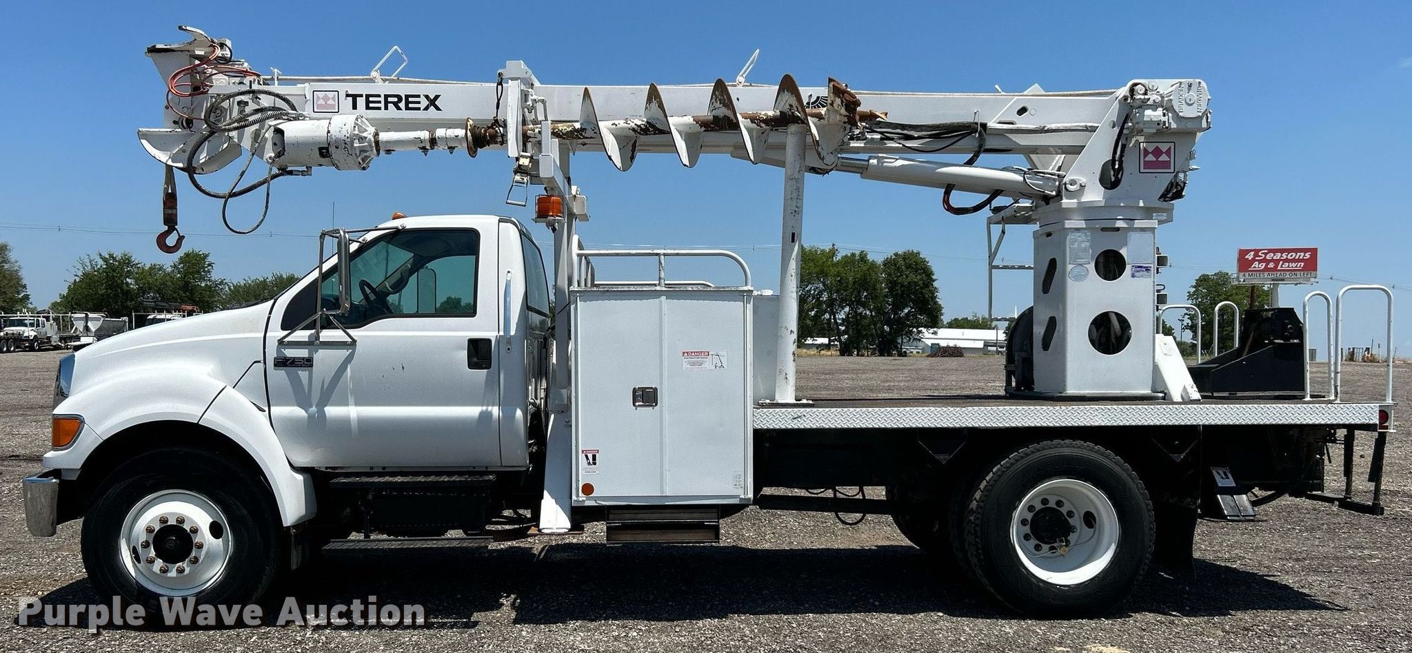 Purple Wave is selling a used Digger Derrick Truck in Oklahoma. This item is a 2007 Ford F750 digger derrick truck with the following: Miles: 78,923 on odometer, Hours: 4,750 on meter, VIN: 3FRXF75T17V418631