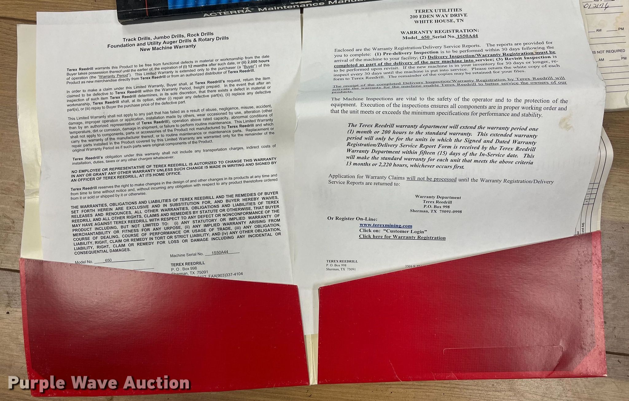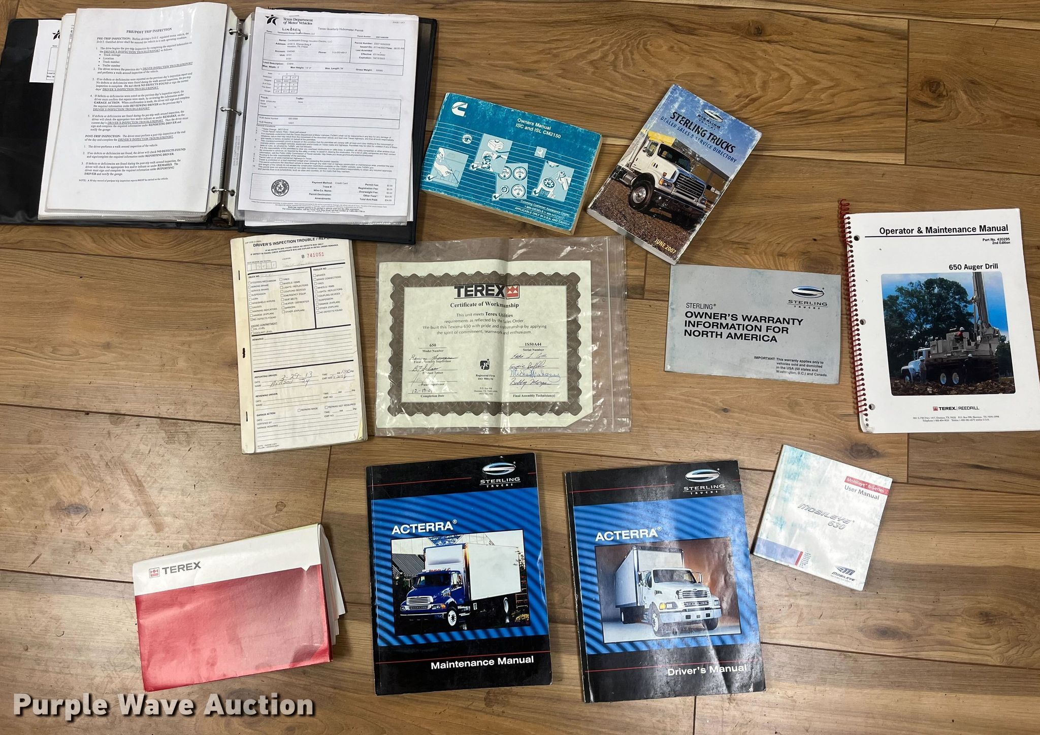 2008 Sterling Acterra drilling rig truck. Miles: 20,456 on odometer, Hours: 2,068 on meter, Drilling rig hours: 916 on meter, VIN: 2FZKCHBS18AZ70228. Engine Cummins ISC, Displacement: 8.3L, Cylinders: 6, Fuel type: Diesel. Transmission Automatic. Chassis Four wheel drive, Differential lock: Full, Axles: Tandem, Suspension: Spring over walking beam, Brakes: Air, PTO, GVWR: 56,000 lbs. Interior AC, Heat. Features Bed/ drill Terex Texoma 650, Engine John Deere 6068HF285, Serial: PE6068L016255, Displacement: 6.8L, Cylinders: 6, Fuel: Diesel, Mast height: 12', Work platform, Outriggers. Tires Front: 385/65R22.5, Rear: 11R22.5. Notes. Operator and maintenance manuals included. Oklahoma title. 15107 North 137th East Avenue. Collinsville, OK 74021