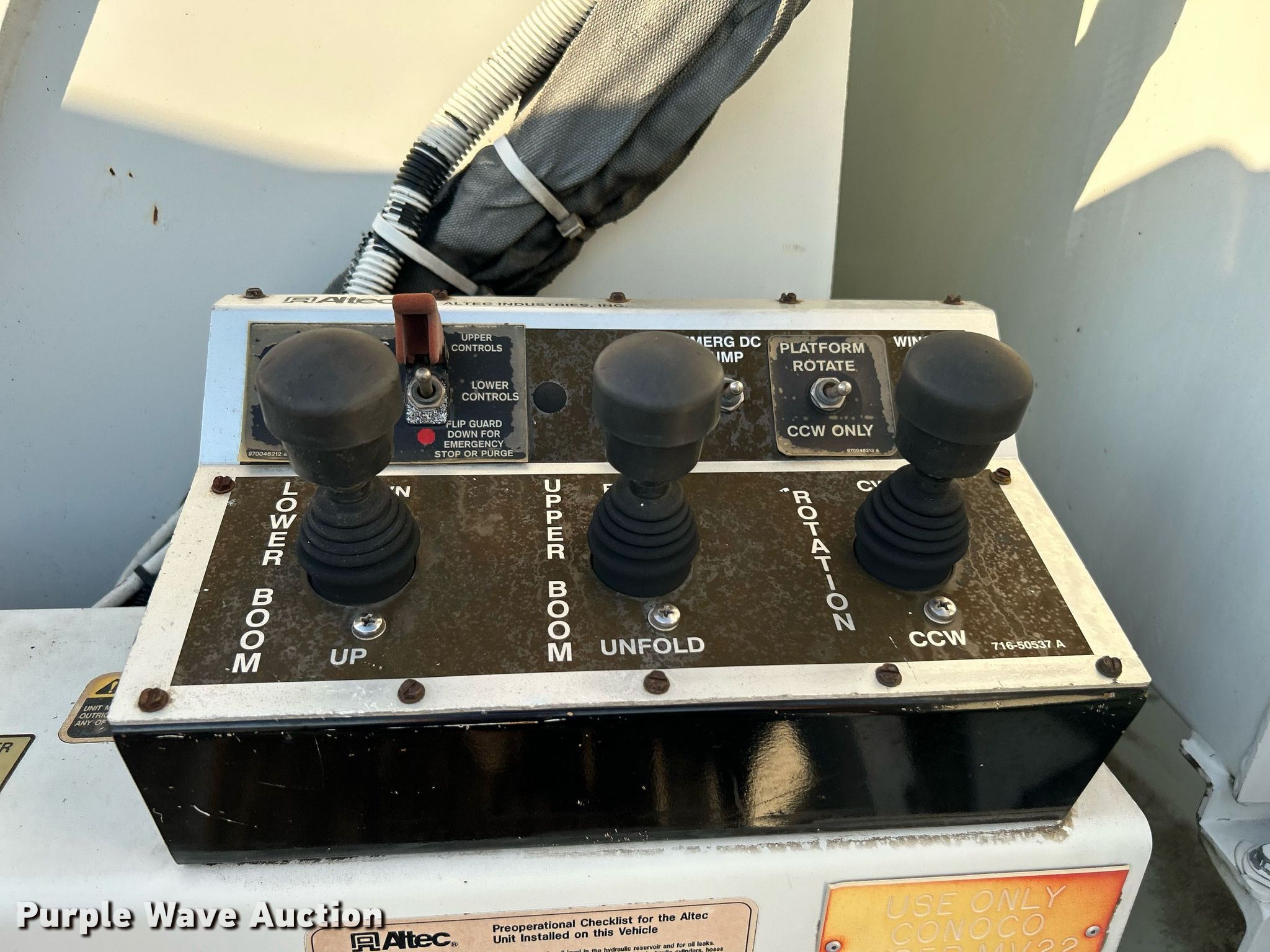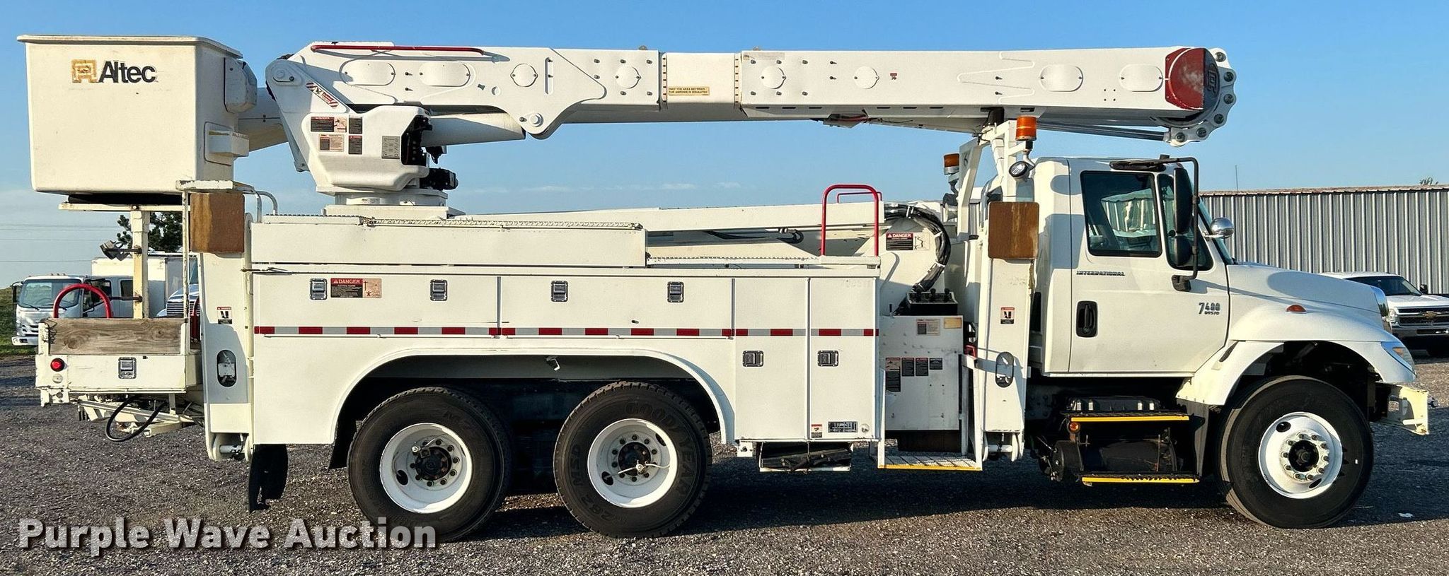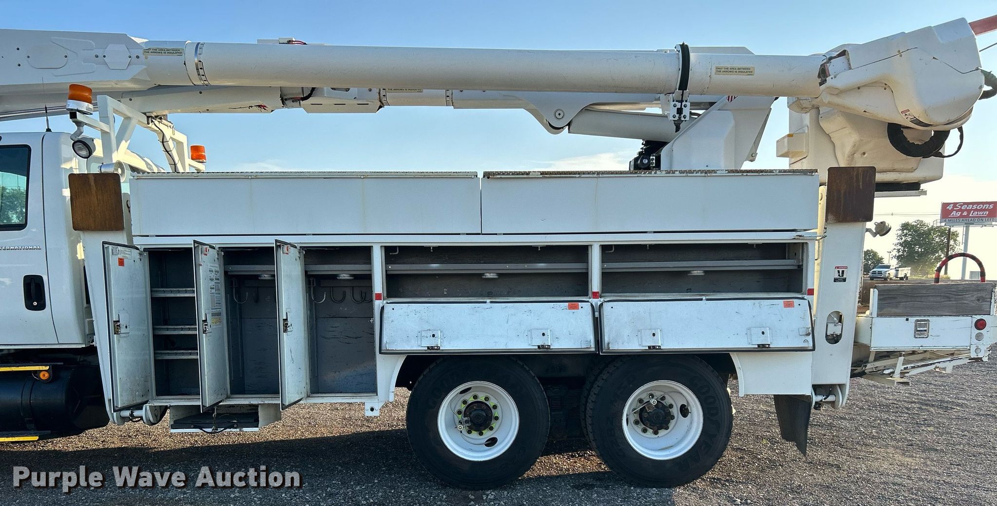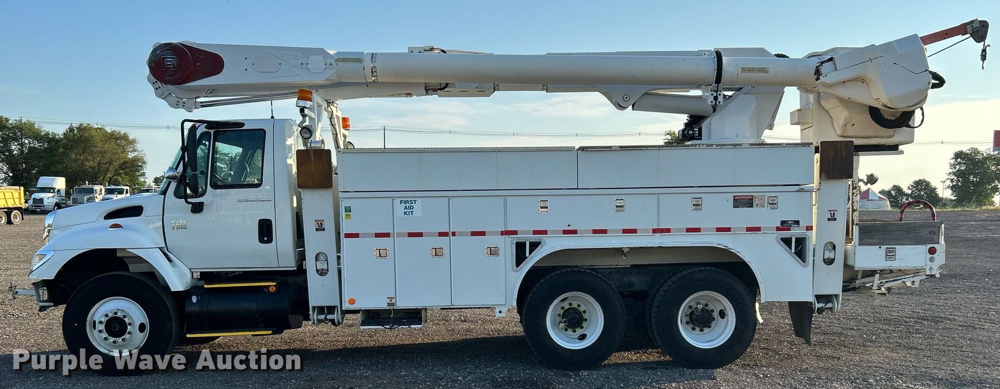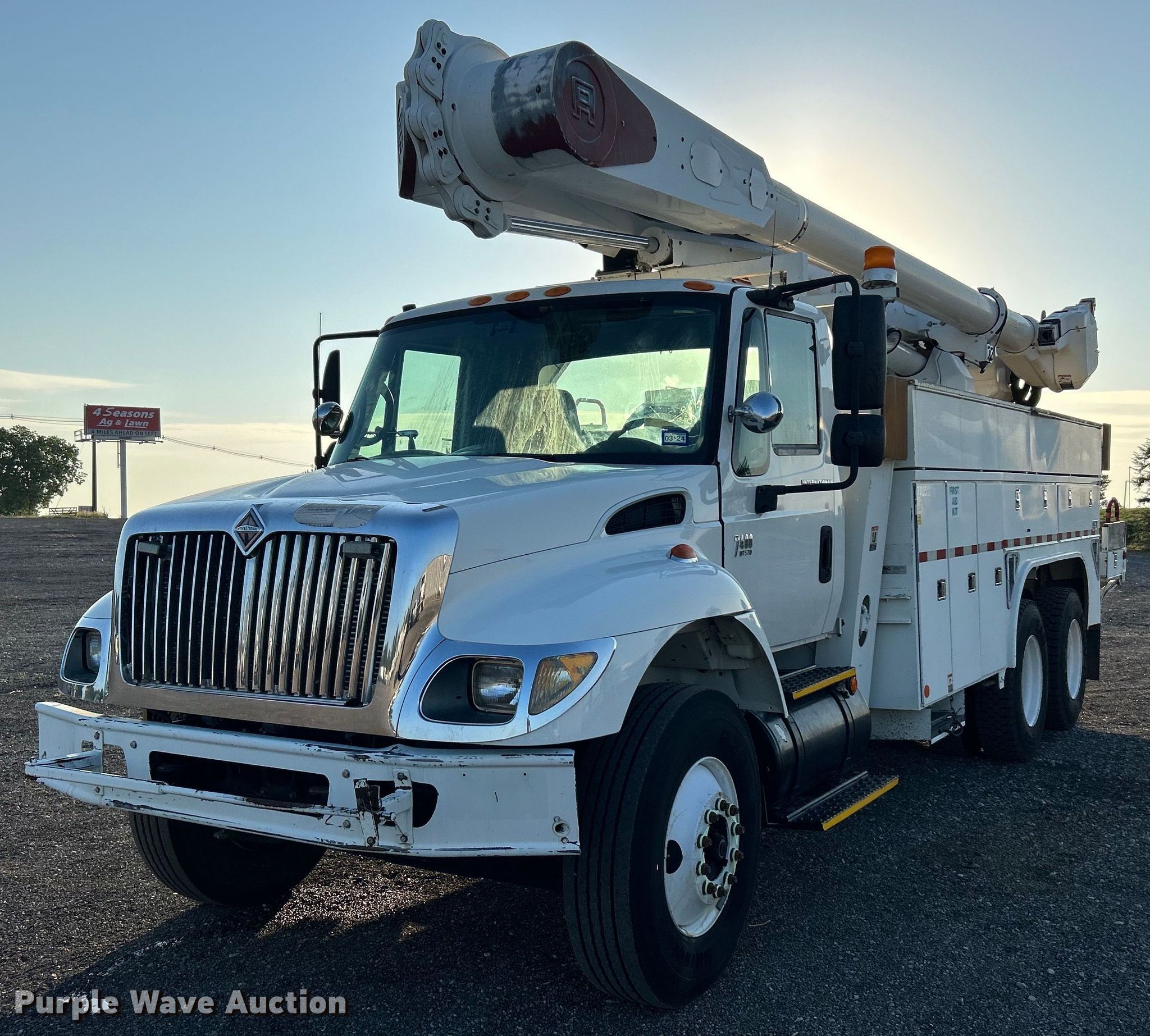 Purple Wave is selling a used Bucket Truck in Oklahoma. This item is a 2006 International 7400 bucket truck with the following: Miles: 120,746 on odometer, Hours: 11,596 on meter, VIN: 1HTWGAZR36J296540