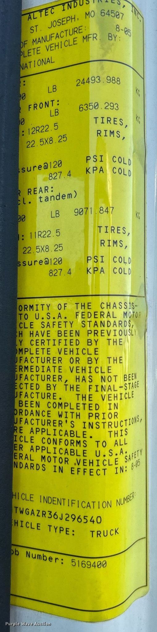 2006 International 7400 bucket truck. Miles: 120,746 on odometer, Hours: 11,596 on meter, VIN: 1HTWGAZR36J296540. Engine Navistar, Displacement: 9.3L, Cylinders: 6, Fuel type: Diesel. Transmission Automatic. Chassis Axles: Tandem, Suspension: Spring over walking beam, Brakes: Air, PTO. Interior AC, Heat, Cruise control, Brake controller. Features Bed 16' L x 93" W, Boom Altec, Boom type: Articulating, Insulated, Man basket, Boom controls Platform/ basket.. Tires Front: 12R22.5, Rear: 11R22.5. Notes Dash warning indicator: ABS, Fuel filter. Oklahoma title. 15107 North 137th East Avenue. Collinsville, OK 74021