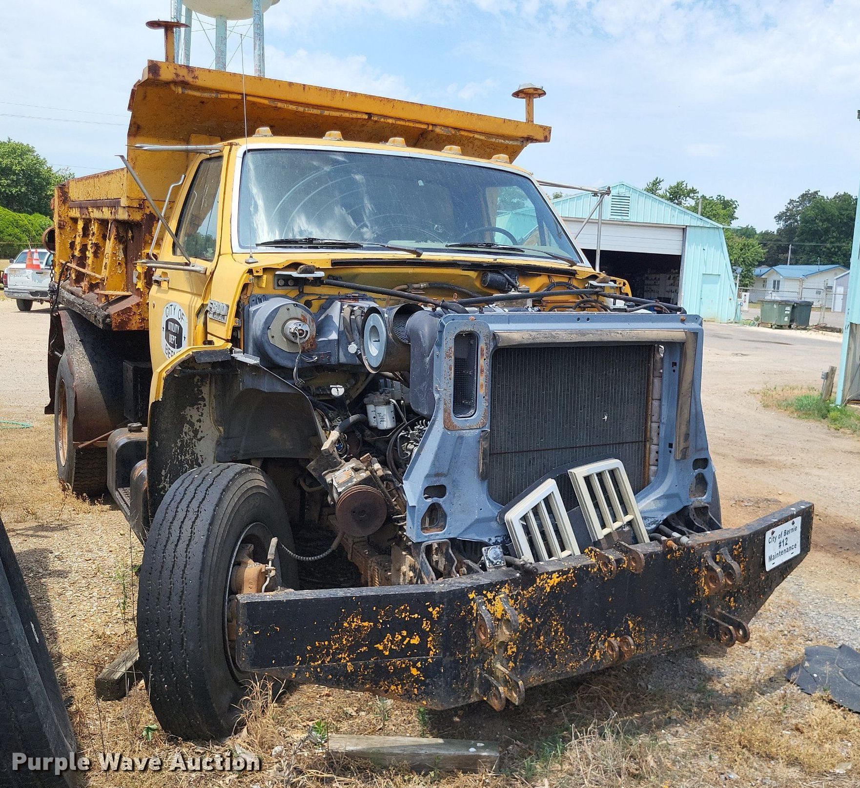 1988 Ford F800 dump truck. Miles: 36,165 on odometer, VIN: 1FDPK84A0JVA44283. Engine Ford 185F, Displacement: 7.8L, Cylinders: 6, Fuel type: Diesel. Transmission Manual, Speed: 5. Chassis Axles: Single, Suspension: Spring, Brakes: Air. Interior Heat. Features Dump bed 9' L x 7' W, Side height: 29", Bed type: Steel, Ram: Single , End gate: Manual. Tires Size: 9.00R20. Notes Dash warning indicator: Traction control, Windshield chipped or cracked, Non-operational unit. Missouri title. Title distribution may be delayed up to 14 days from verification of funds. City of Bernie. Bernie, MO 63822