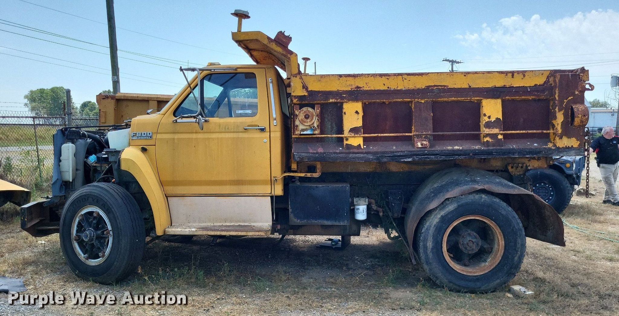 This 1988 Ford F800 dump truck will sell to the highest bidder regardless of price.