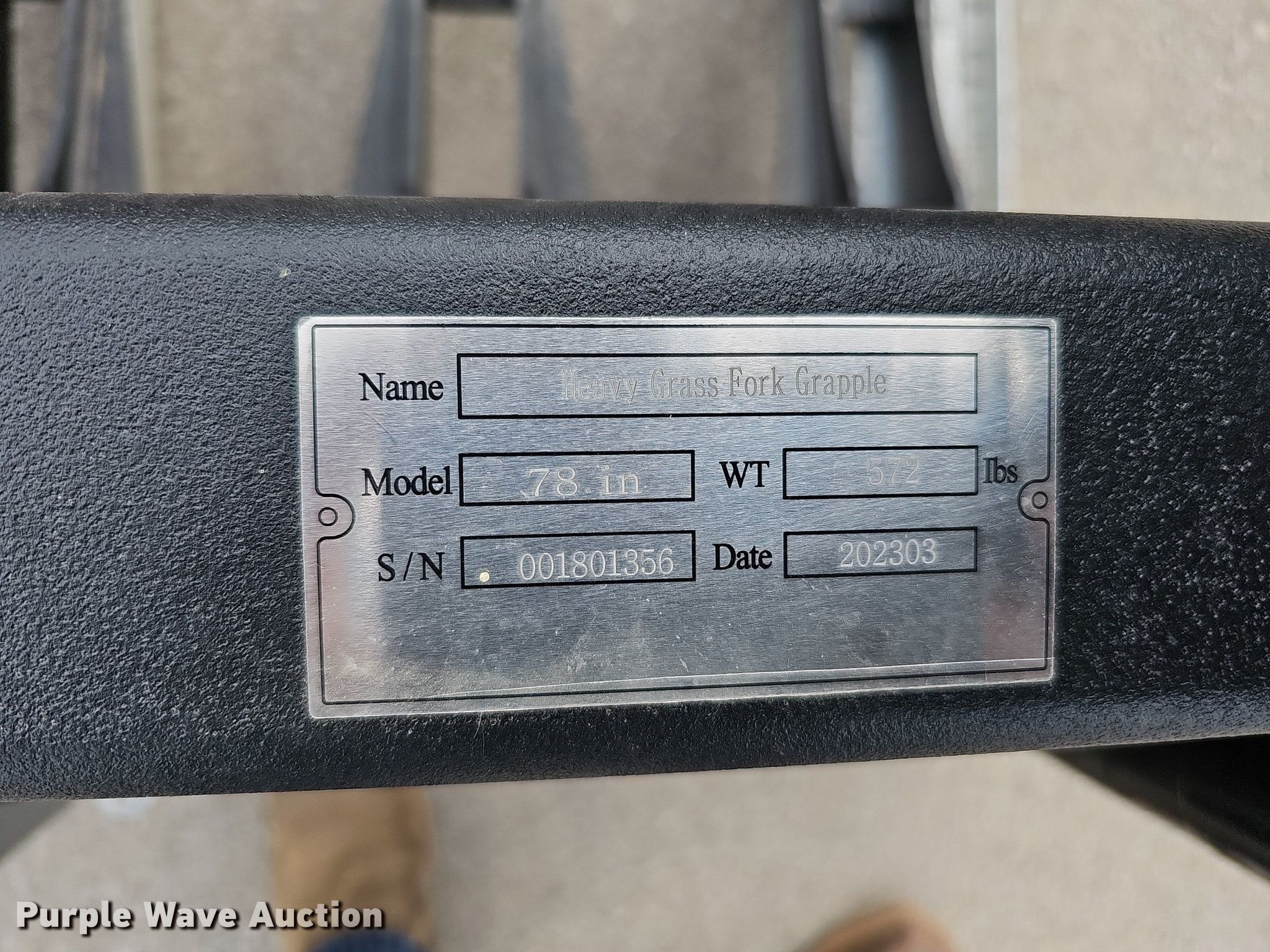 2023 Heavy Grass skid steer root grapple bucket. Serial: 001801356, Teeth: Bolt-on, Width: 78", Unused. Jordan Machinery / S & N Auto Sales. 25050 U.S. 275. Waterloo, NE 68069