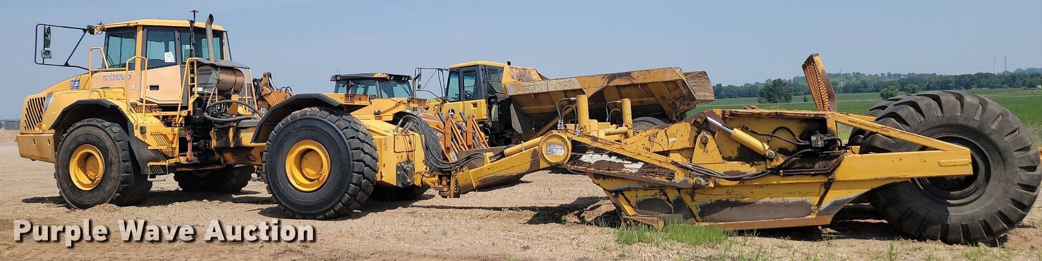 Purple Wave is selling a used Conventional Scraper in South Dakota. This item is a Volvo T450D 4WD scraper tractor with the following: Hours: 8,720 on meter, Serial: T450DV17048