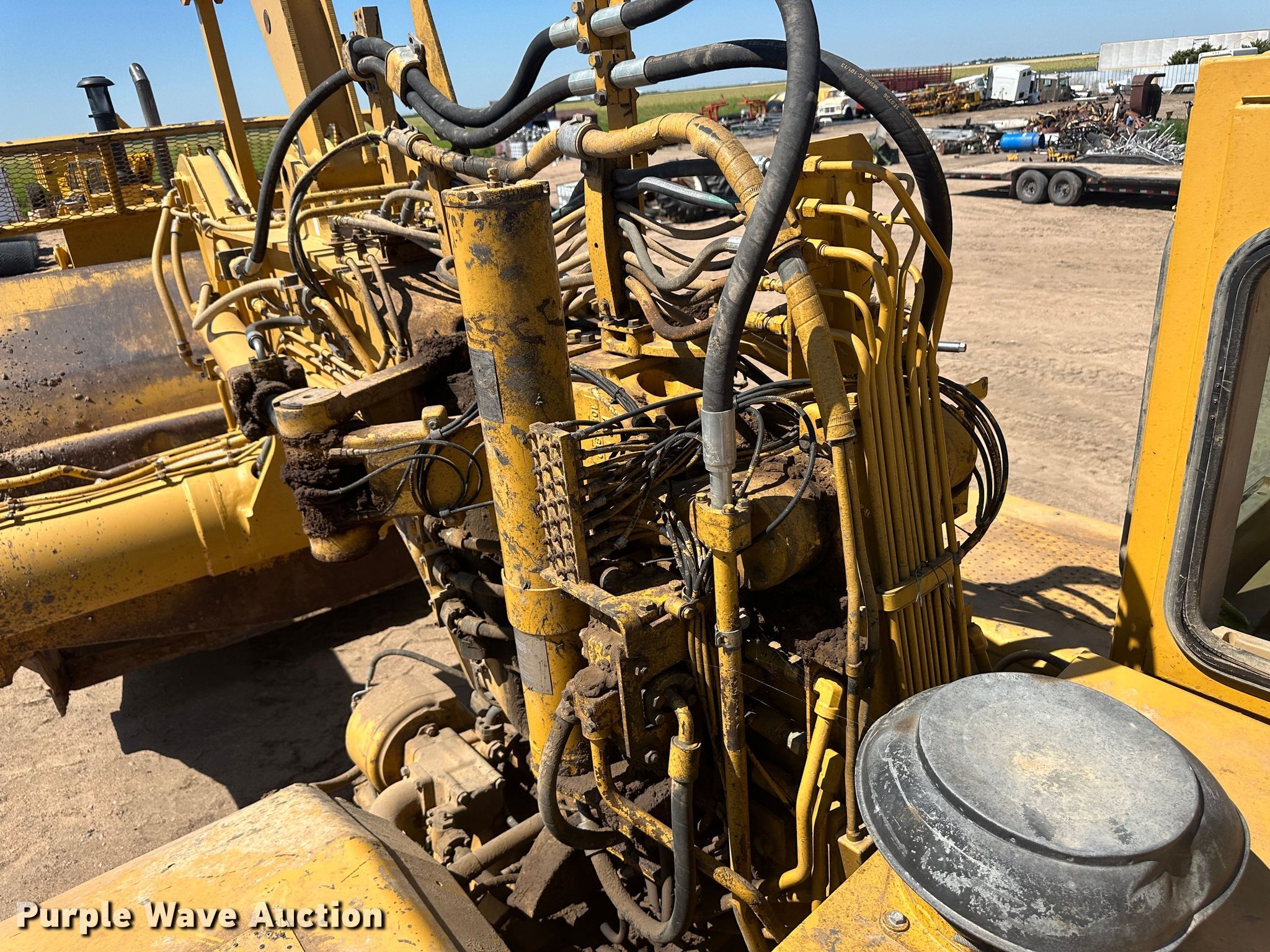 1997 Caterpillar 627F scraper. Hours: 10,491 on meter, Hours on second meter: 28,797, Serial: 1DL00426. Engine Caterpillar 3406, Displacement: 14.6L, Cylinders: 6, Fuel type: Diesel. Second engine Caterpillar, Cylinders: 6, Fuel type: Diesel. Transmission Powershift, 8F - 1R. Chassis Brakes: Air. Operators station Enclosed cab, AC, Heat. Features Hydraulic lift, Scraper controls: Lever controls No. of controls: 3, Rear push block, Hitch: Rear. Tires Size: 33.25R29. 1587 Cottonwood. Sublette, KS 67877