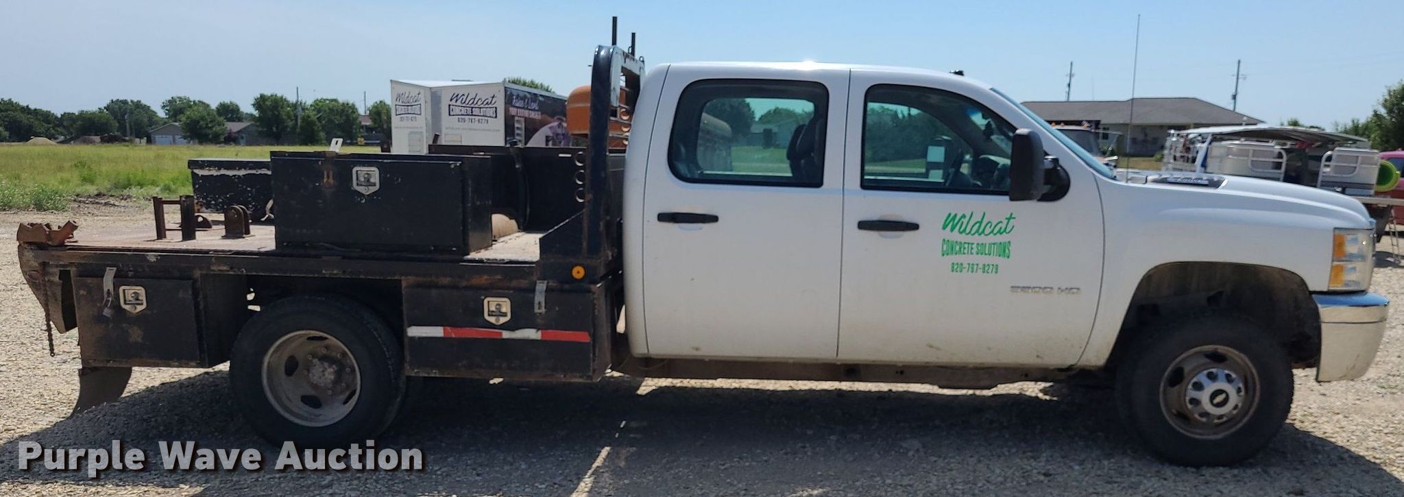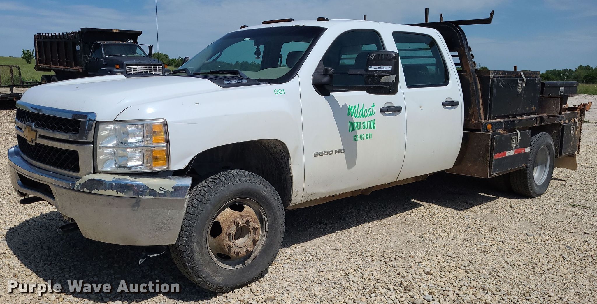 Purple Wave is selling a used 3/4 or 1 Ton Pickup or Van in Kansas. This item is a 2012 Chevrolet Silverado 3500HD Crew Cab flatbed pickup truck with the following: Miles: 282,774 on odometer, VIN: 1GB4CZCG2CF162286, Unit #: 001