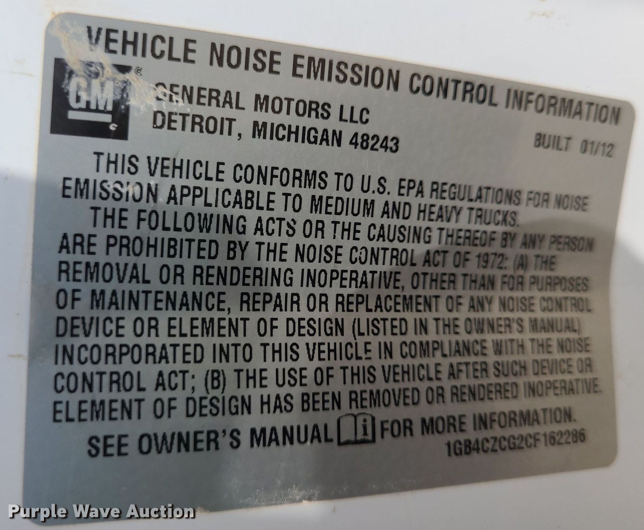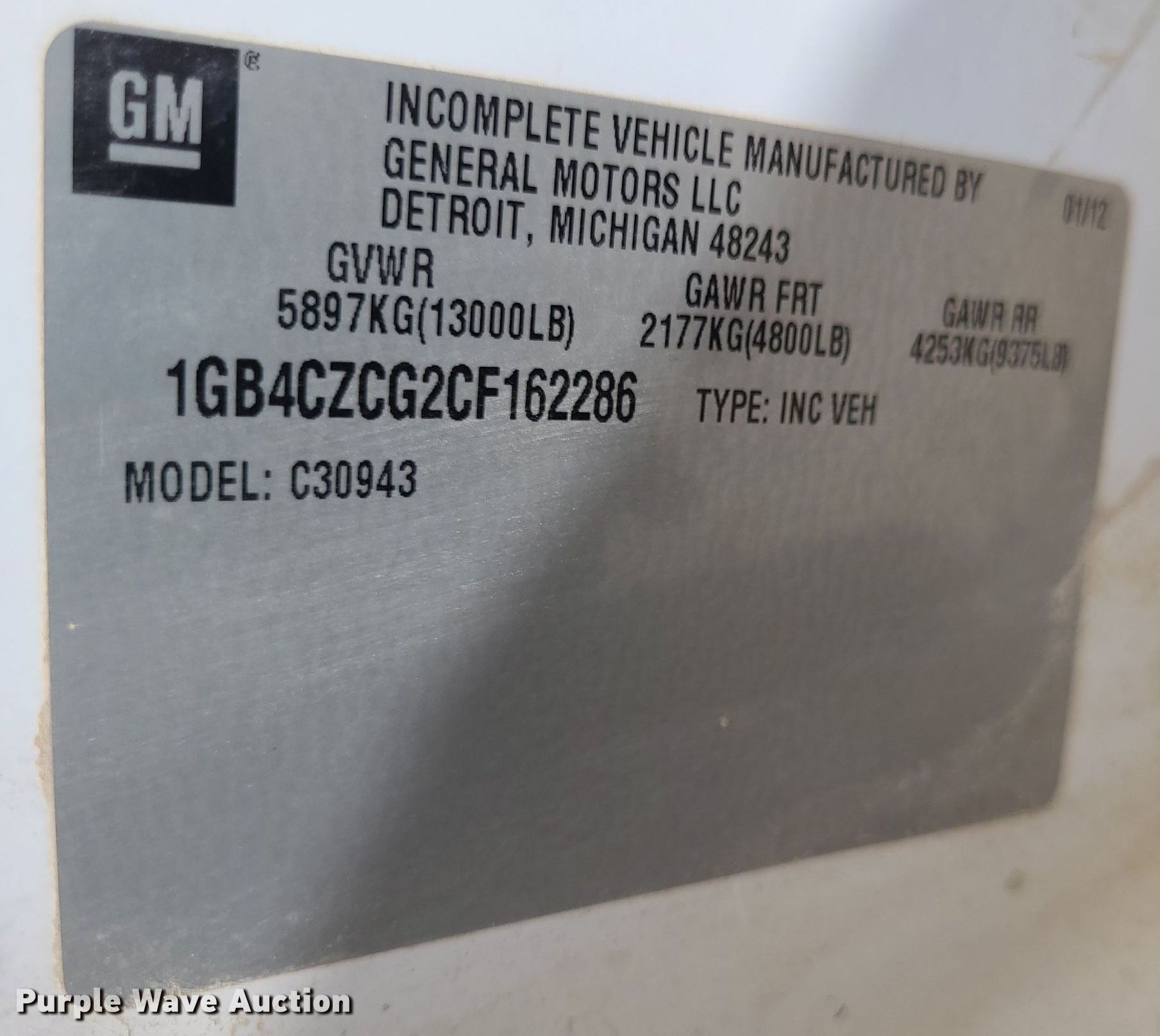 - VIN: 1GB4CZCG2CF162286