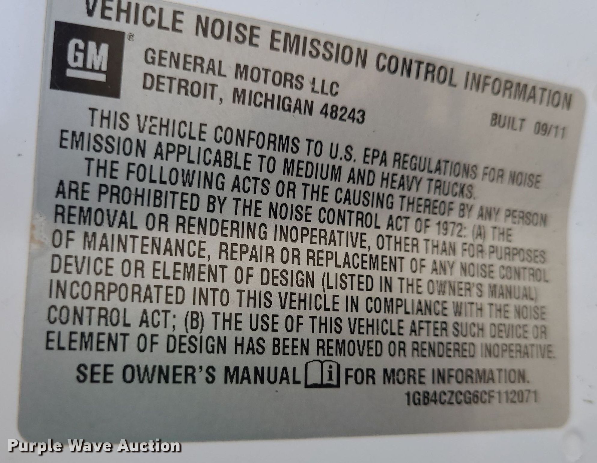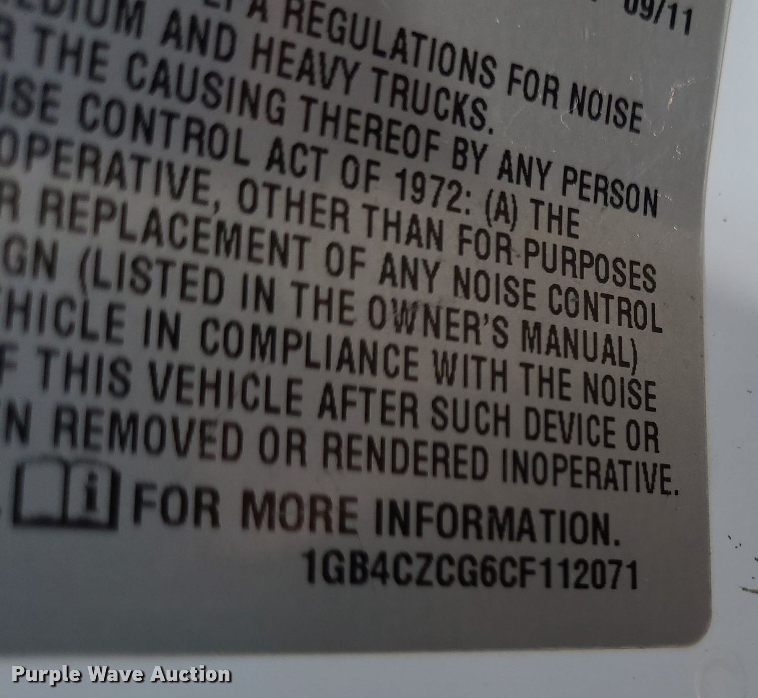 2012 Chevrolet Silverado 3500HD Crew Cab flatbed pickup truck. Miles: 283,002 on odometer, VIN: 1GB4CZCG6CF112071, Unit #: 002. Engine Displacement: 6.0L V8 OHV , Cylinders: 8, Fuel type: Gas. Transmission Automatic. Interior AC, Heat, Power windows, Cruise control. Features Flatbed 8' 6" L x 83" W, Hitch: Gooseneck. Tires Size: 235/80R17. Notes Decals will be removed prior to auction, Dash warning indicator: Check engine, Anti-theft, Windshield chipped or cracked. Kansas title. Title has a lien that will be released following the close of the auction. Title distribution may be delayed up to 30 days from verification of funds. Council Grove, KS 66846
