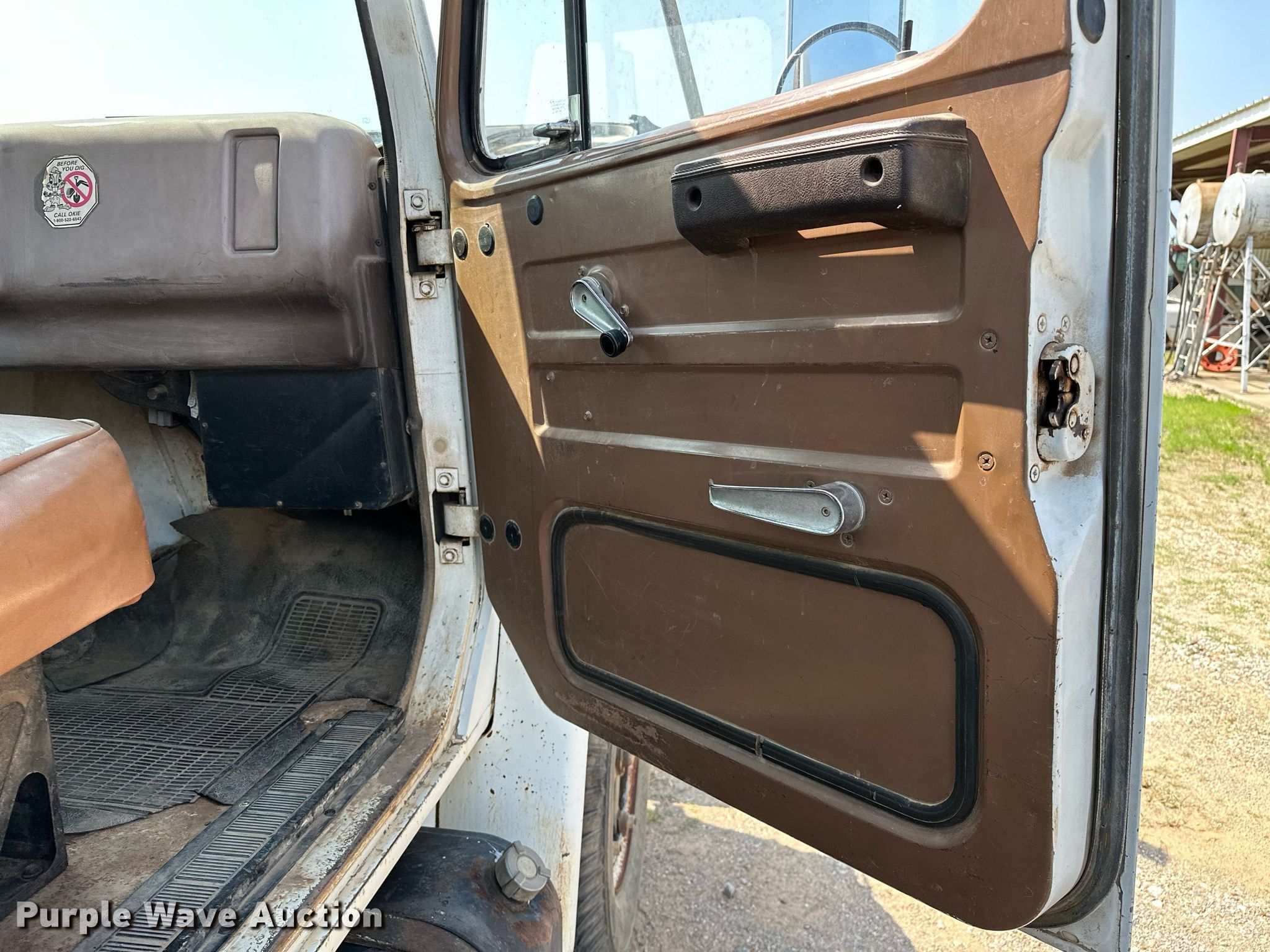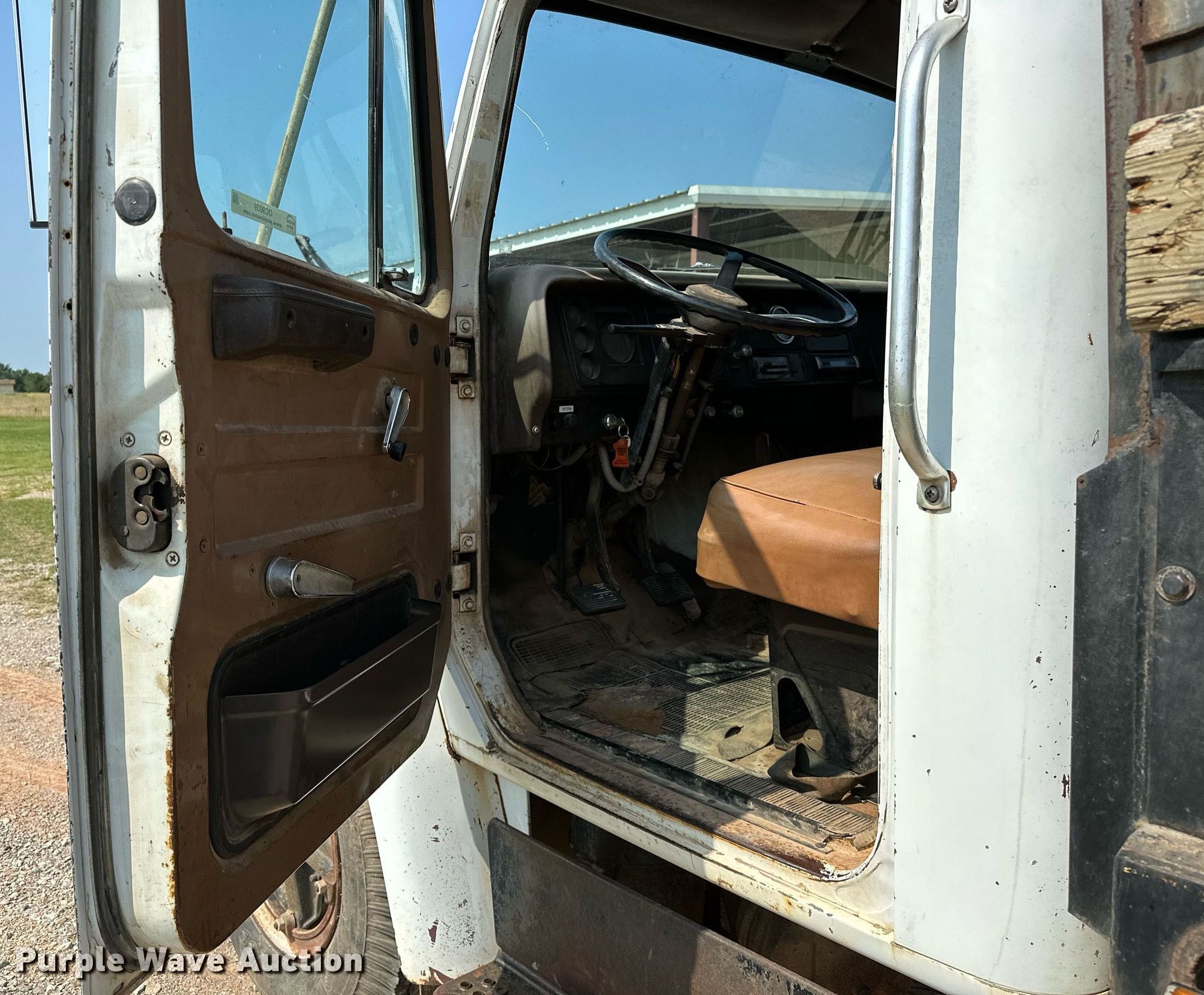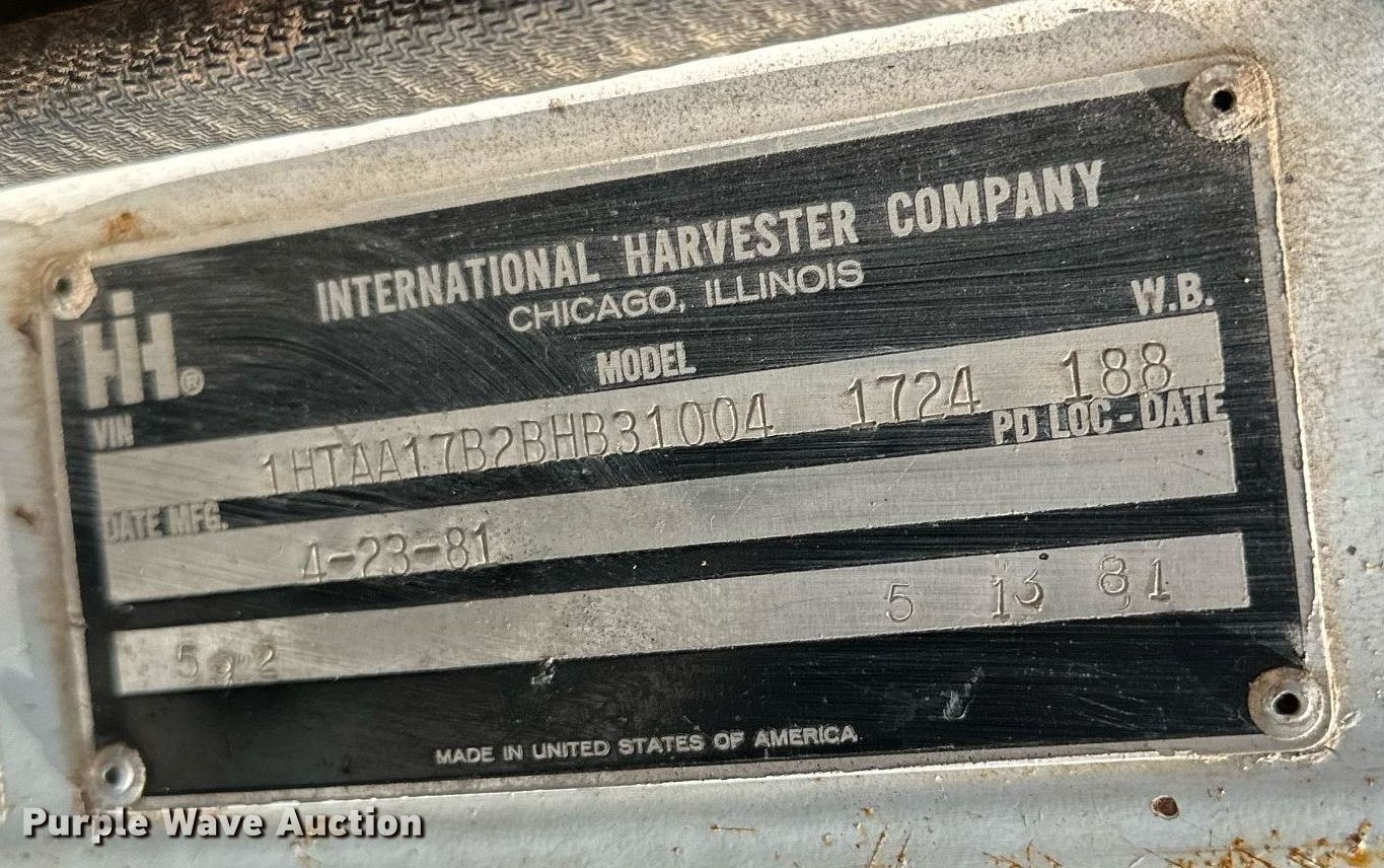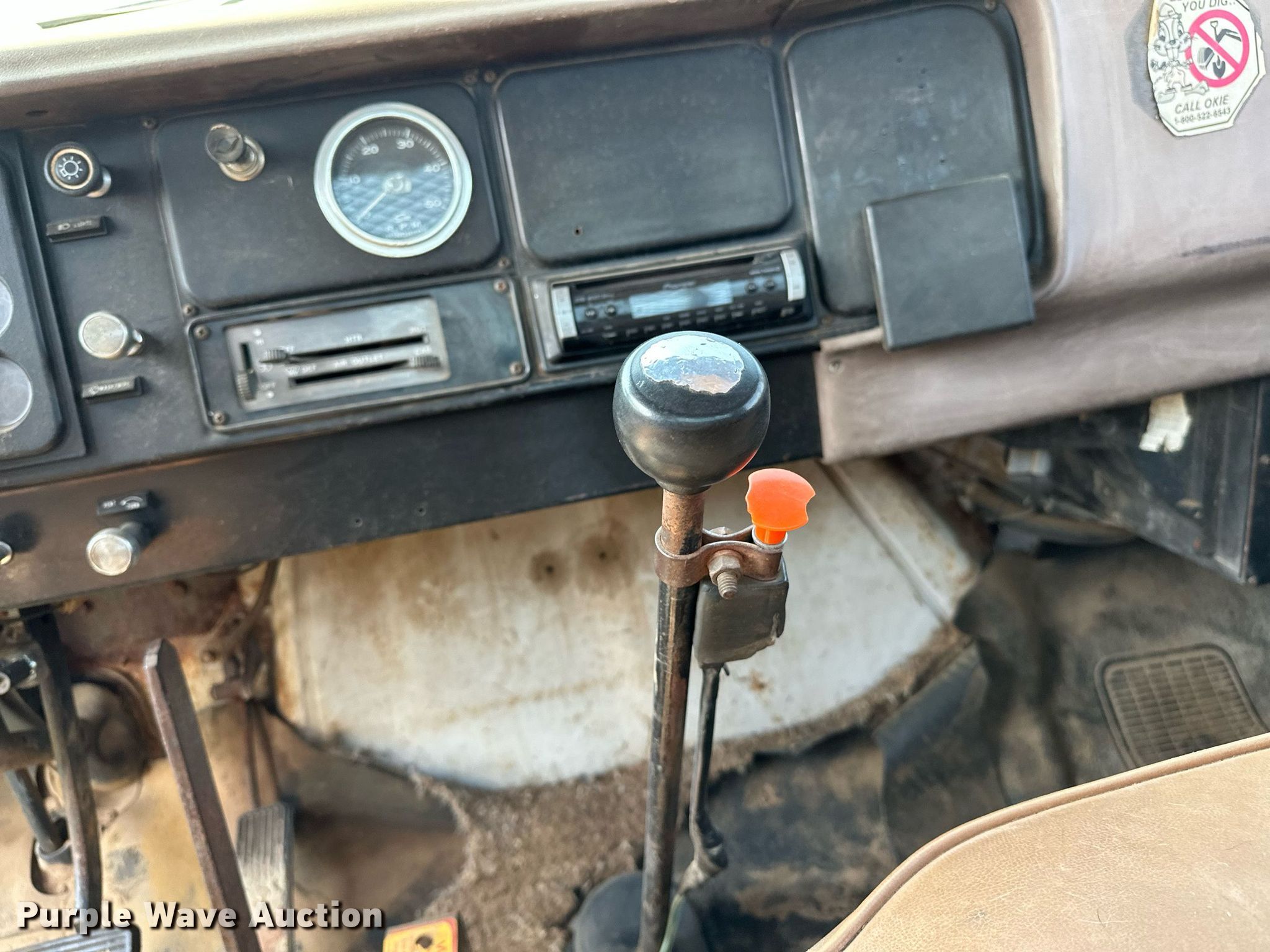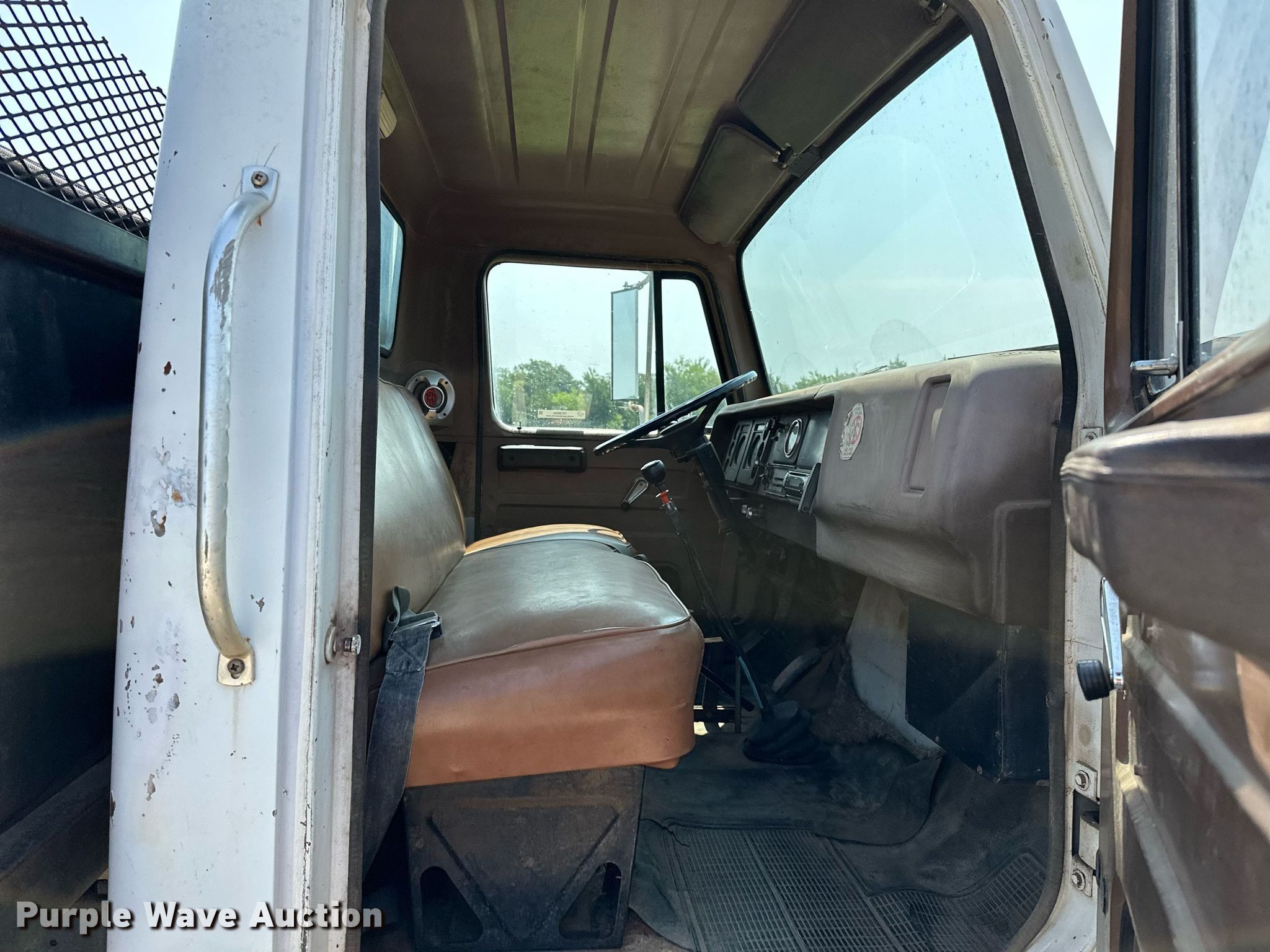 1981 International 1724 dump flatbed truck. Miles: 79,549 on odometer, Miles or hours may vary, unit still in use, VIN: 1HTAA17B2BHB31004. Engine Cylinders: 8, Fuel type: Gas. Transmission Manual, Speed: 5, plus 2. Chassis Axles: Single, Suspension: Spring, Brakes: Hydraulic, PTO, GVWR: 23,660 lbs, Wheelbase: 188". Interior Heat. Features Dump flatbed 14' L x 96" W, Roll tarp, Ram: Double. Tires Front: 10.00-20, Rear: 9.00-20. Notes Windshield chipped or cracked. Oklahoma title. Title distribution may be delayed up to 14 days from verification of funds. 22539 Chambers Road. Earlsboro, OK 74840