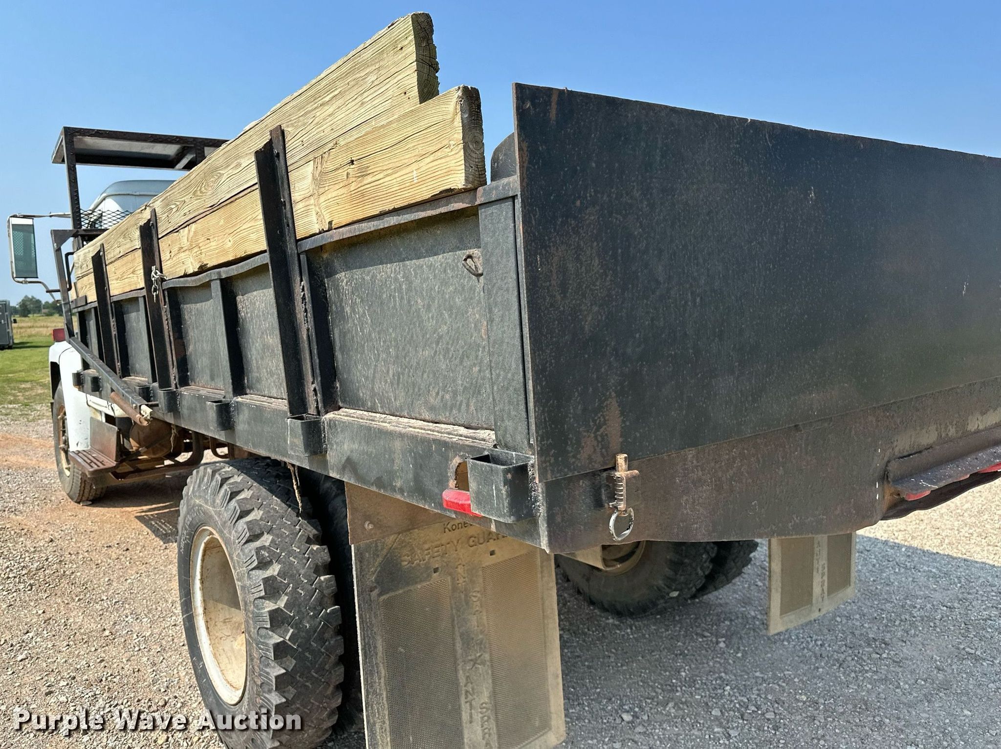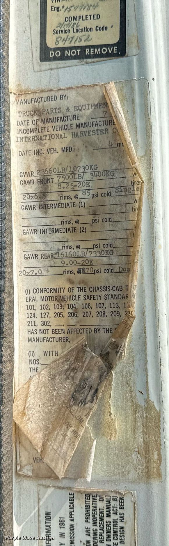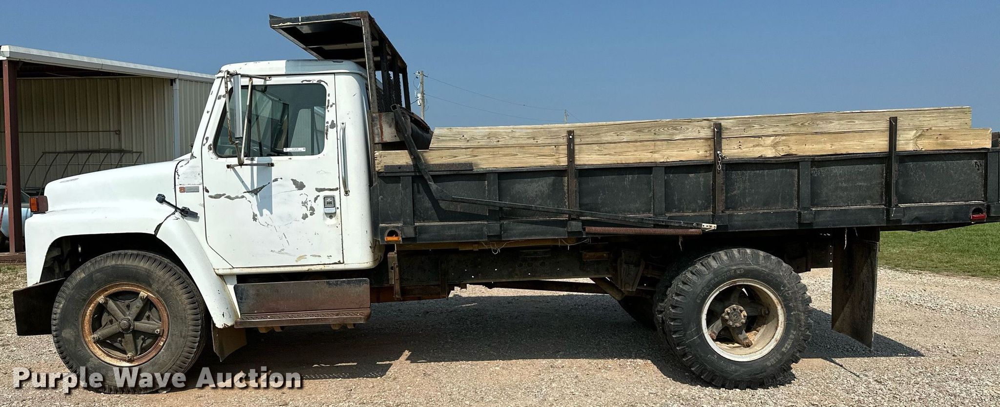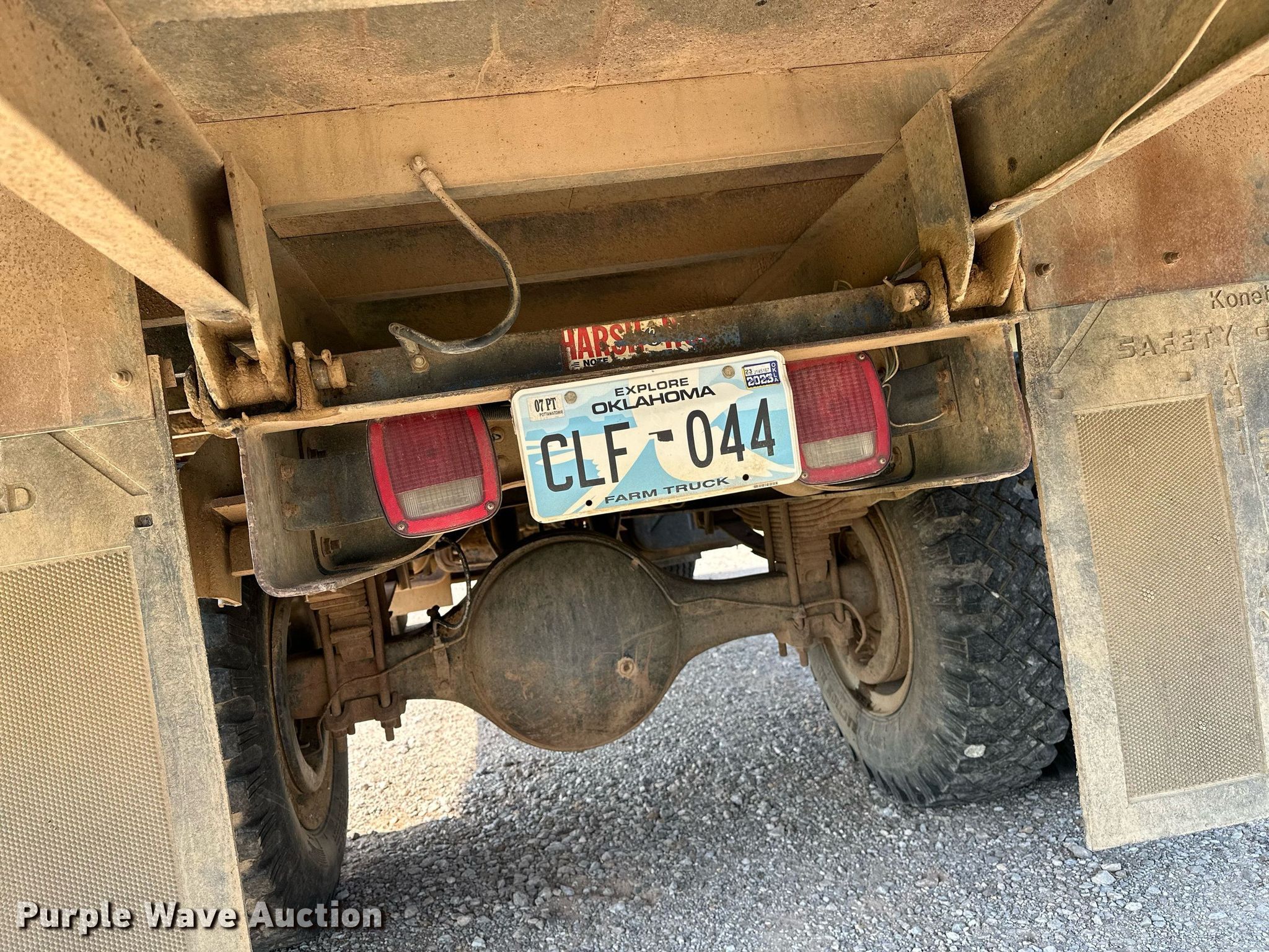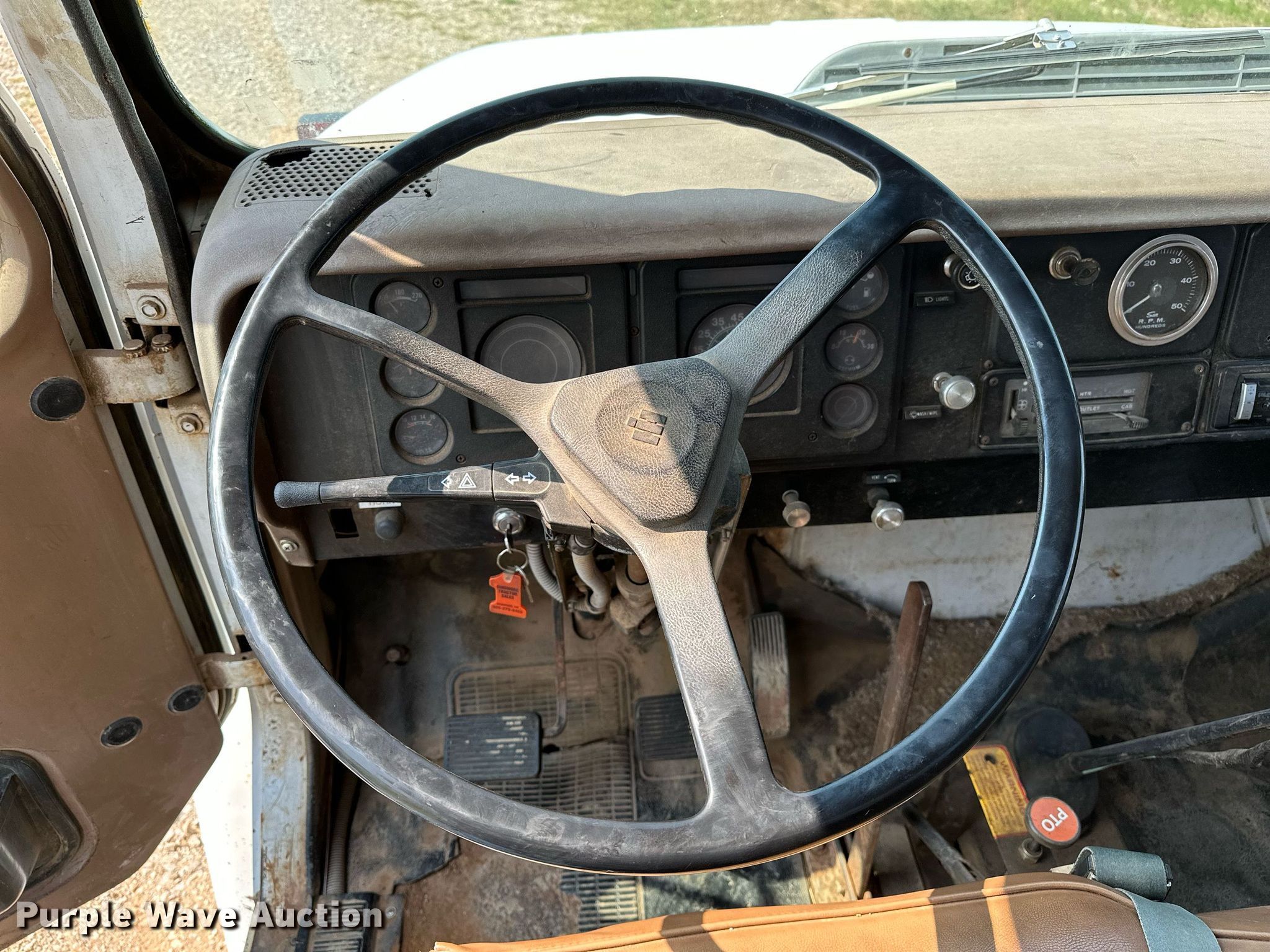1981 International 1724 dump flatbed truck. Miles: 79,549 on odometer, Miles or hours may vary, unit still in use, VIN: 1HTAA17B2BHB31004. Engine Cylinders: 8, Fuel type: Gas. Transmission Manual, Speed: 5, plus 2. Chassis Axles: Single, Suspension: Spring, Brakes: Hydraulic, PTO, GVWR: 23,660 lbs, Wheelbase: 188". Interior Heat. Features Dump flatbed 14' L x 96" W, Roll tarp, Ram: Double. Tires Front: 10.00-20, Rear: 9.00-20. Notes Windshield chipped or cracked. Oklahoma title. Title distribution may be delayed up to 14 days from verification of funds. 22539 Chambers Road. Earlsboro, OK 74840