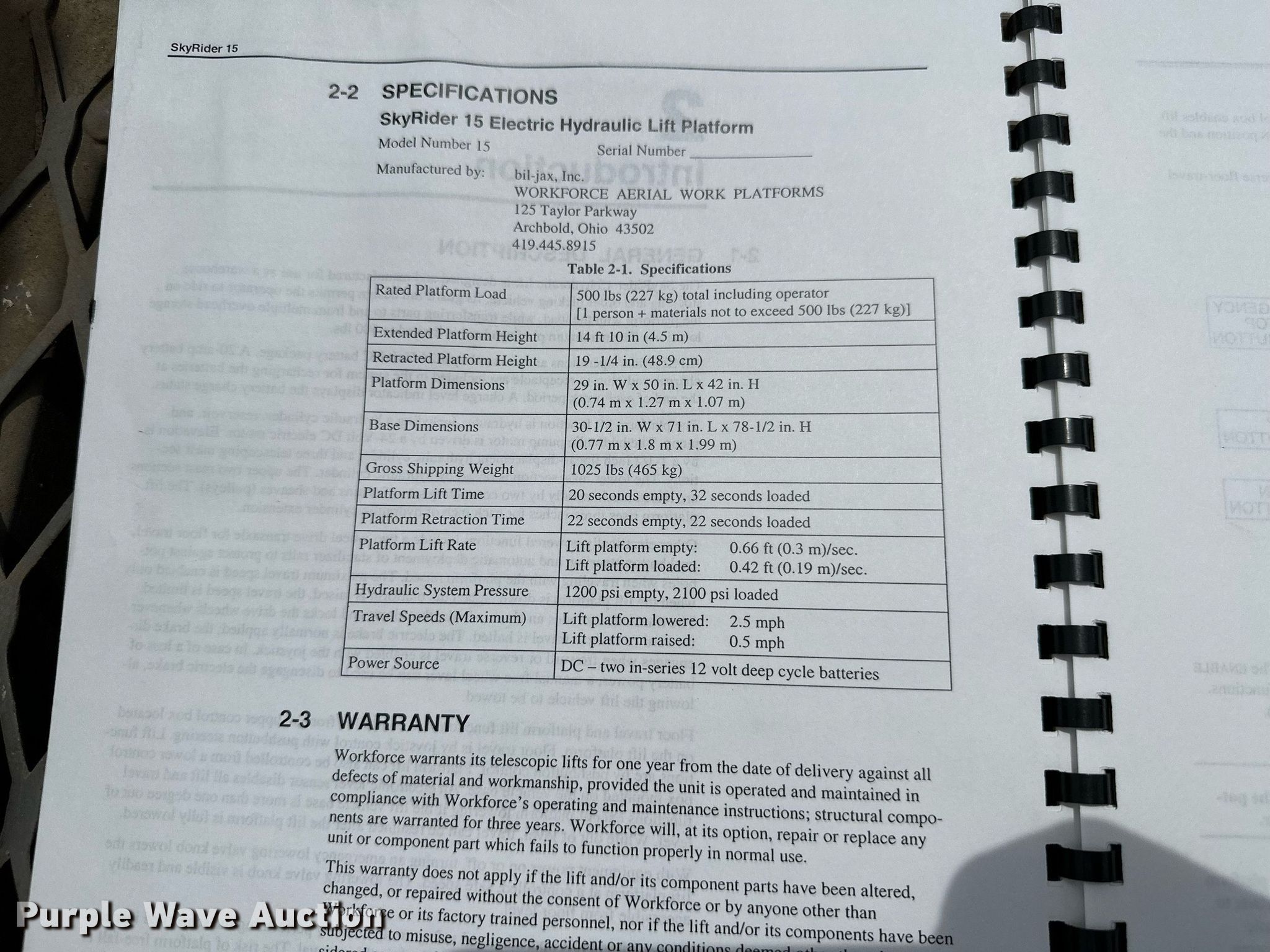 Purple Wave is selling a used Scissor or Vertical Lift in Oklahoma. This item is a Bil-Jax SkyRider 15 vertical lift with the following: Hours: 179 on meter, Serial: 15-0123