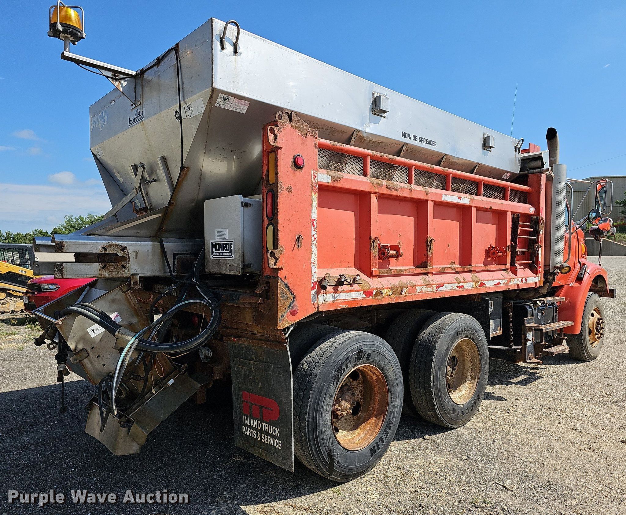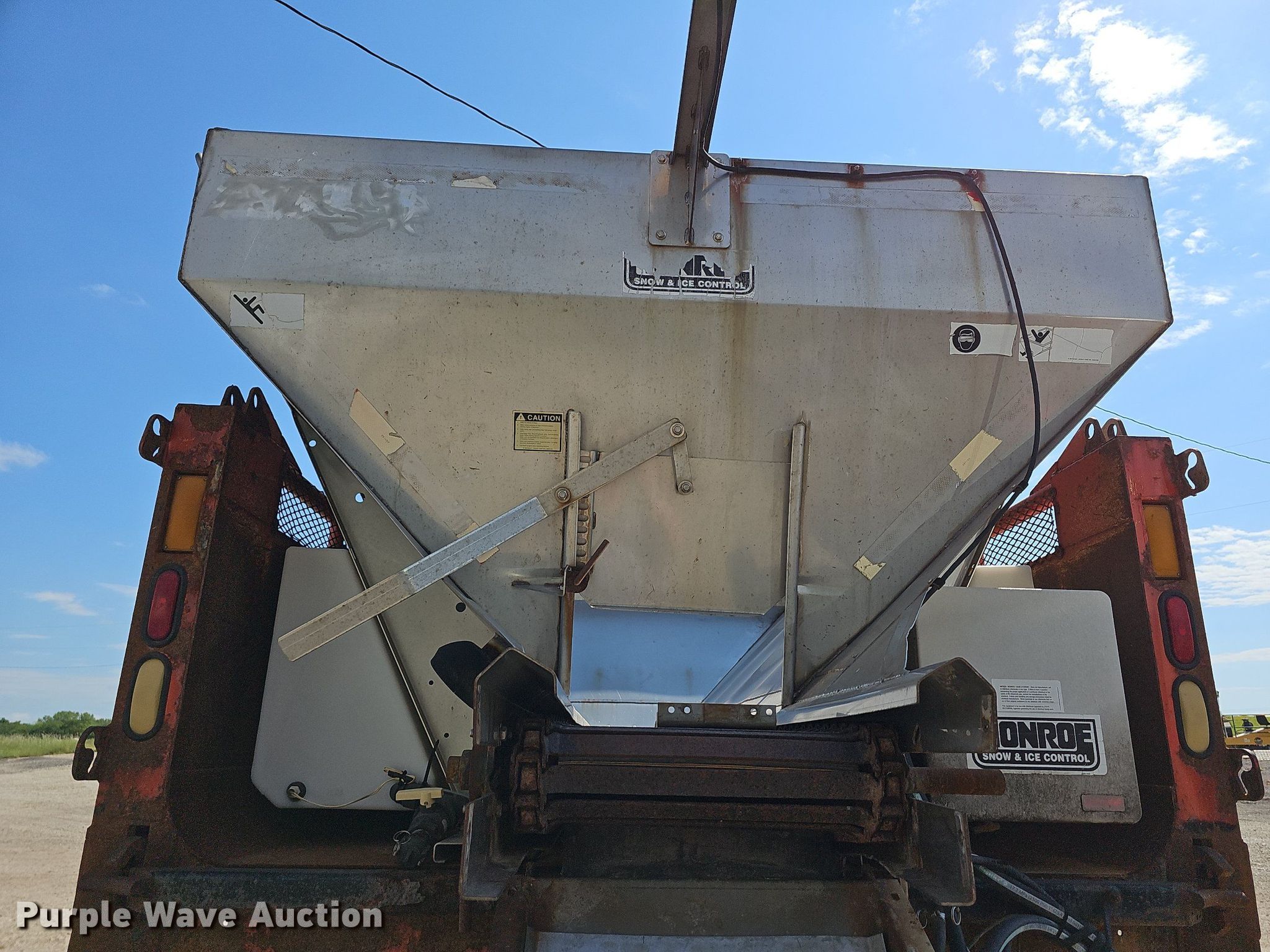 2003 Sterling LT7500 dump truck. Miles: 272,804 on odometer, Hours: 12,846 on meter, VIN: 2FZHATAK13AL69656, Unit #: 55. Engine Displacement: 7.2L, Cylinders: 6, Fuel type: Diesel. Transmission Automated manual. Chassis Axles: Tandem, Suspension: Spring, Brakes: Air, Front mount PTO, GVWR: 53,880 lbs FAWR: 13,880 lbs, IAWR: 20,000 lbs, RAWR: 20,000 lbs, Wheelbase: 180". Interior AC, Heat, Heated mirrors, Cruise control. Features Dump bed 13'L x 8' W, Side height: 26", Bed type: Steel, Ram: Single, Spreader Monroe. Tires Size: 11R22.5, Brand: Firestone. Notes End gate missing, Dash warning indicator: ABS. Kansas title. Morris County Highway Dept. Council Grove, KS 66846