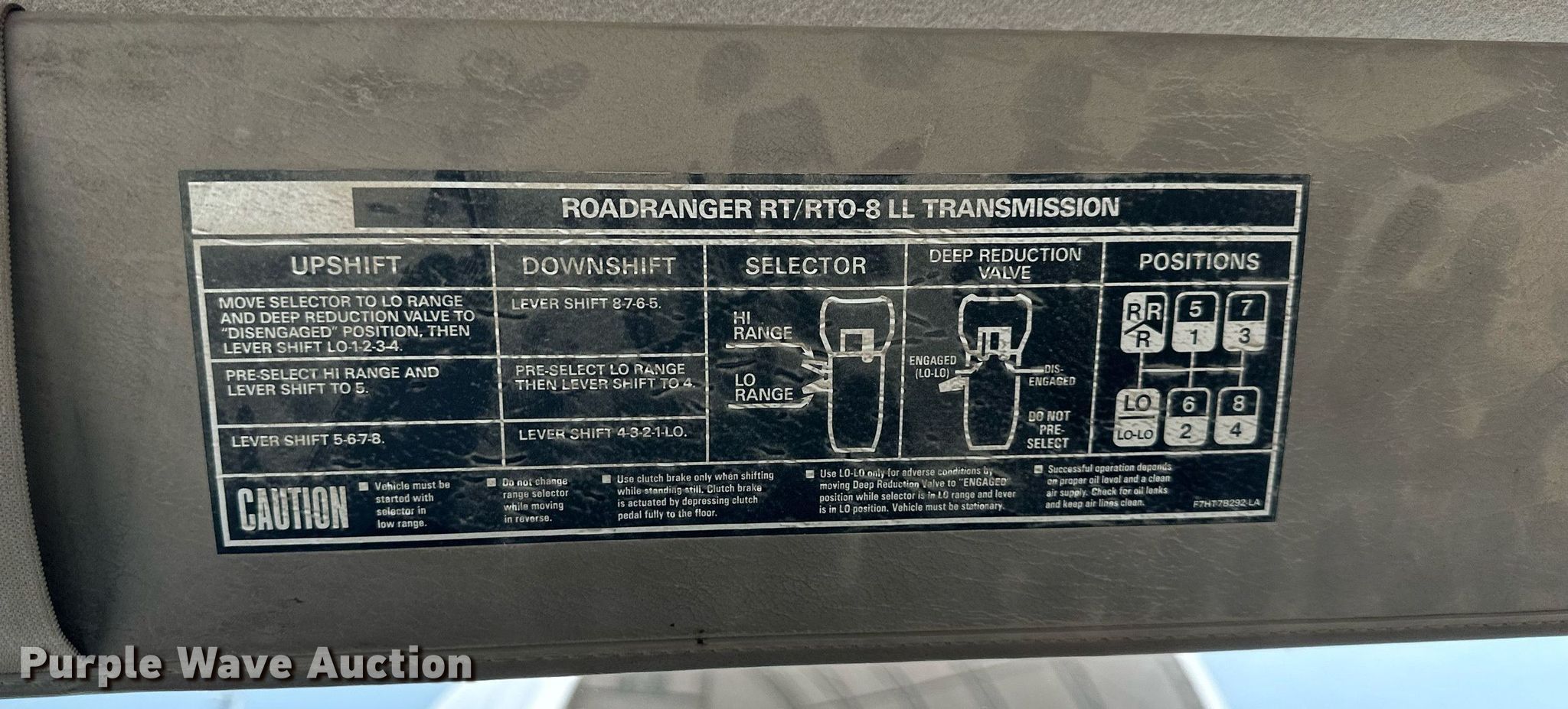 2006 Sterling L-Line semi truck. Miles: 244,938 on odometer, Hours: 14,053 on meter, VIN: 2FWJAZDE76AW10163. Engine Caterpillar C13, Displacement: 12.5L, Cylinders: 6, Fuel type: Diesel. Transmission Eaton Fuller Roadranger 8LL, Manual, Speed: 10. Chassis Axles: Tandem, Differential lock: Inter-axle, Suspension: Air, Brakes: Air, PTO. Interior AC, Heat, Power windows, Power locks, Cruise control. Features Deck plate: Steel, Fifth wheel type: Fixed, Fuel tank: Single. Tires Size: 11R22.5. Kansas title. Leavenworth County. 23690 187th St. Leavenworth, KS 66048