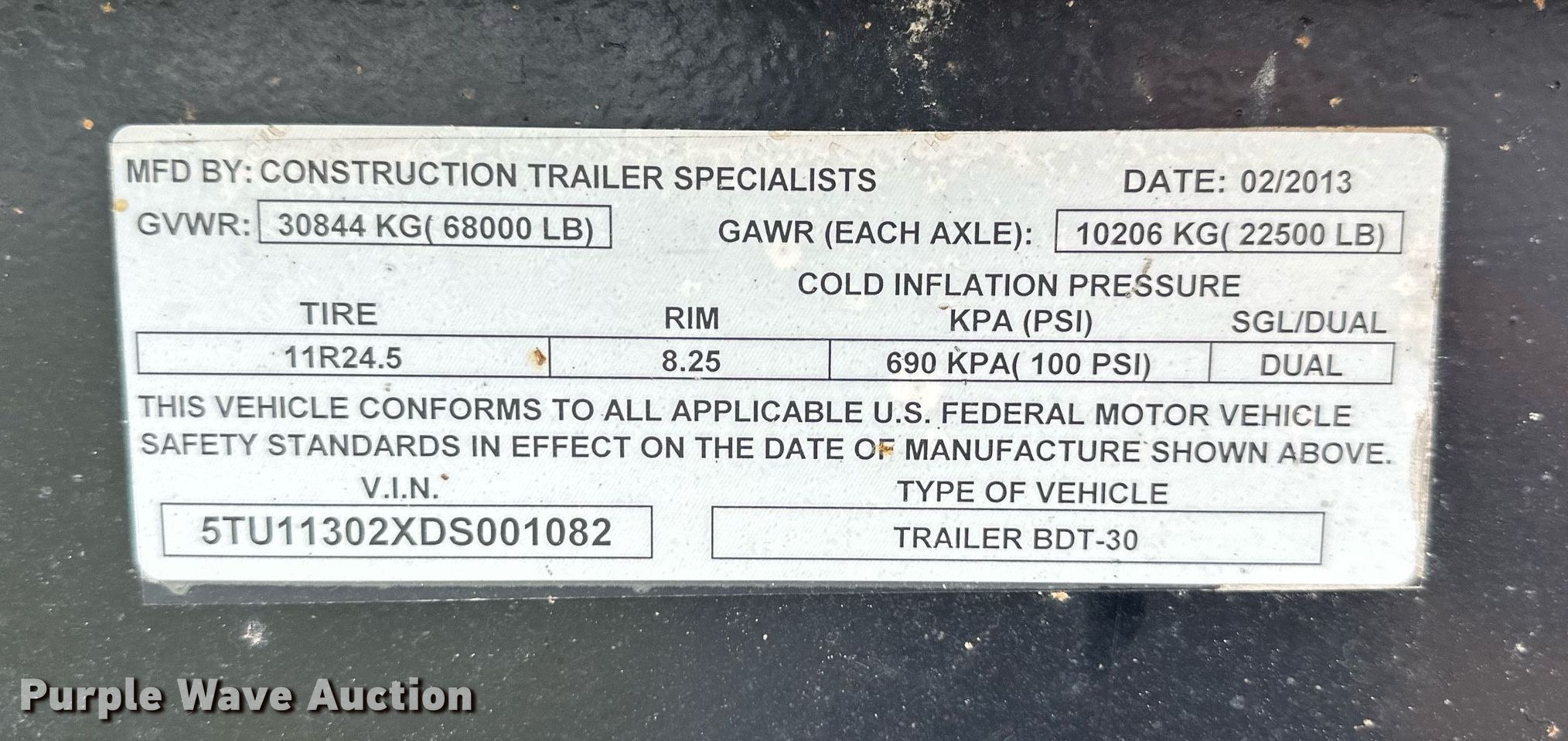 Take a look at this used 2013 CTS BDT-30 bottom dump trailer being sold on August 8th, 2023 in the SOLD! August 08 Government Auction made by CTS. Take a look at all of the item information below or take a look at similar auctions for Construction Trailers.