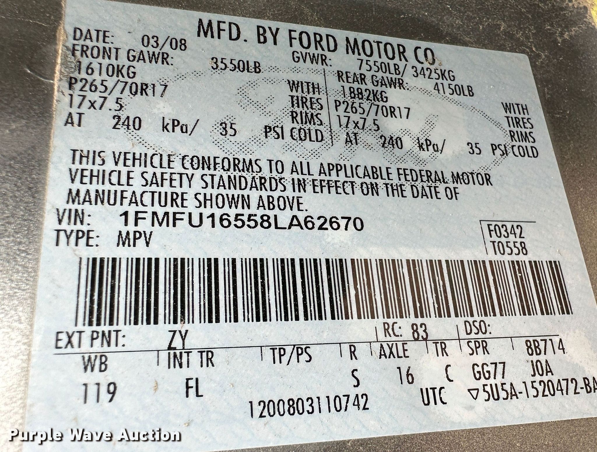 - VIN: 1FMFU16558LA62670