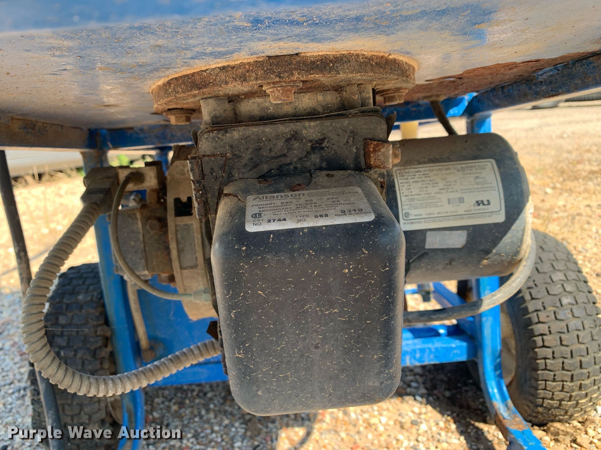 Delco Equalizer 420 IBD pressure washer. Serial: 10100678, Unit #: 1119. Electric Motor Allanson 668, Volts: 240. Features Wayne Combustion Systems oil burner Model: S55GYRT-8021, Volts: 230, Hz: 60, Phase: Single. Tires Size: 13.5x5.00-6. Notes Tire damaged, Non-operational unit. Panola County TX. 1120 East Sabine Street. Carthage, TX 75633