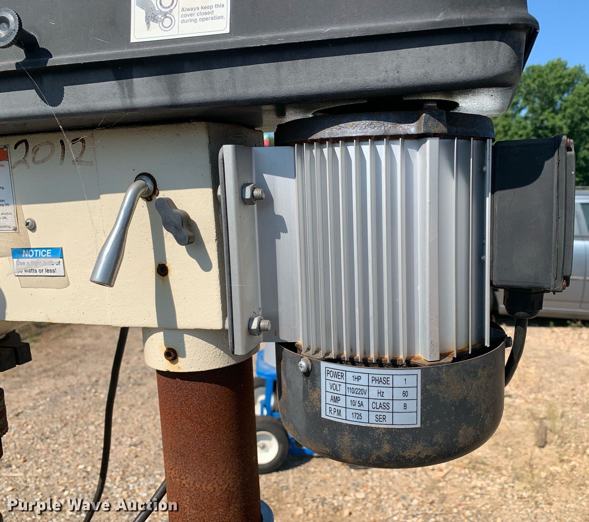 Purple Wave is selling a used Tools in Texas. This item is a 2011 Shop Fox W1680 17" drill press with the following: Serial: 13422, HP: 1, Volts: 110/220, Phase: Single, 5/8" chuck