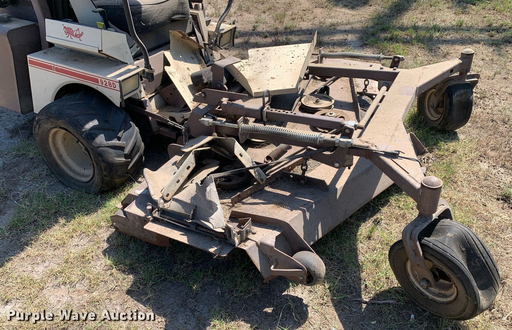 Purple Wave is selling a used Commercial Turf Mower in Texas. This item is a Grasshopper 928D ZTR lawn mower with the following: Hours: 1,106 on meter, Cutting width: 72", Serial: 5543999