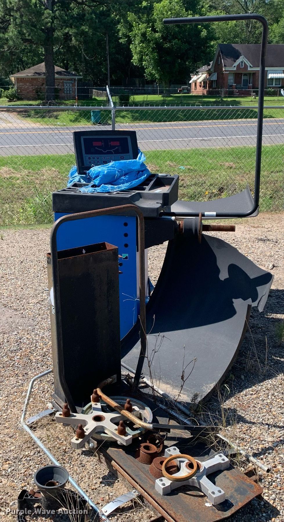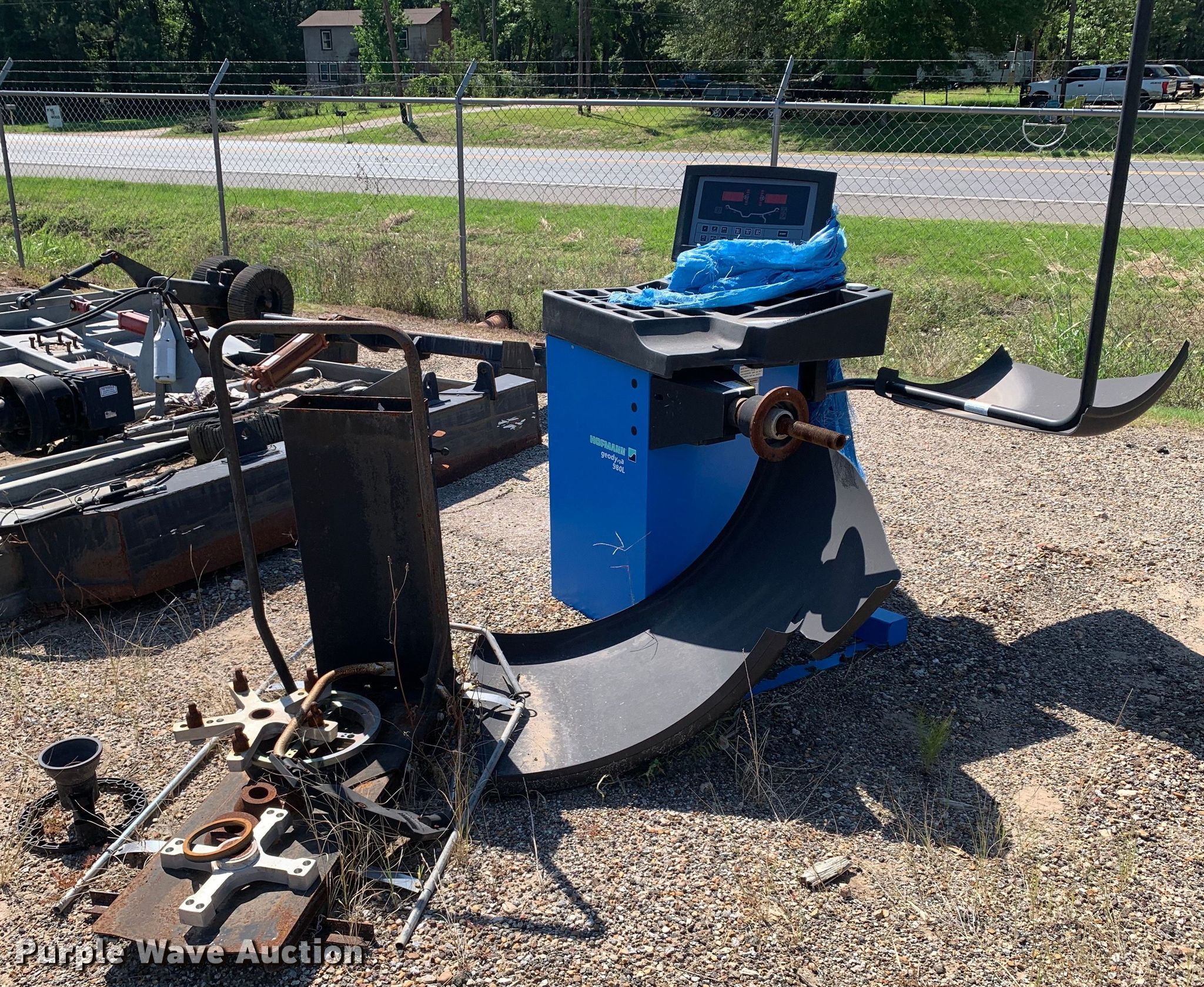 Hofmann EEWB710B tire balancer. Serial: G88JB005, Volts: 115, Hz: 60, Phase: Single. Notes Disassembled, Parts may be missing, Unknown operating condition. Panola County TX. 1120 East Sabine Street. Carthage, TX 75633