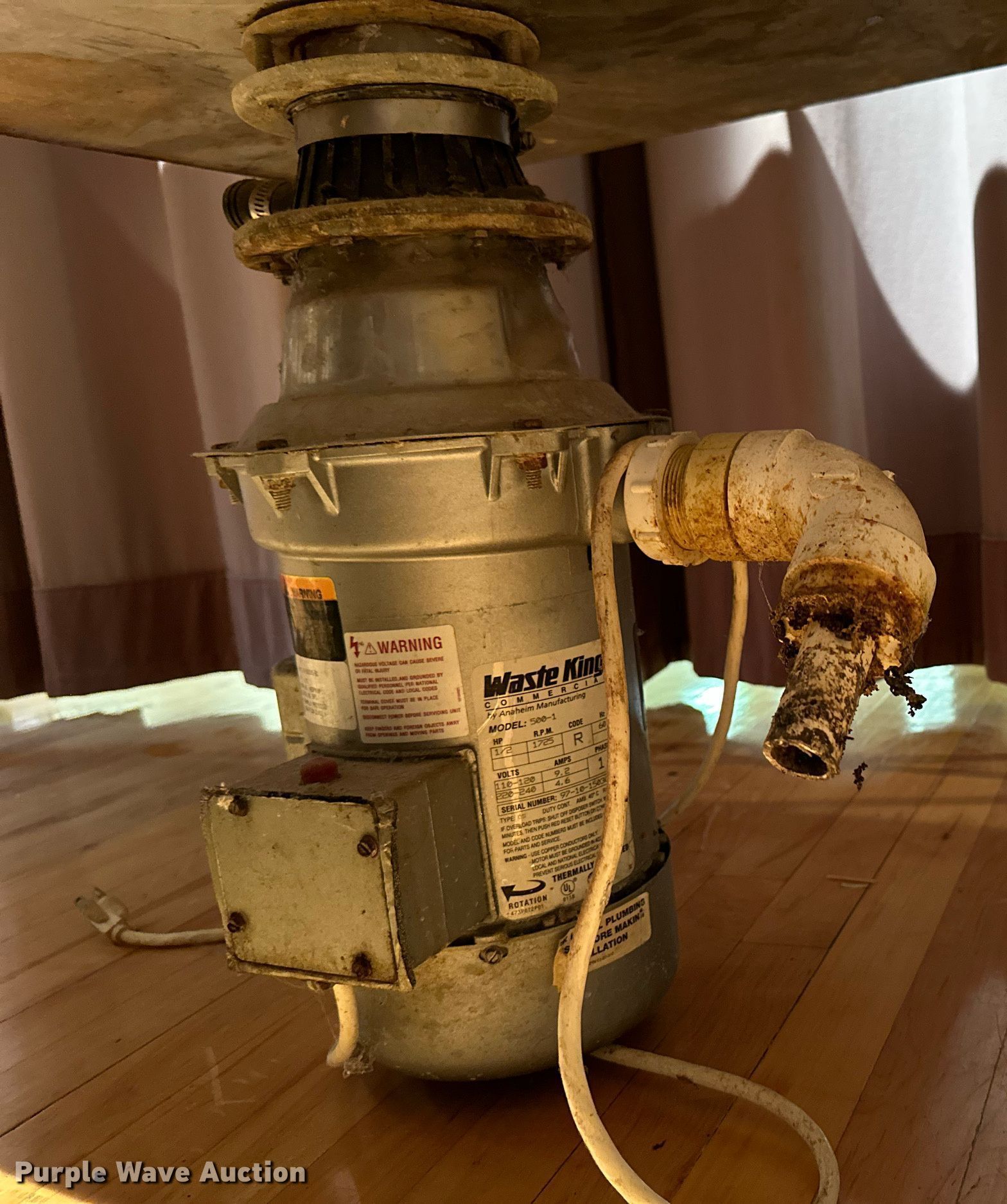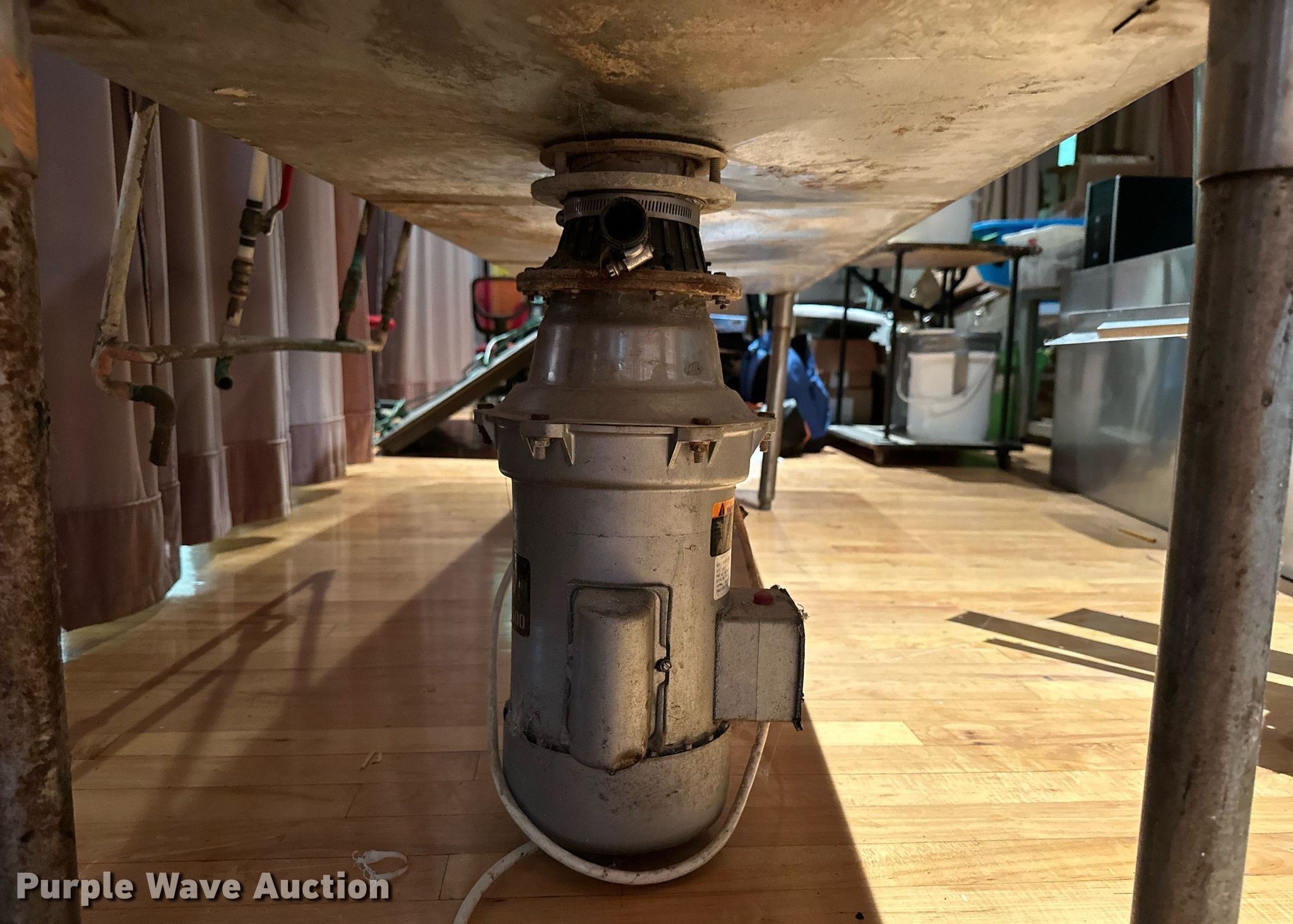 Purple Wave is selling a used Building Materials in Kansas. This item is a (3) basin stainless steel sinks with the following: Overall: 12' x 27" x 44"H, Basin: 2' x 2', Waste King 500-1 garbage disposal, Serial: 97-10-15030-1, Phase: Single, Volts: 110/120/220/240, HP: 0.5, Hz: 60