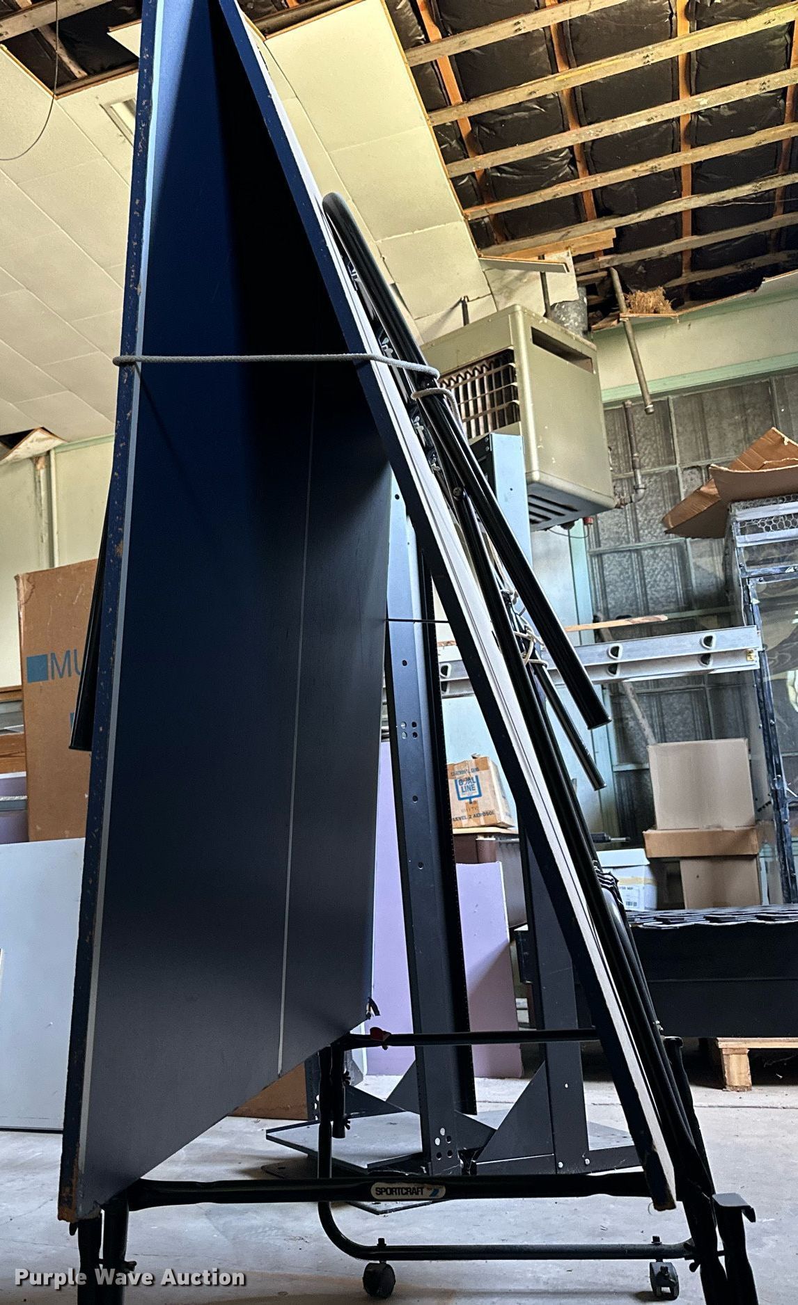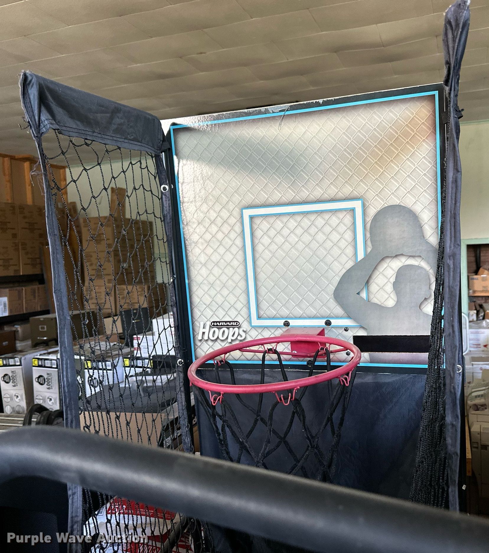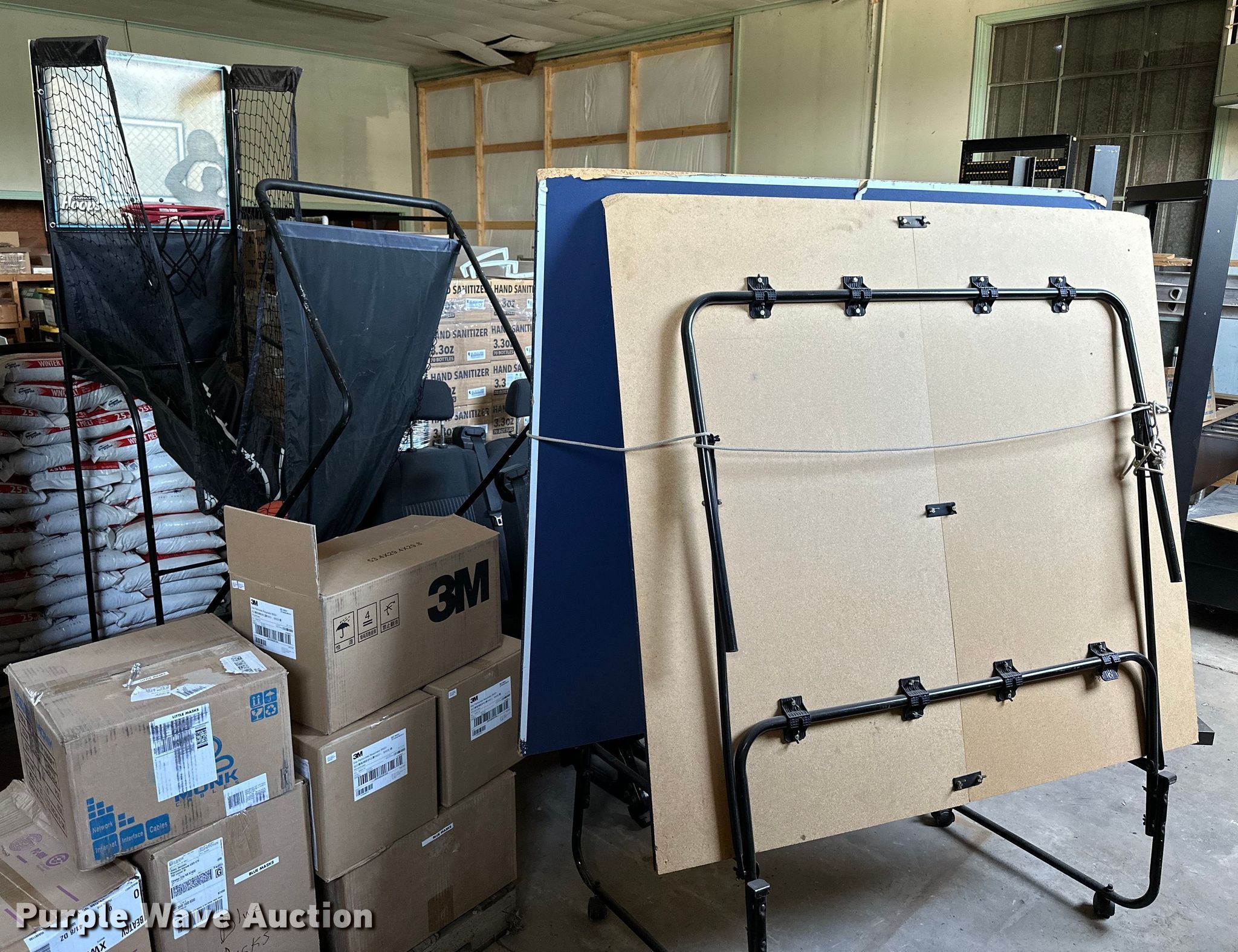 Purple Wave is selling a used Sporting Goods in Kansas. This item is a Sporting goods with the following: Table tennis table, Approx. 108" L x 60" W, Paddles, Net, Harvard Hoops basketball game, (2) basketballs, Money blowing machine