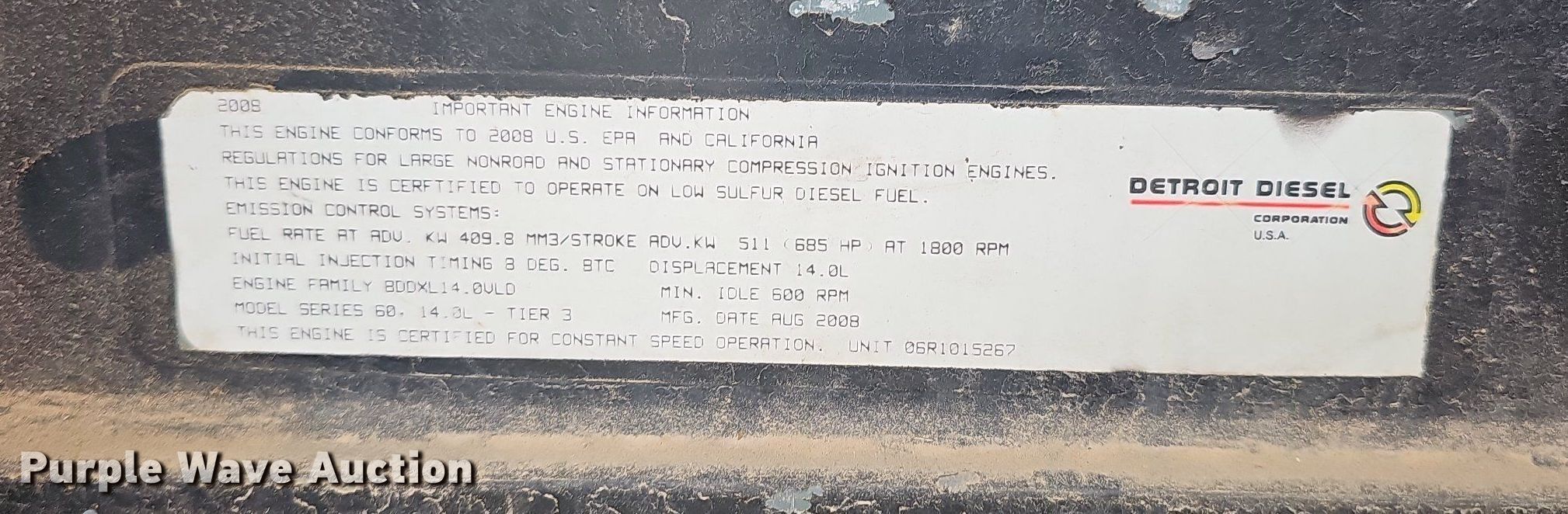 Purple Wave is selling a used Generator Set in Missouri. This item is a 2008 Kohler 400 generator with the following: Hours: 356 on meter, Serial: 2223943