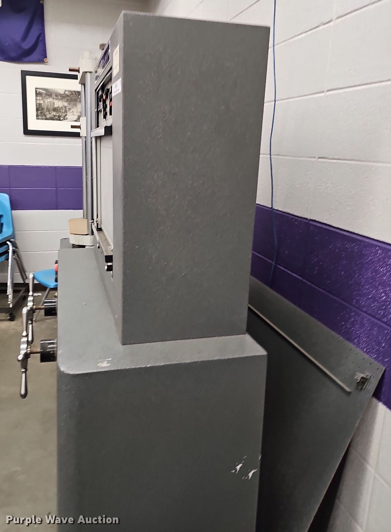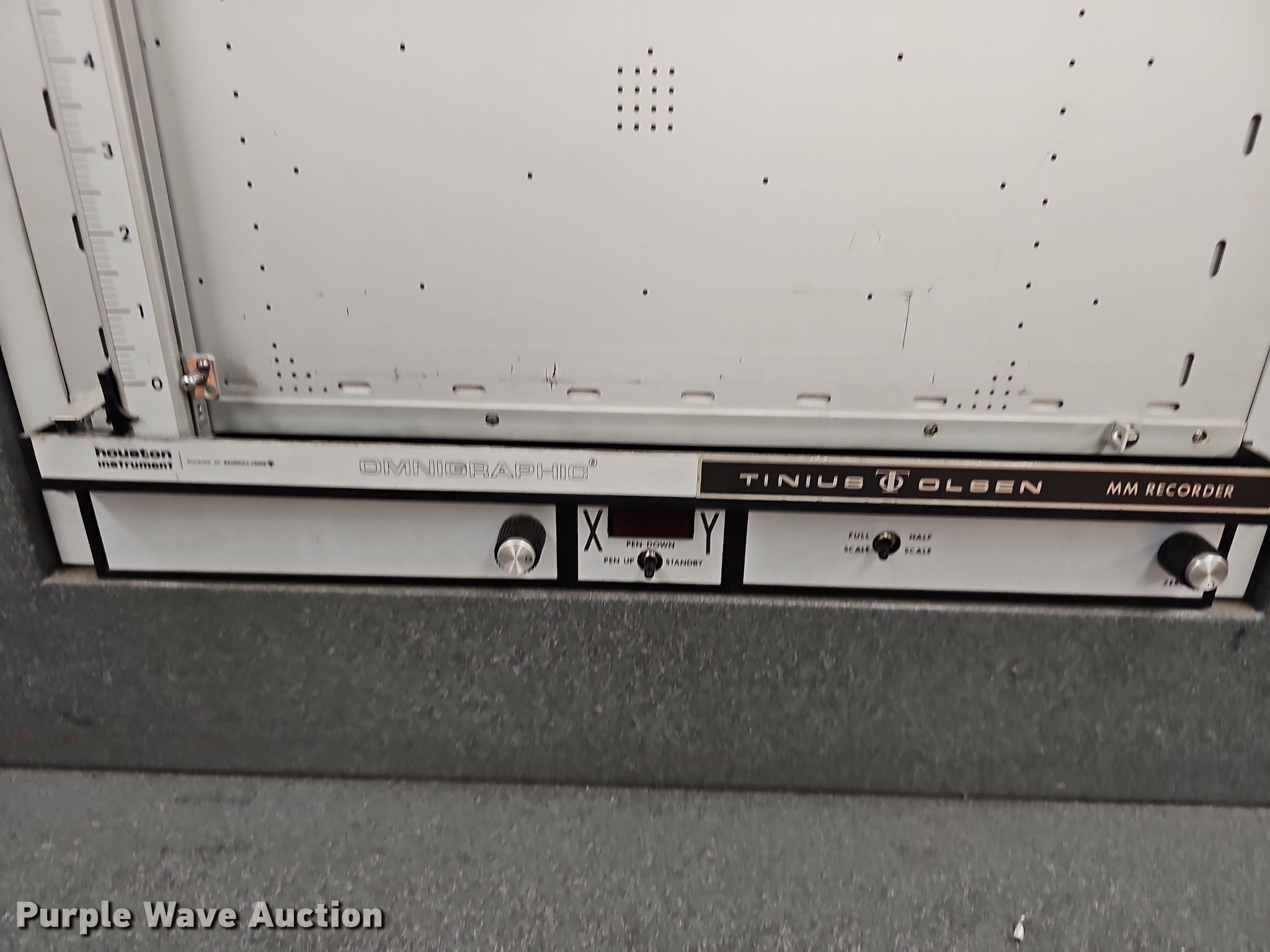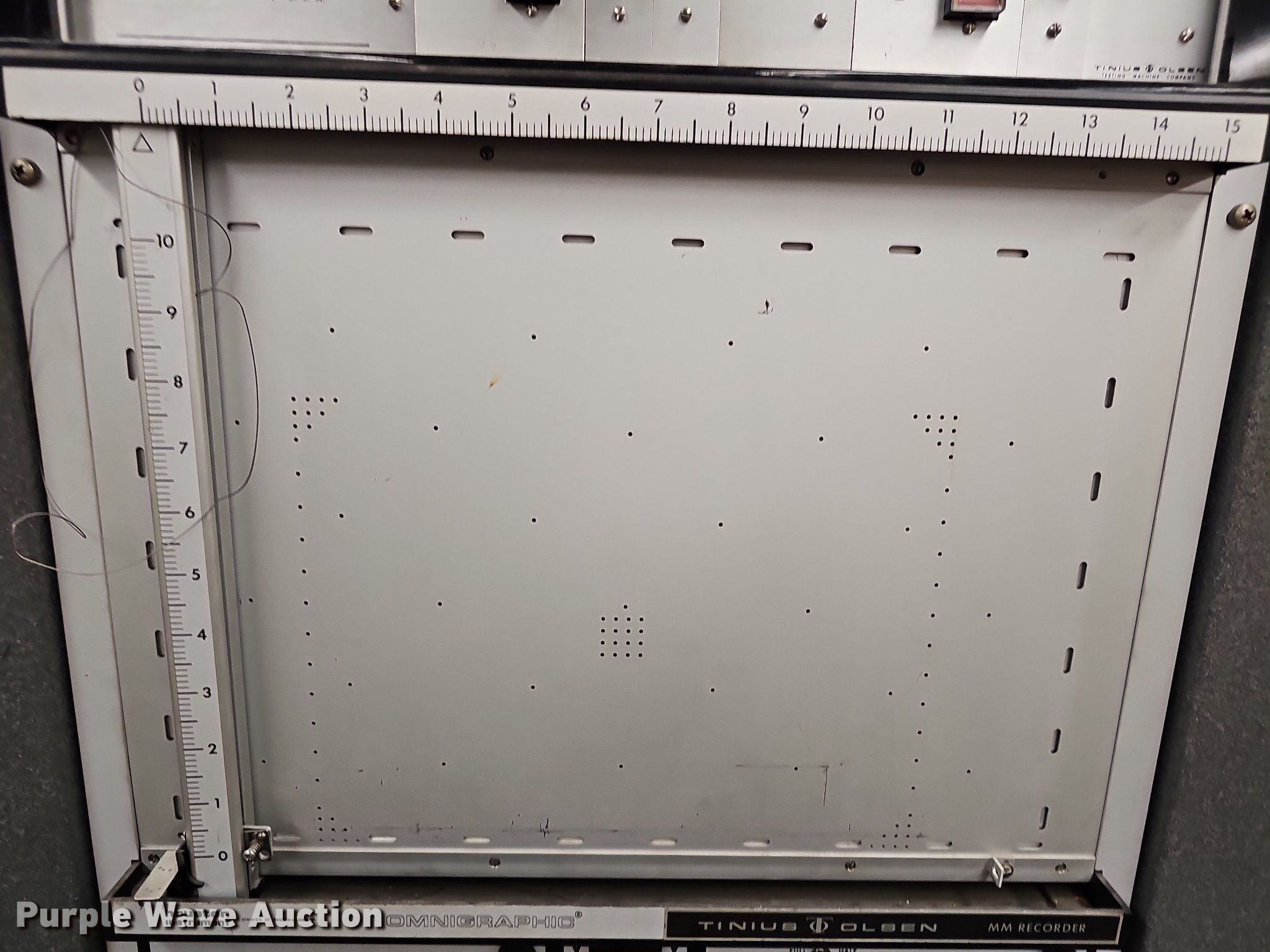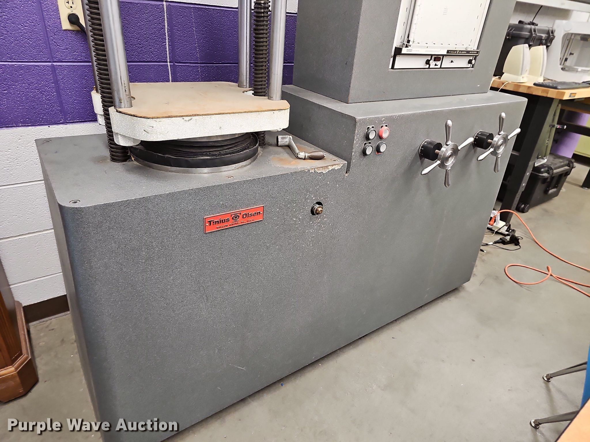 Purple Wave is selling a used Tools in Kansas. This item is a Tinius Olsen testing machine with the following: Ominigraphic mm recorder, Three phase