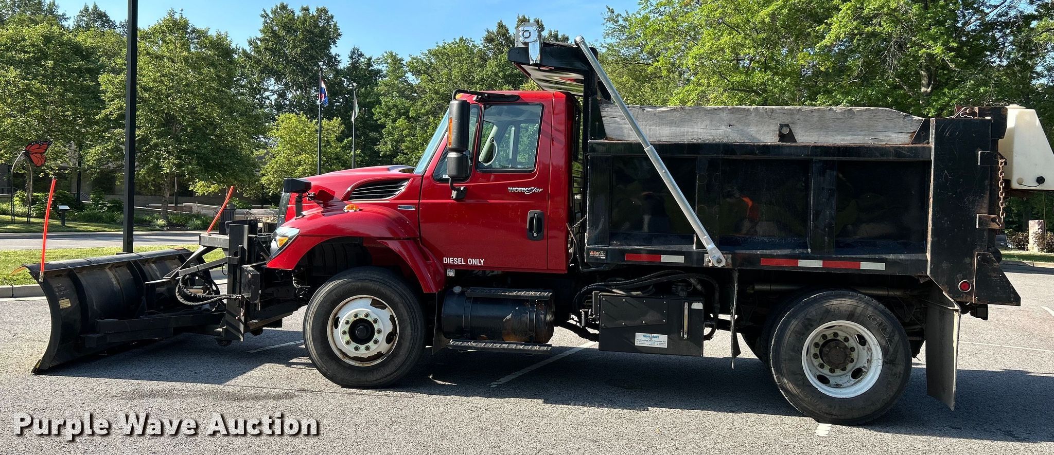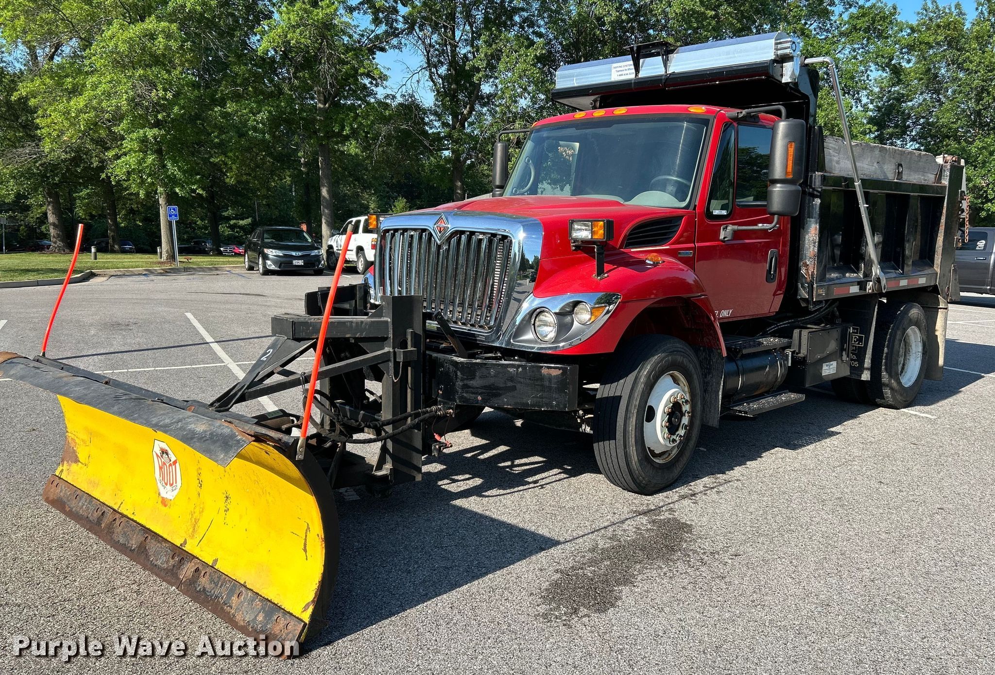 2009 International WorkStar 7400 dump truck. Miles: 47,474 on odometer, Hours: 4,056 on meter, VIN: 1HTWCAAR39J193601. Engine International MaxxForce DT, Displacement: 7.6L, Cylinders: 6, Fuel type: Diesel. Transmission Allison, Automatic. Chassis Axles: Single, Suspension: Spring, Brakes: Air, PTO, GVWR: 33,350 lbs FAWR: 12,350 lbs, RAWR: 21,000 lbs, Wheelbase: 152". Interior AC, Heat, Heated mirrors, Cruise control. Features Dump bed Air Flo, 10' L x 96" W, Side height: 39", Side board height: 12", Bed type: Steel, Roll tarp, Ram: Single , End gate: Manual, Snow plow Root springs scraper RT32FR9, Width: 108", Spreader Chain conveyor. Tires Size: 11R22.5. Notes Bed hinge mount broken due to seized pin. Missouri title. Title distribution may be delayed up to 14 days from verification of funds. City of Sunset Hills, MO. Sunset Hills, MO 63127