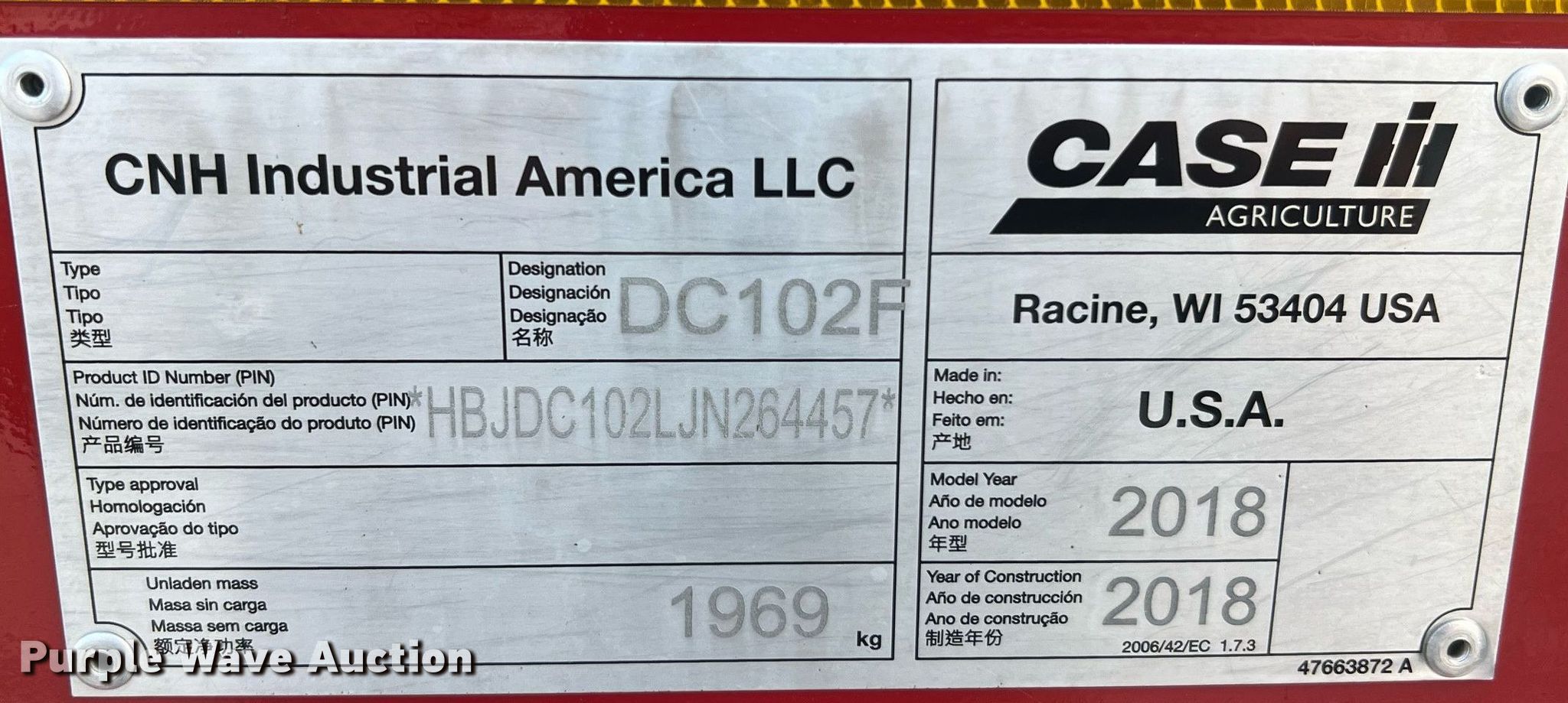 2018 Case IH DC102F swather / windrower | SOLD! August 09 Ag Equipment Auction