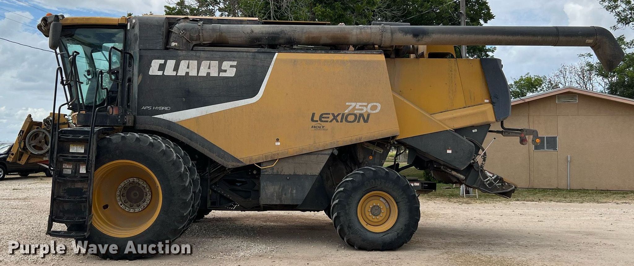 Purple Wave is selling a used Combine in Texas. This item is a 2012 Claas 750 combine with the following: Engine hours: 2,379 on meter, Separator hours: 1,499 on meter, Miles or hours may vary, unit still in use, Serial: C4800472