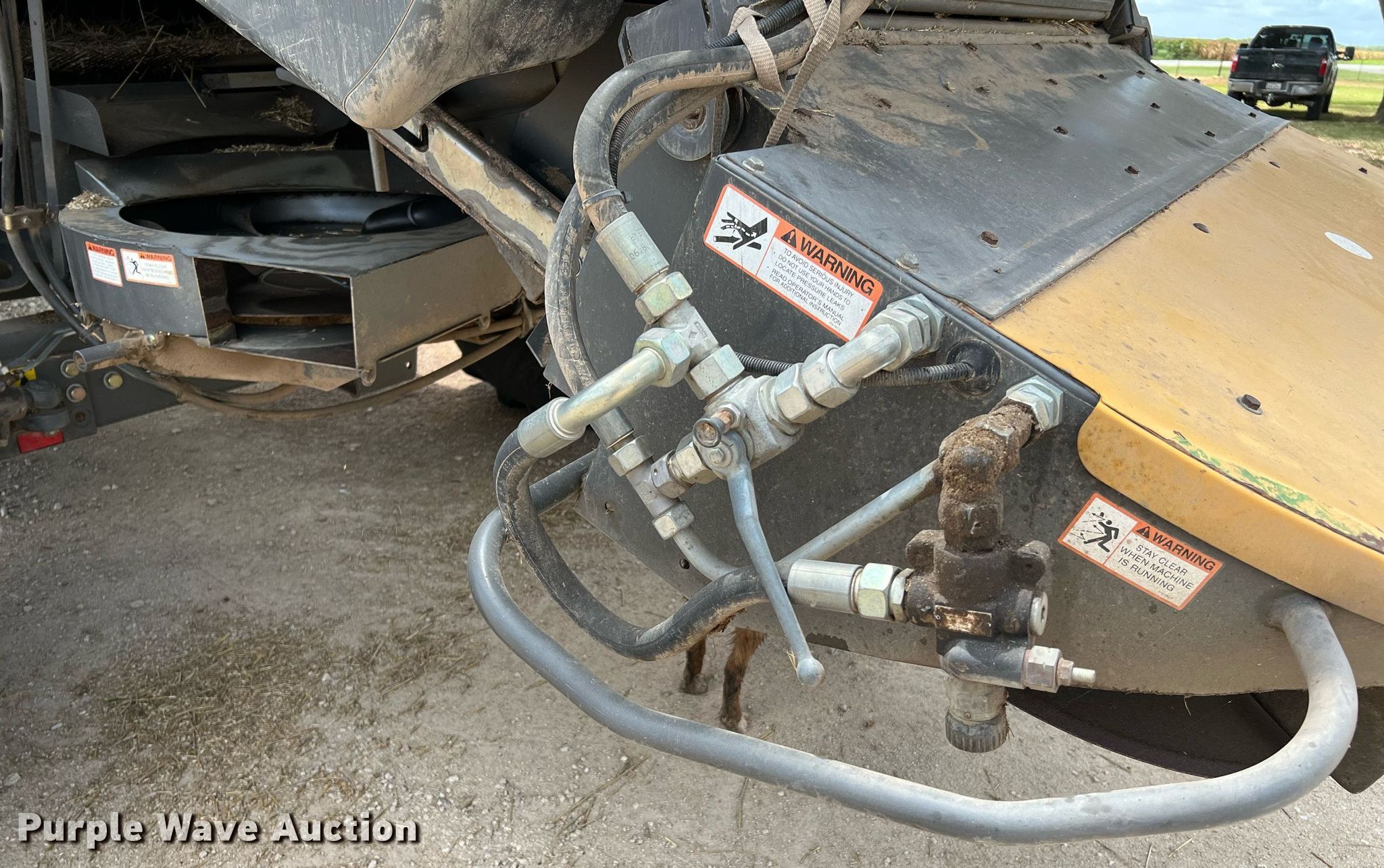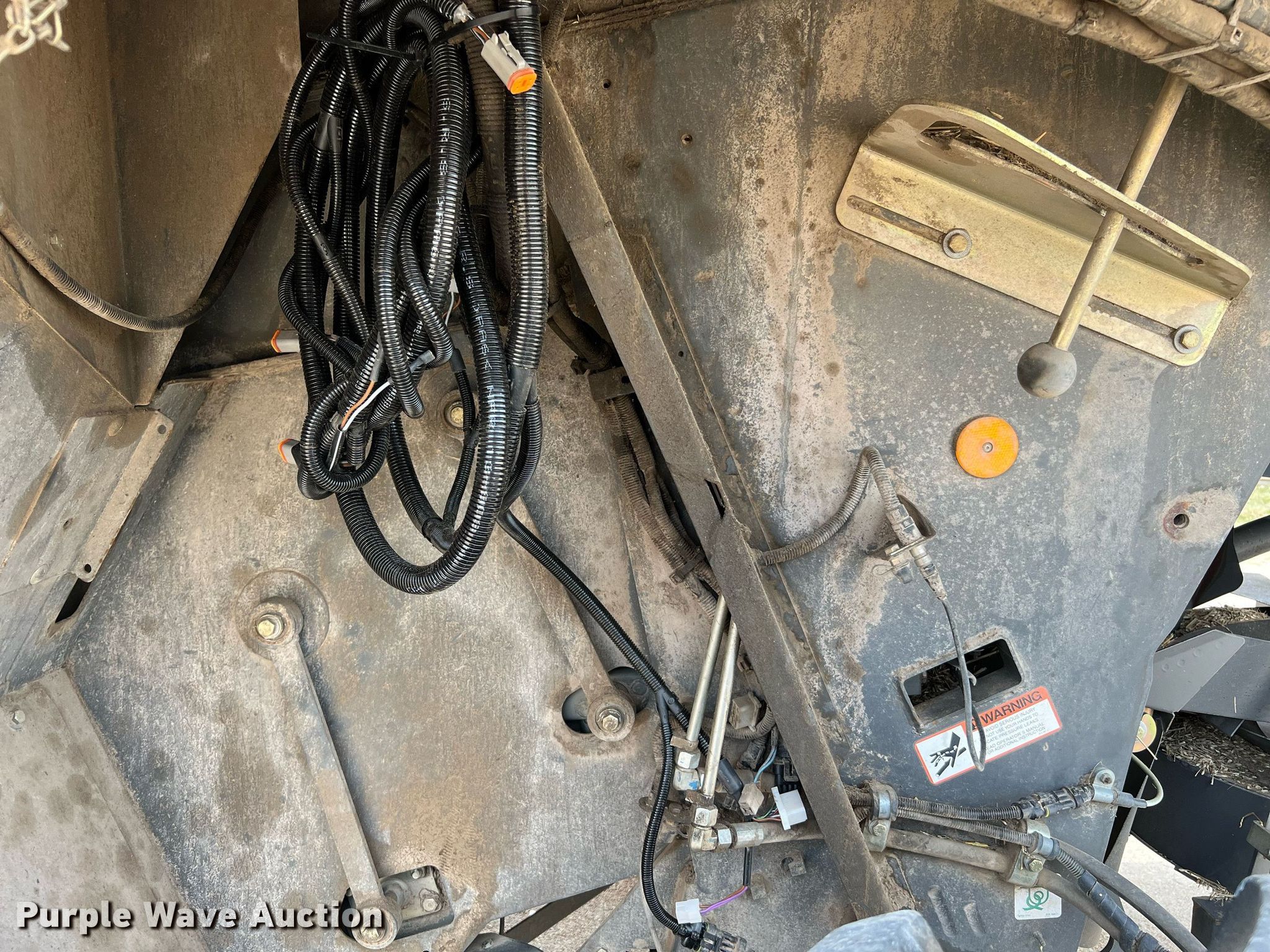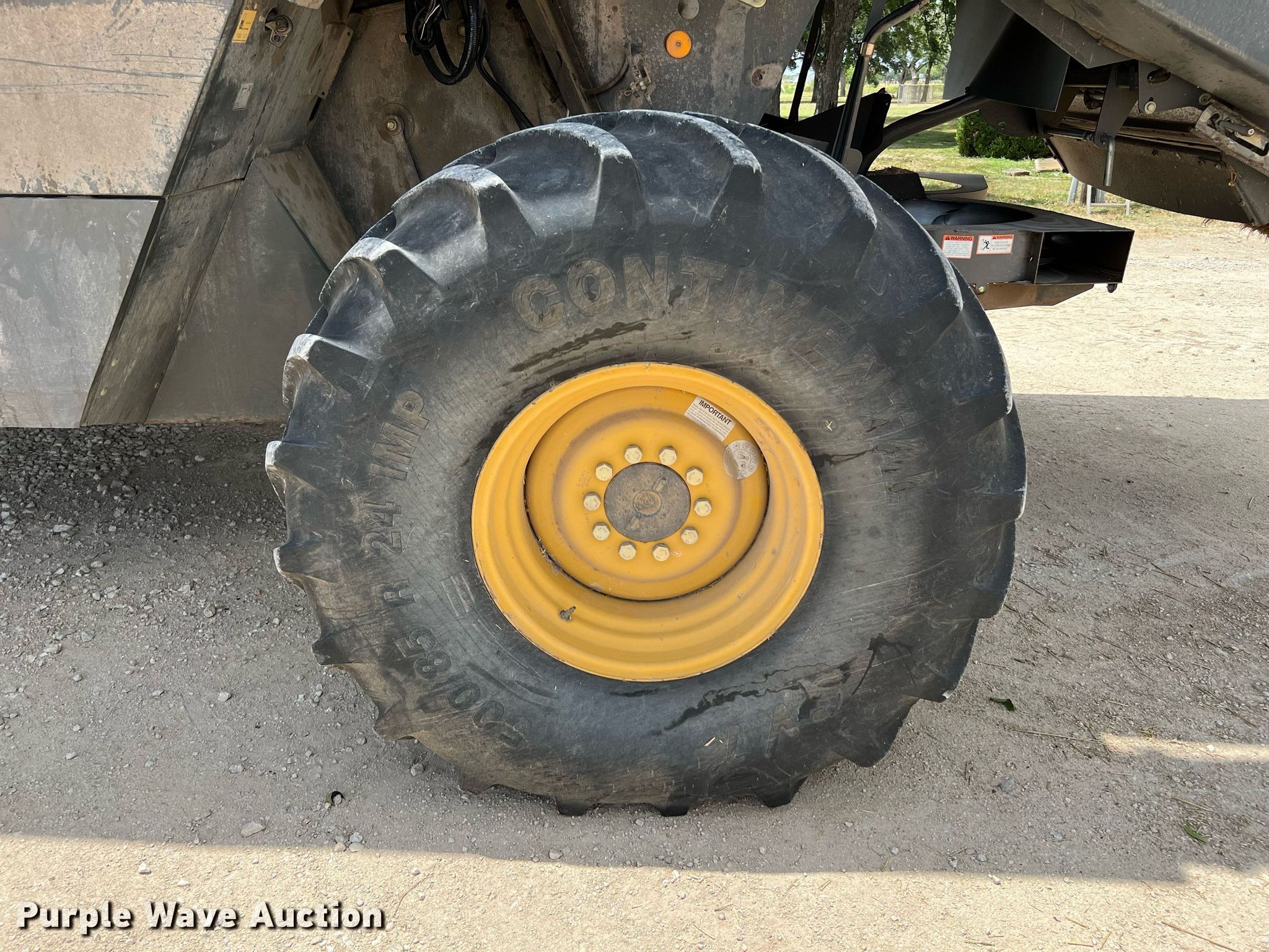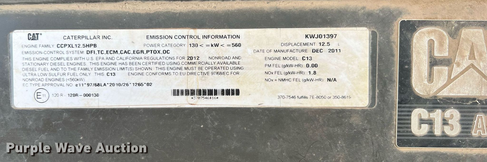 2012 Claas 750 combine. Engine hours: 2,379 on meter, Separator hours: 1,499 on meter Miles or hours may vary, unit still in use, Serial: C4800472. Engine Caterpillar C13, Serial: KWJ01397, Displacement: 12.5L, Cylinders: 6, Fuel type: Diesel, HP: 443. Transmission Hydrostatic, 3F - 3R. Interior AC, Heat. Features Operator manual, Single point header coupler, Feederhouse: Lateral tilt, Variable speed, Reverser, Concaves: Small wire, Straw chopper, Power tailboard, Bin: Extensions, Power folding bin. Tires Front: 520/85R42, Rear: 500/85R24, Duals. Notes Header not included. NJ Farms. 4645 Farm to Market Road 471. Rio Medina, TX 78066