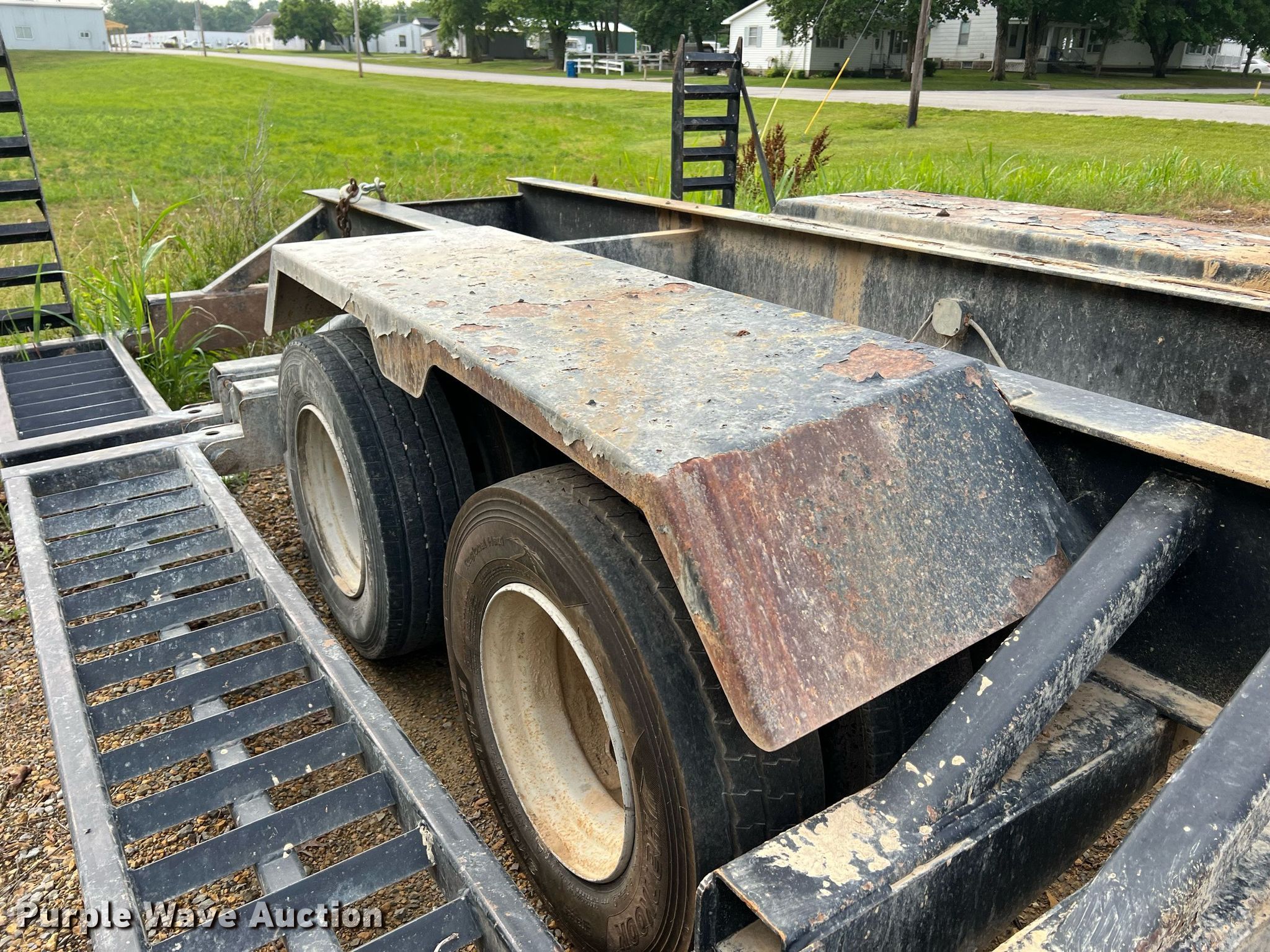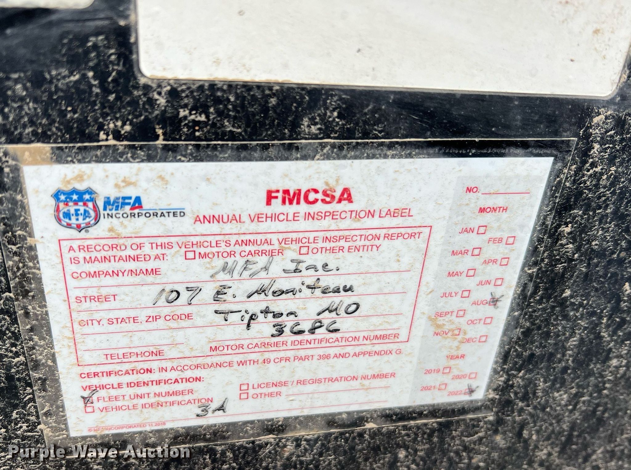 2003 Behnke sprayer trailer. VIN: DRMVB0000160835MO, Unit #: 3. Dimensions Overall: 29' 11" L x 140" W, Deck: 19' 9" L, Ramps: Manual Length: 43". Features Deck type: Steel. Chassis Hitch: Pintle, Landing gear: Single, Suspension: Spring, Brakes: Electric, Axles: Tandem. Tires Steel wheels, Size: 235/75R17.5. Notes Chains and binders not included. Missouri title. Title distribution may be delayed up to 14 days from verification of funds. MFA Inc... 107 East Moniteau Street. Tipton, MO 65081