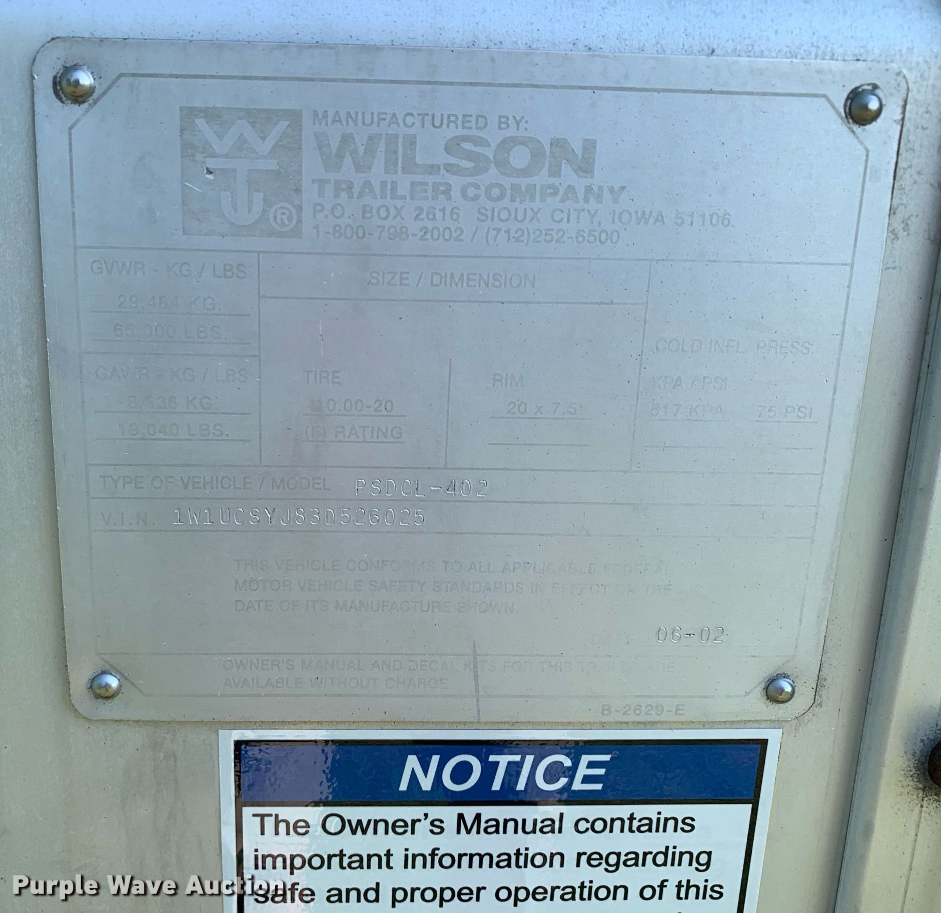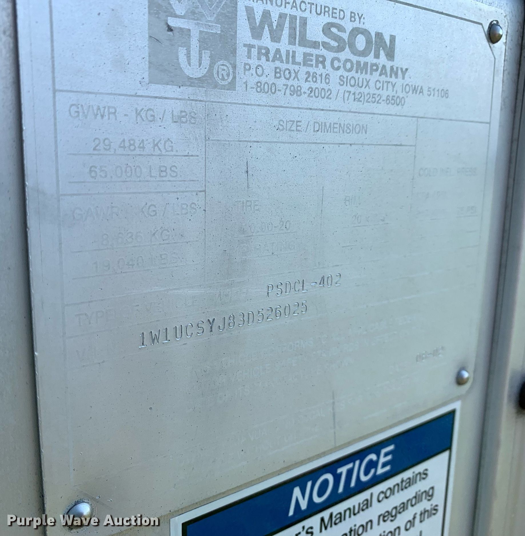 Purple Wave is selling a used Livestock Trailer in Oklahoma. This item is a 2003 Wilson PSDCL-402 livestock trailer with the following: VIN: 1W1UCSYJ83D526025