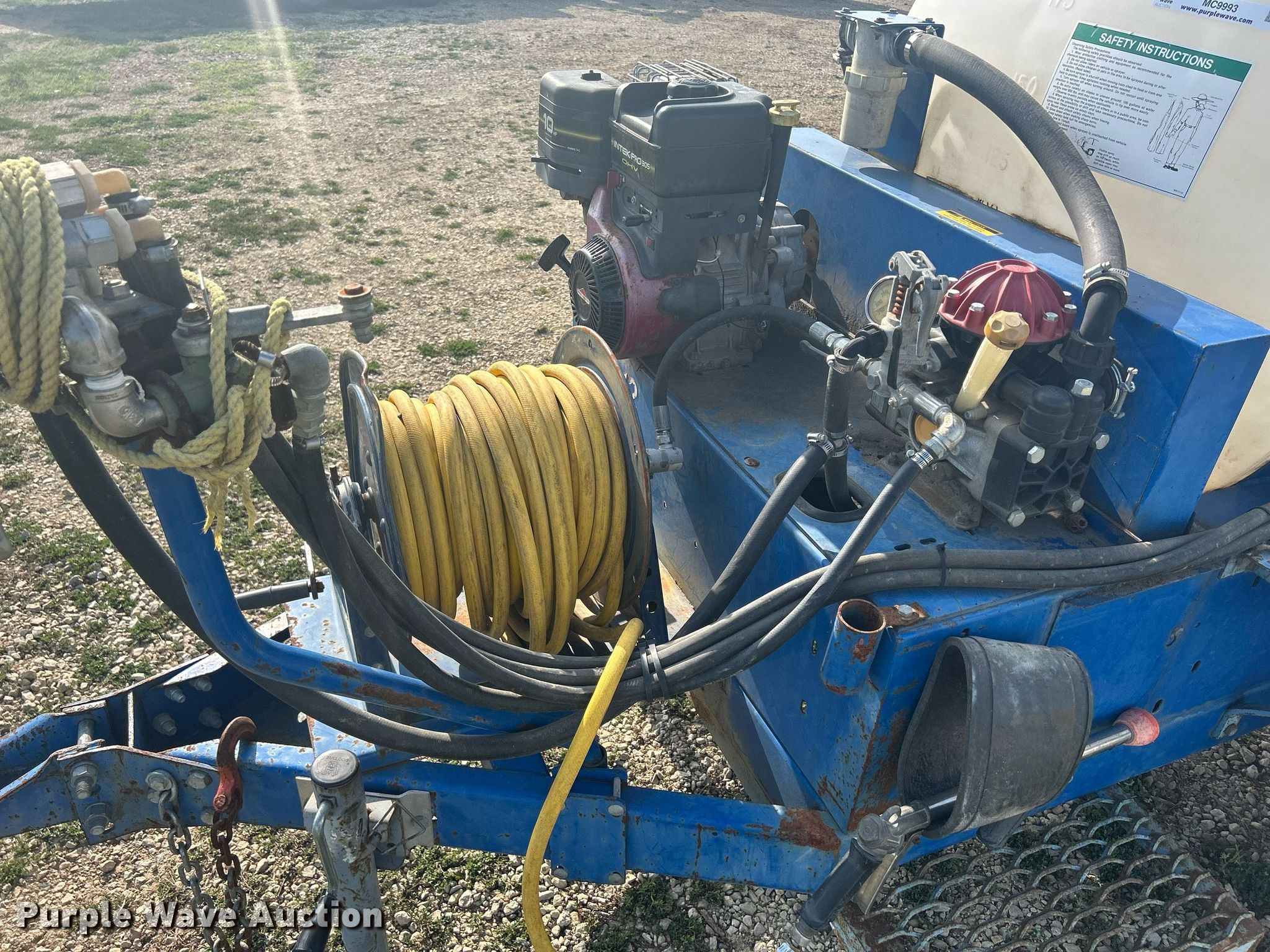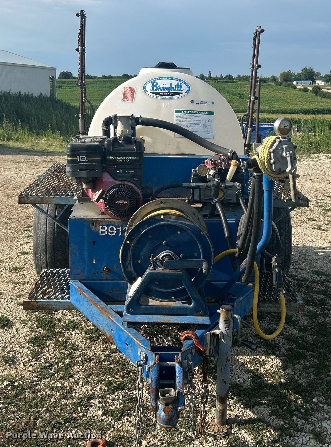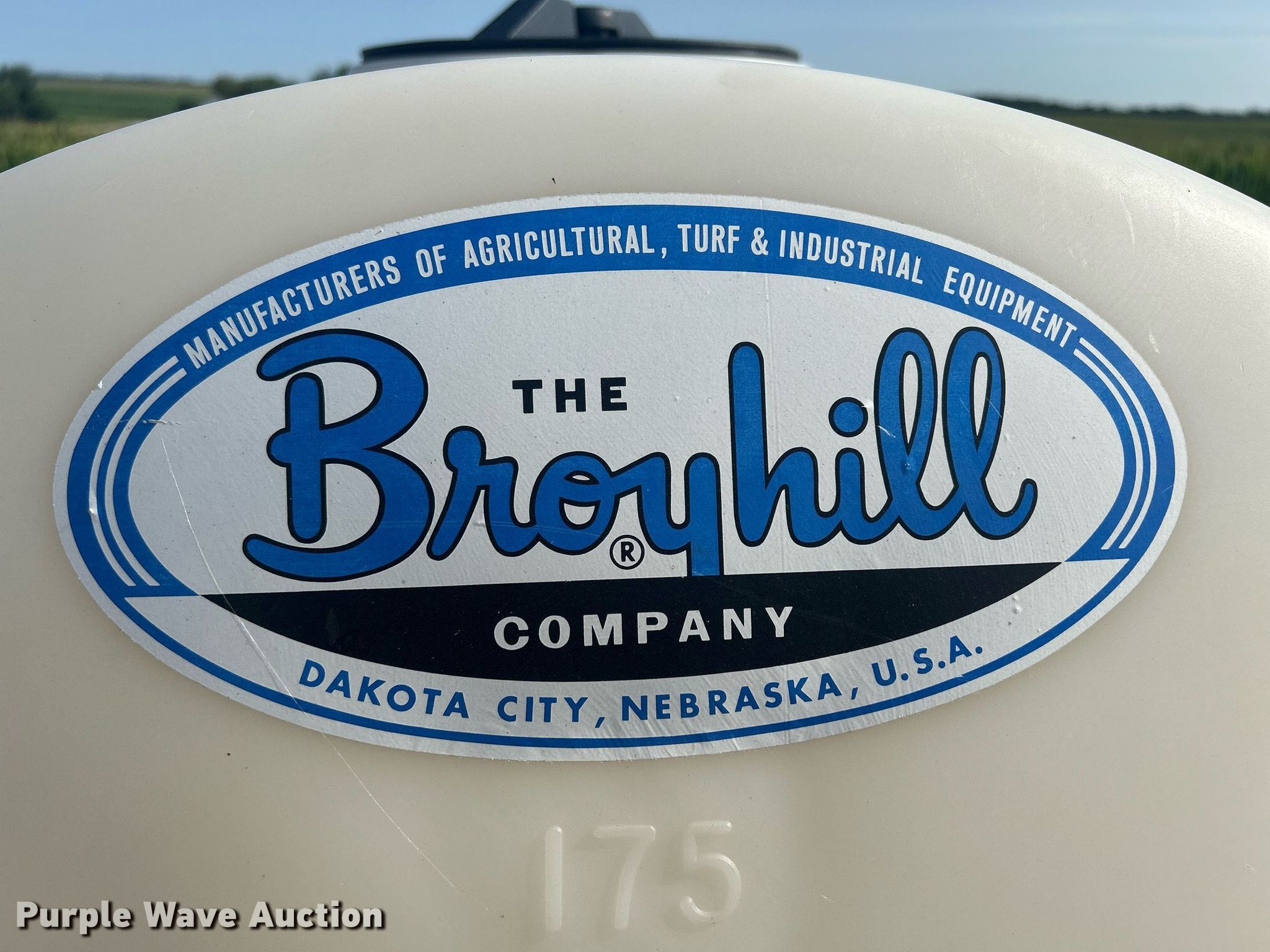 Broyhill B912 turf sprayer. Engine. Briggs & Stratton Intek Pro 305, Cylinders: 1, Fuel type: Gas. Features Solution tank Capacity: 175 gallons, Type: Poly, Boom Width: 14' 6", Sections: 3, Nozzle Spacing: 10" , Nozzle bodies: Single, Pump Hydro D50, Hannay hose reel, Spray wand. Trailer Overall: 10' L x 6' W, Hitch: 2" ball, Landing gear: Single. Tires Size: 11-15. Transfer of ownership documentation will be a bill of sale. Springville, IA 52336