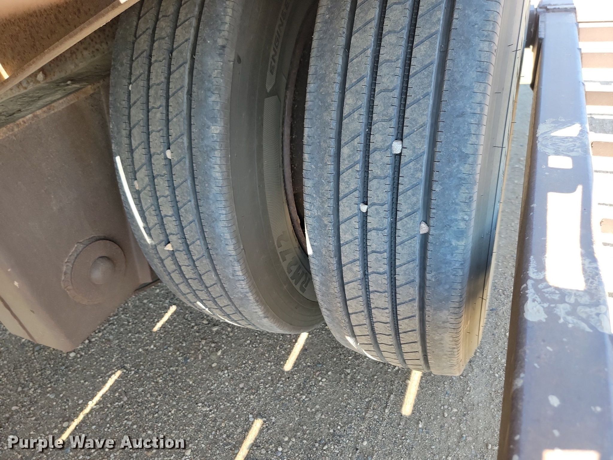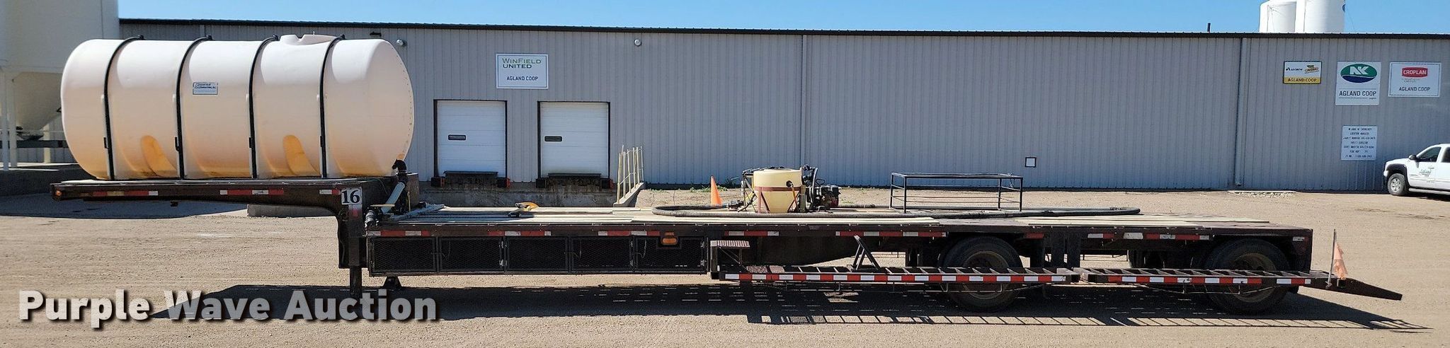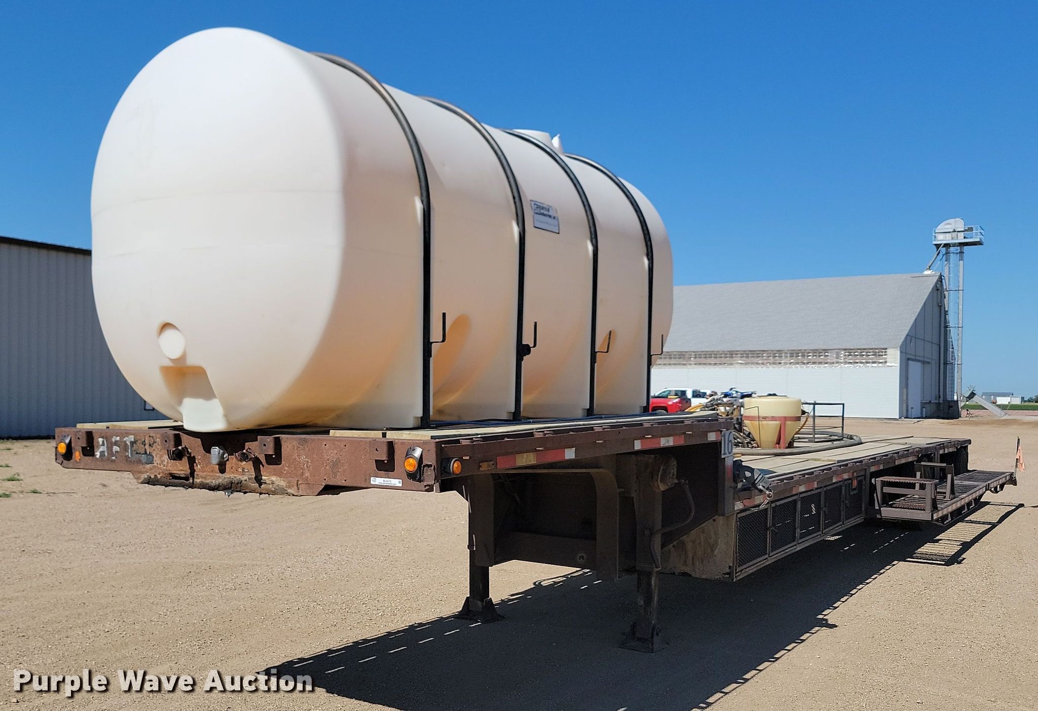 1988 Fontaine drop deck equipment trailer. VIN: 13N248302J1543168. Dimensions Overall: 48' L x 96" W, Top deck length: 11' 6", Rear deck length: 36' 6". Features Deck type: Wood. Chassis Landing gear: Dual, Suspension: Air, Brakes: Air, Axles: Spread. Features Solution tank Capacity: 2,000 gallons, Induction tank Capacity: 35 gallons, Sprayer 25' L X 2' W. Tires Steel wheels, Size: 255/70R22.5. Agland Coop. 115 South 1st Street. Parkston, SD 57366