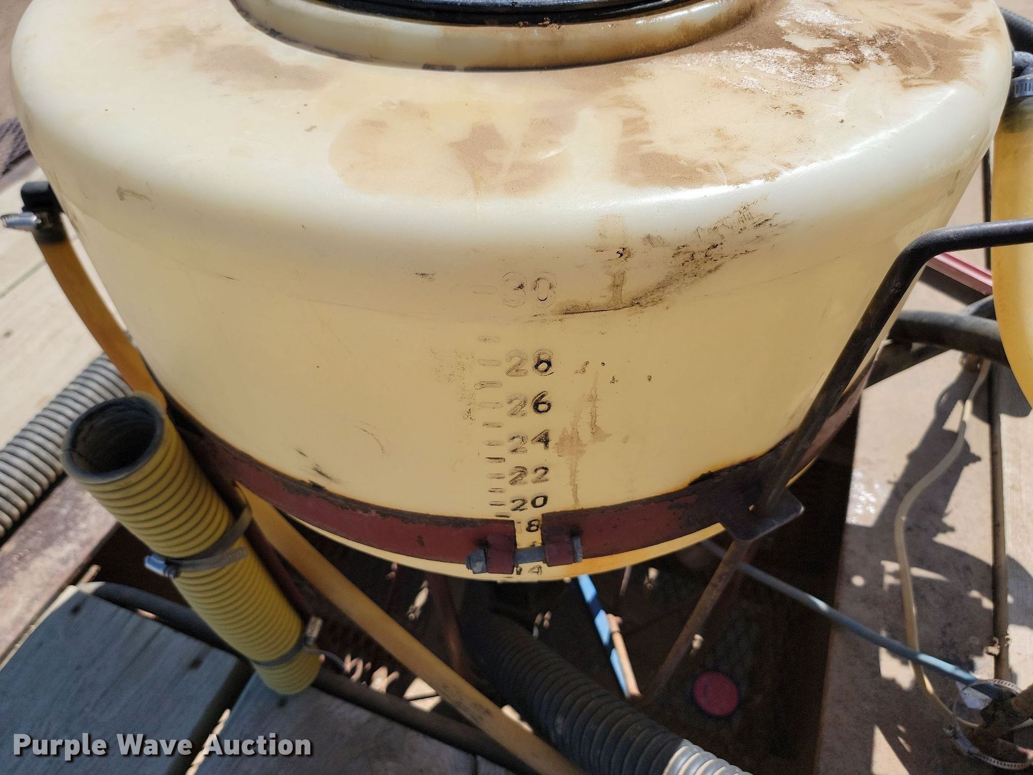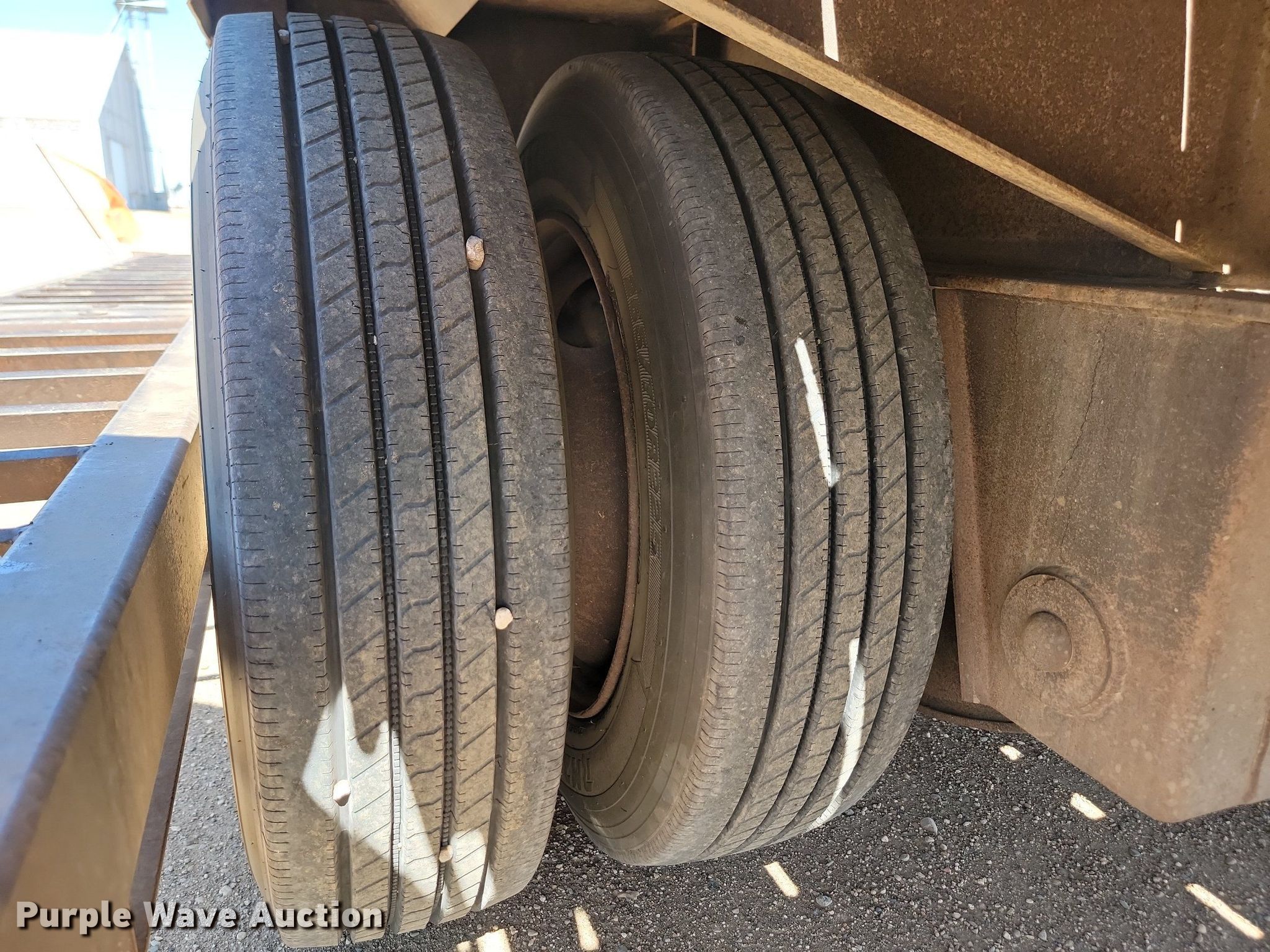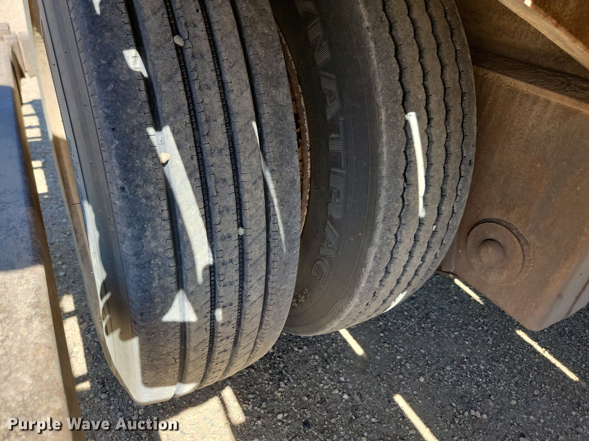 1988 Fontaine drop deck equipment trailer. VIN: 13N248302J1543168. Dimensions Overall: 48' L x 96" W, Top deck length: 11' 6", Rear deck length: 36' 6". Features Deck type: Wood. Chassis Landing gear: Dual, Suspension: Air, Brakes: Air, Axles: Spread. Features Solution tank Capacity: 2,000 gallons, Induction tank Capacity: 35 gallons, Sprayer 25' L X 2' W. Tires Steel wheels, Size: 255/70R22.5. Agland Coop. 115 South 1st Street. Parkston, SD 57366